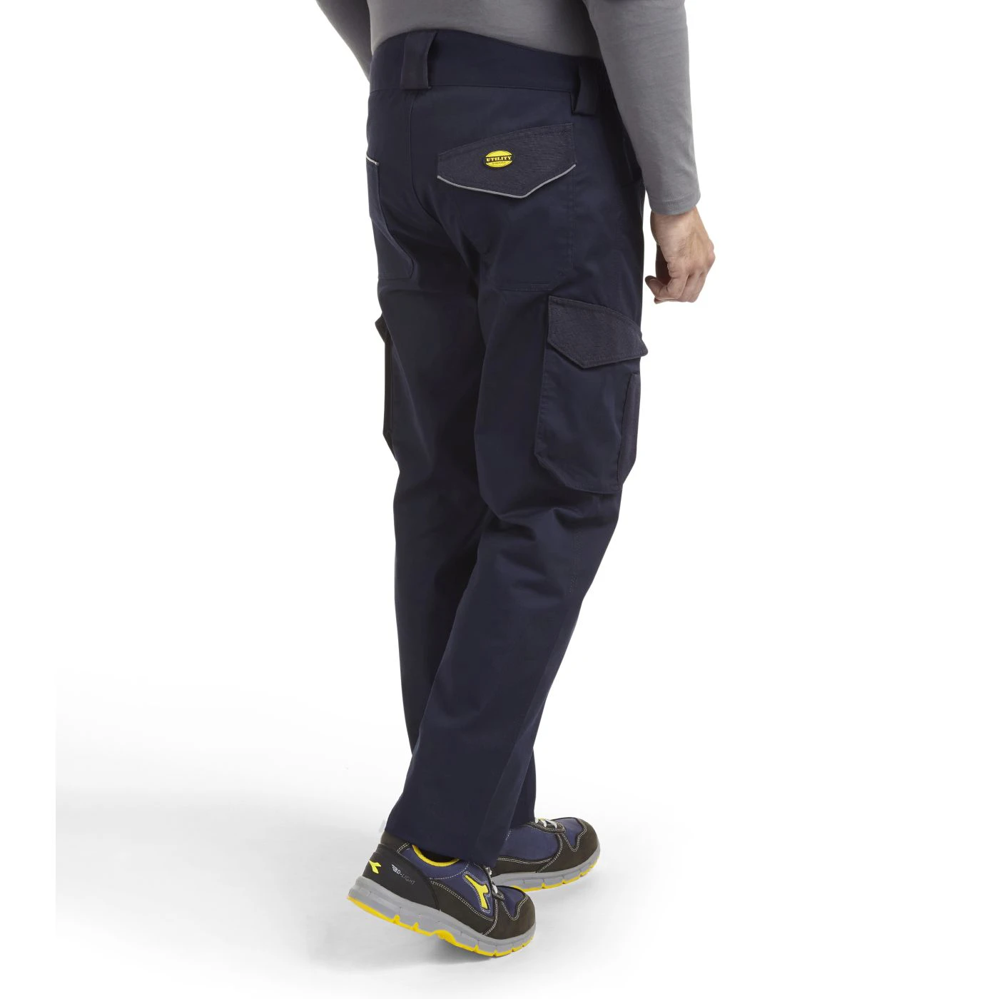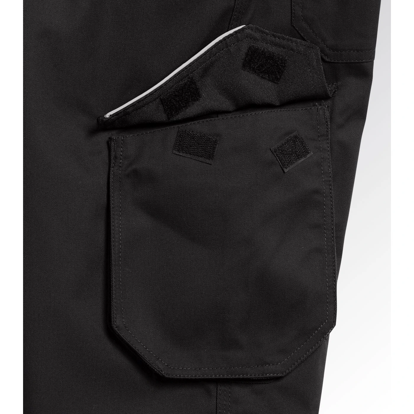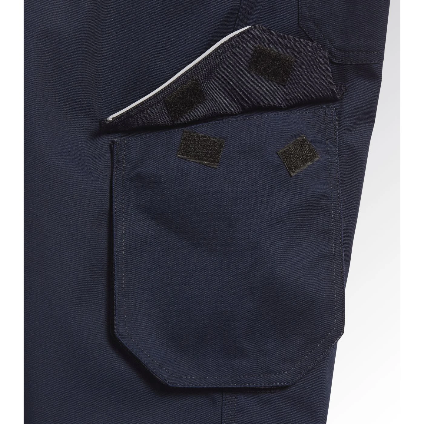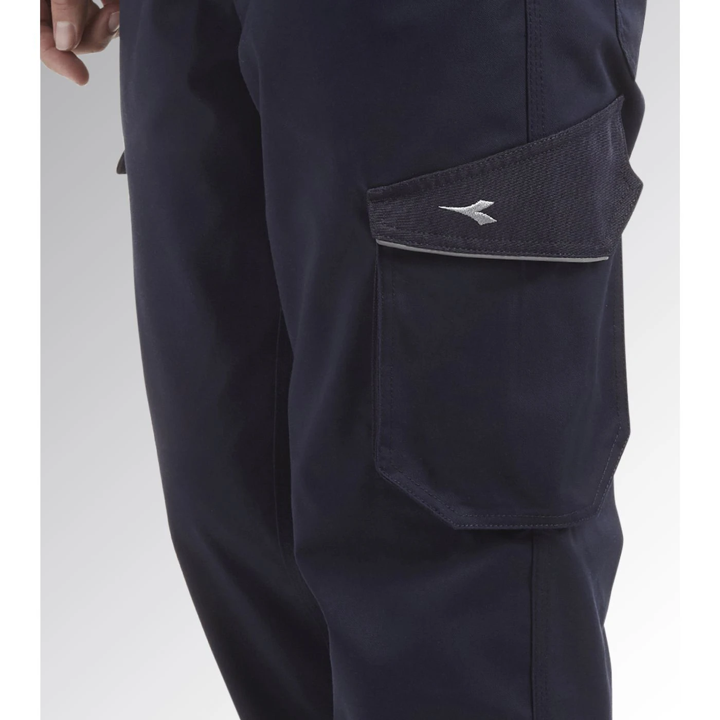 Cargo trousers, side pocket, reflective details and contrast details in abrasion-resistant fabric, elastic waist, triple stitching.