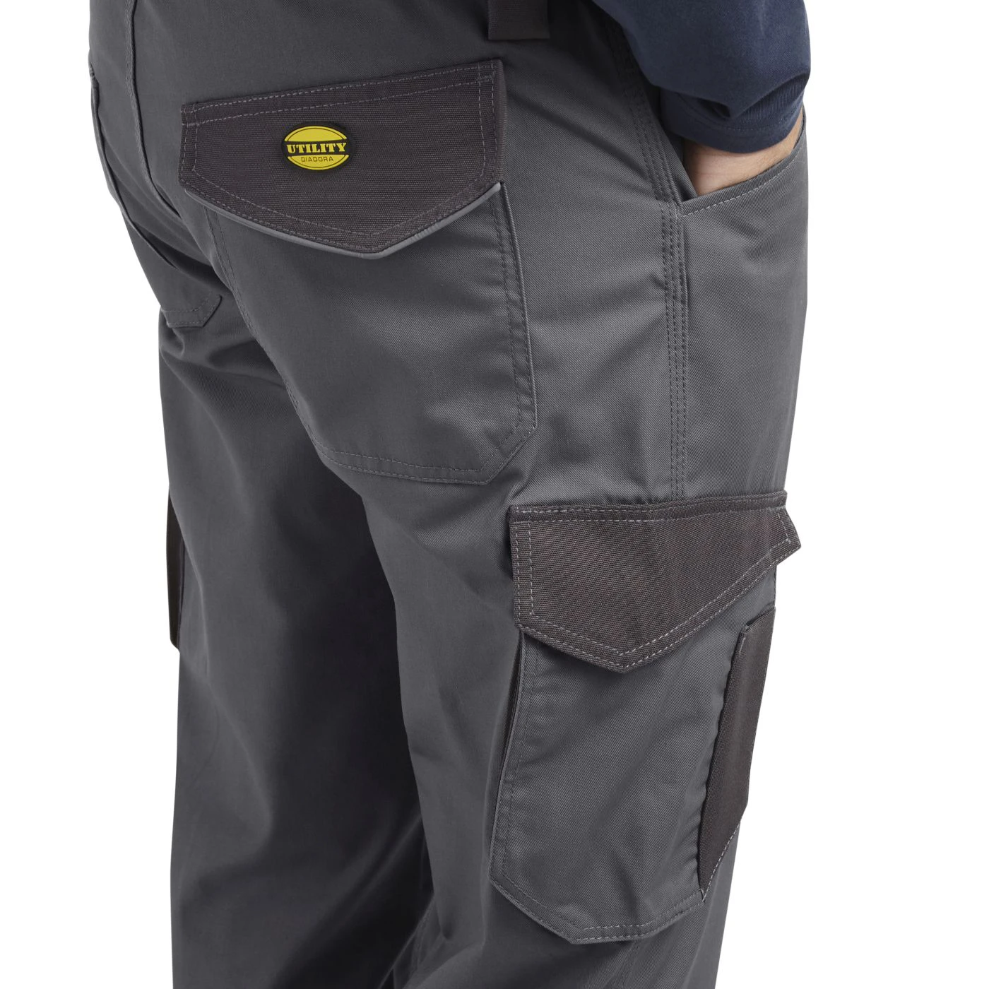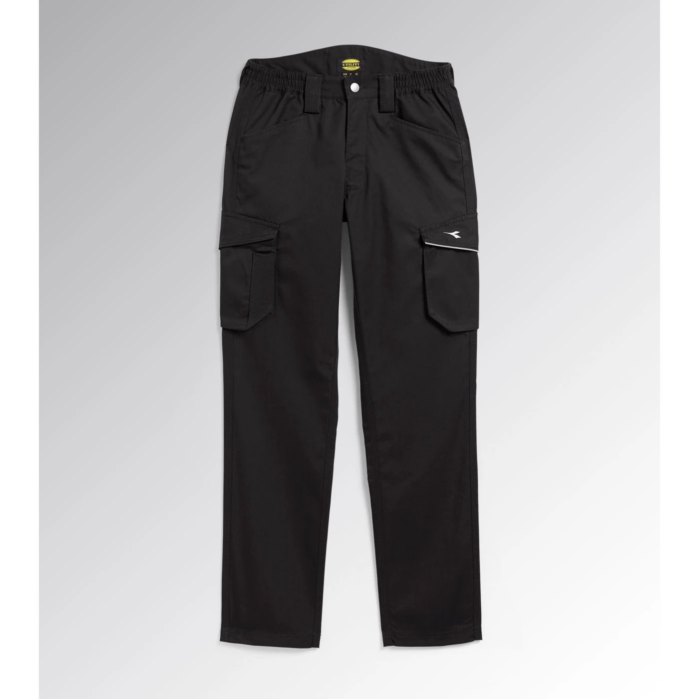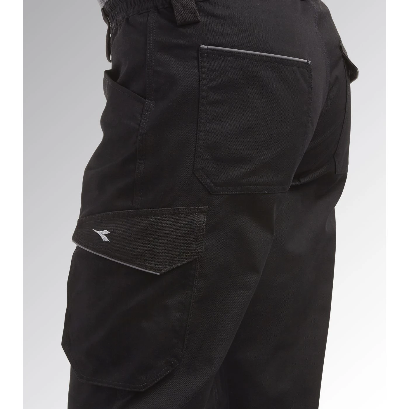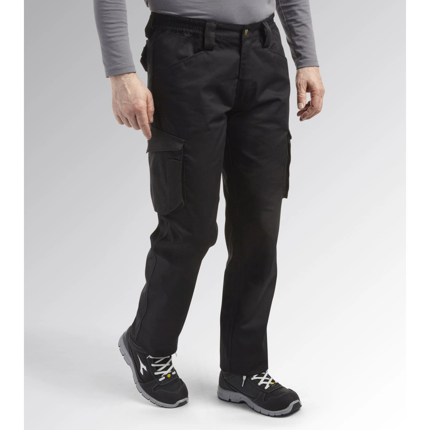 Cargo trousers, side pocket, reflective details and contrast details in abrasion-resistant fabric, elastic waist, triple stitching.