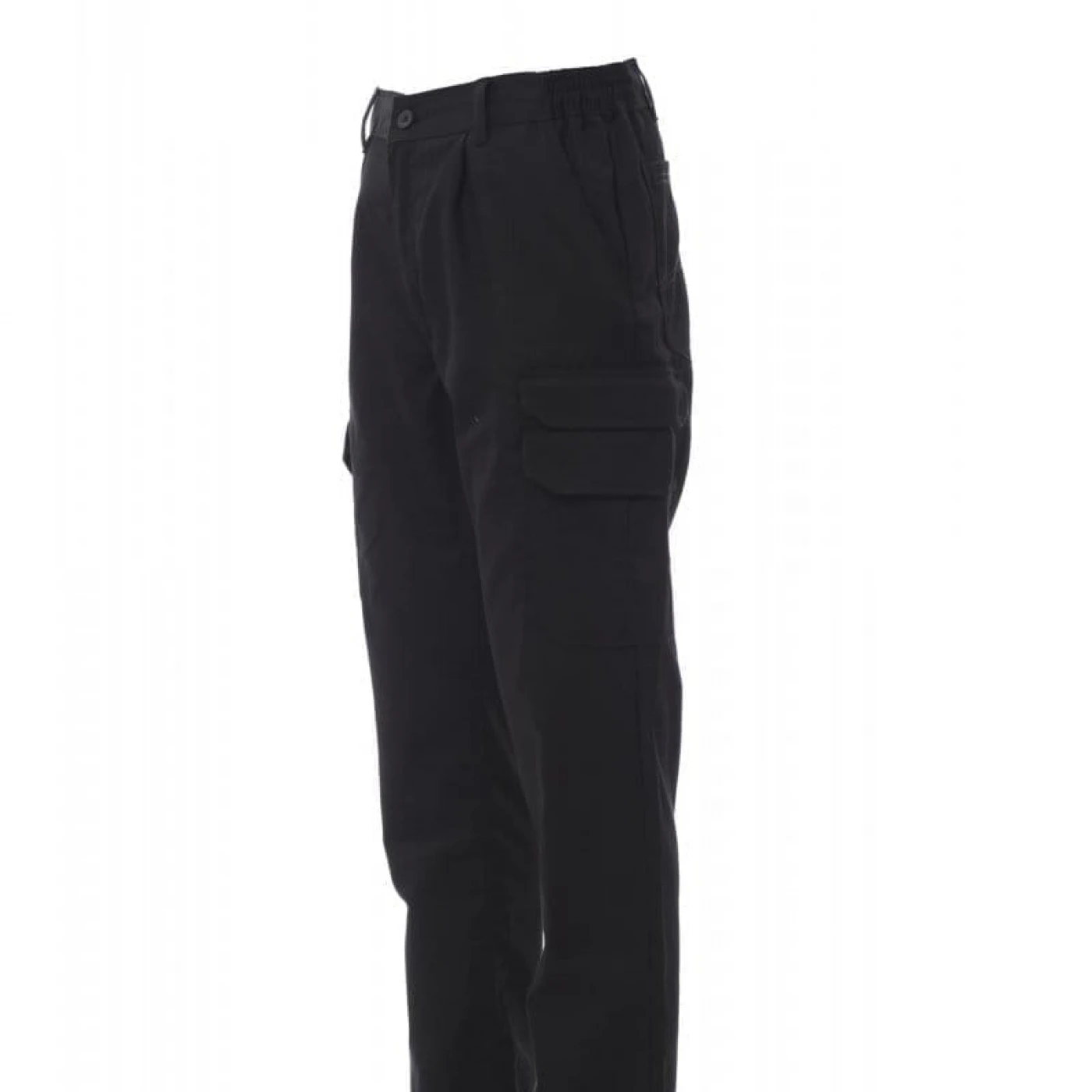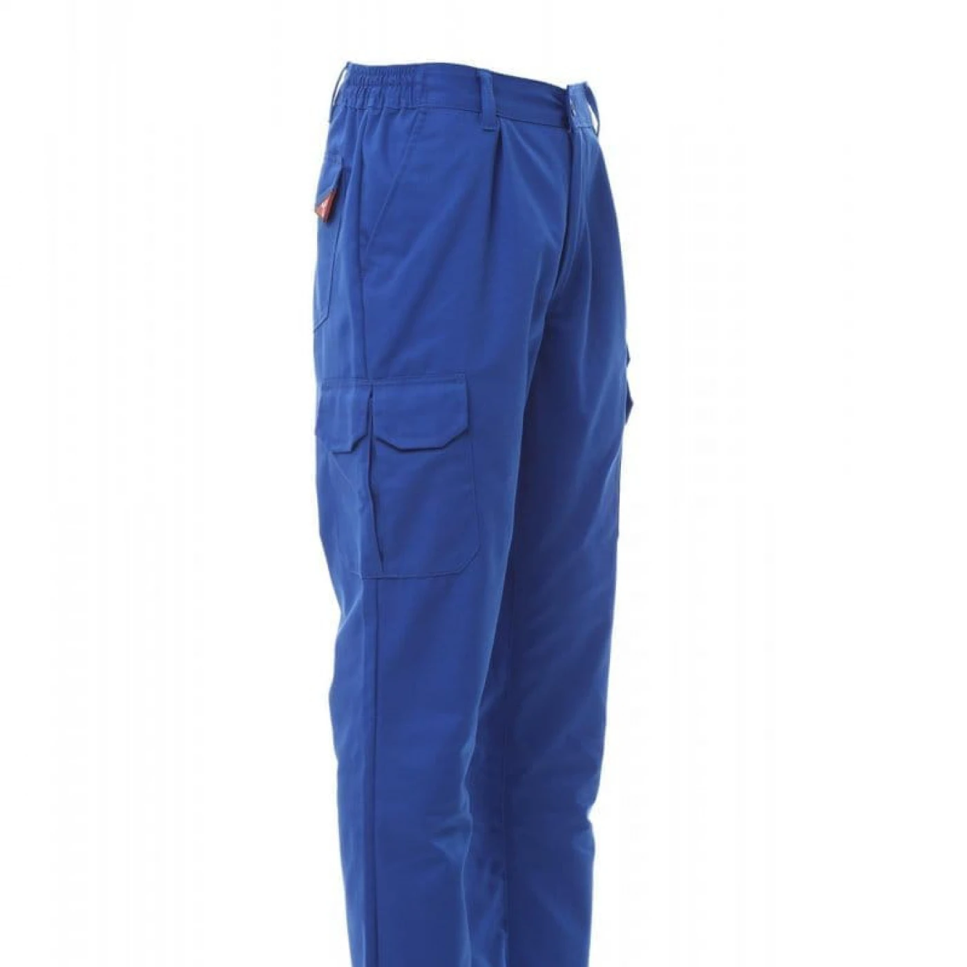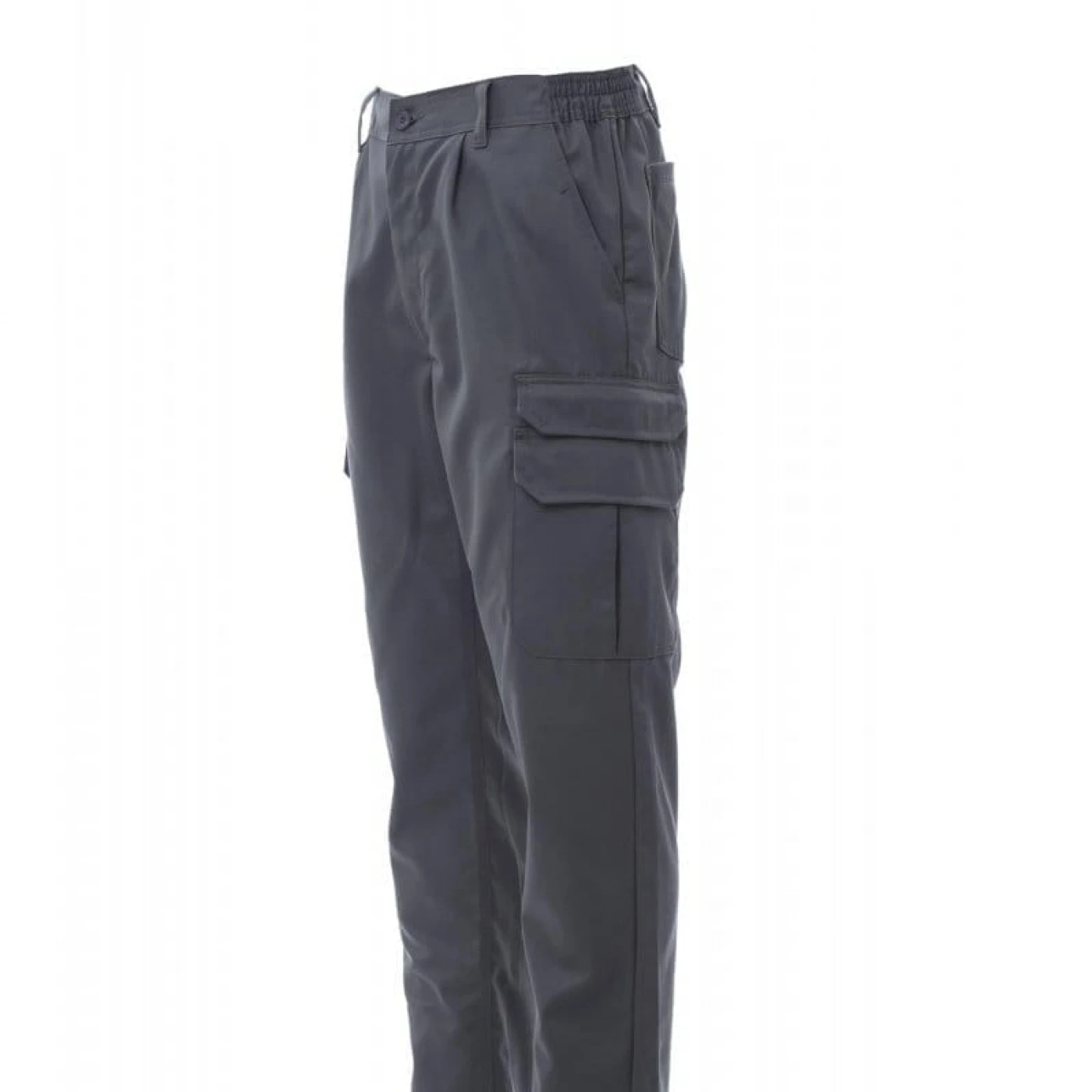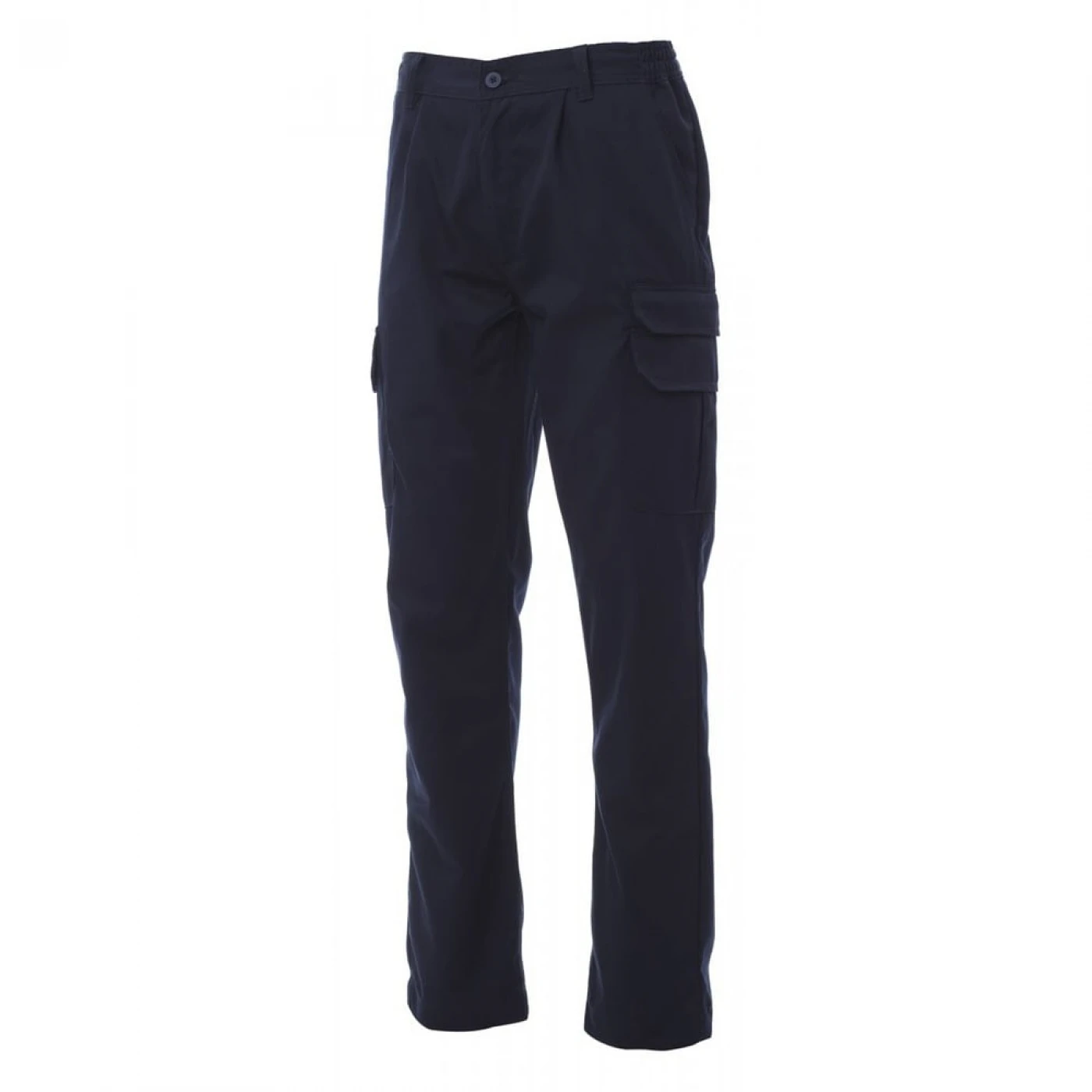 Pantaloni talie pentru barbati confectionati dintr-un amestec de 65% polyester si 35% bumbac, cu o croiala moderna cu tesatura in diagonala pentru o rezistenta sporita si cusaturi triple. Echipati cu doua buzunare clasice in fata, doua buzunare lateral stanga si un buzunar lateral dreapta cu clapa . Are doua buzunare in spate din care unul este cu inchidere cu clapa.