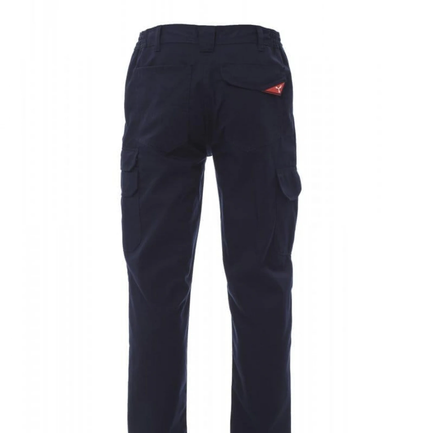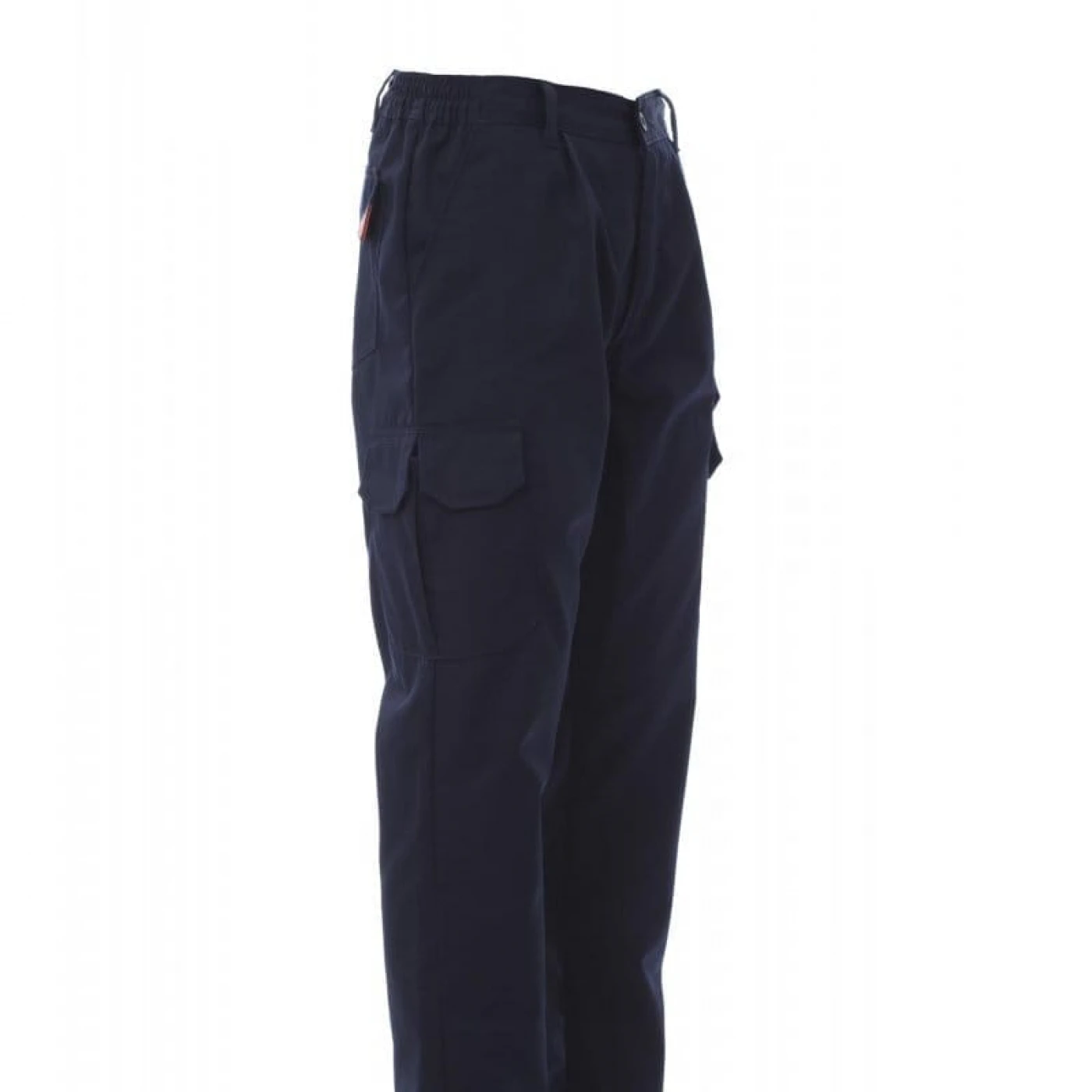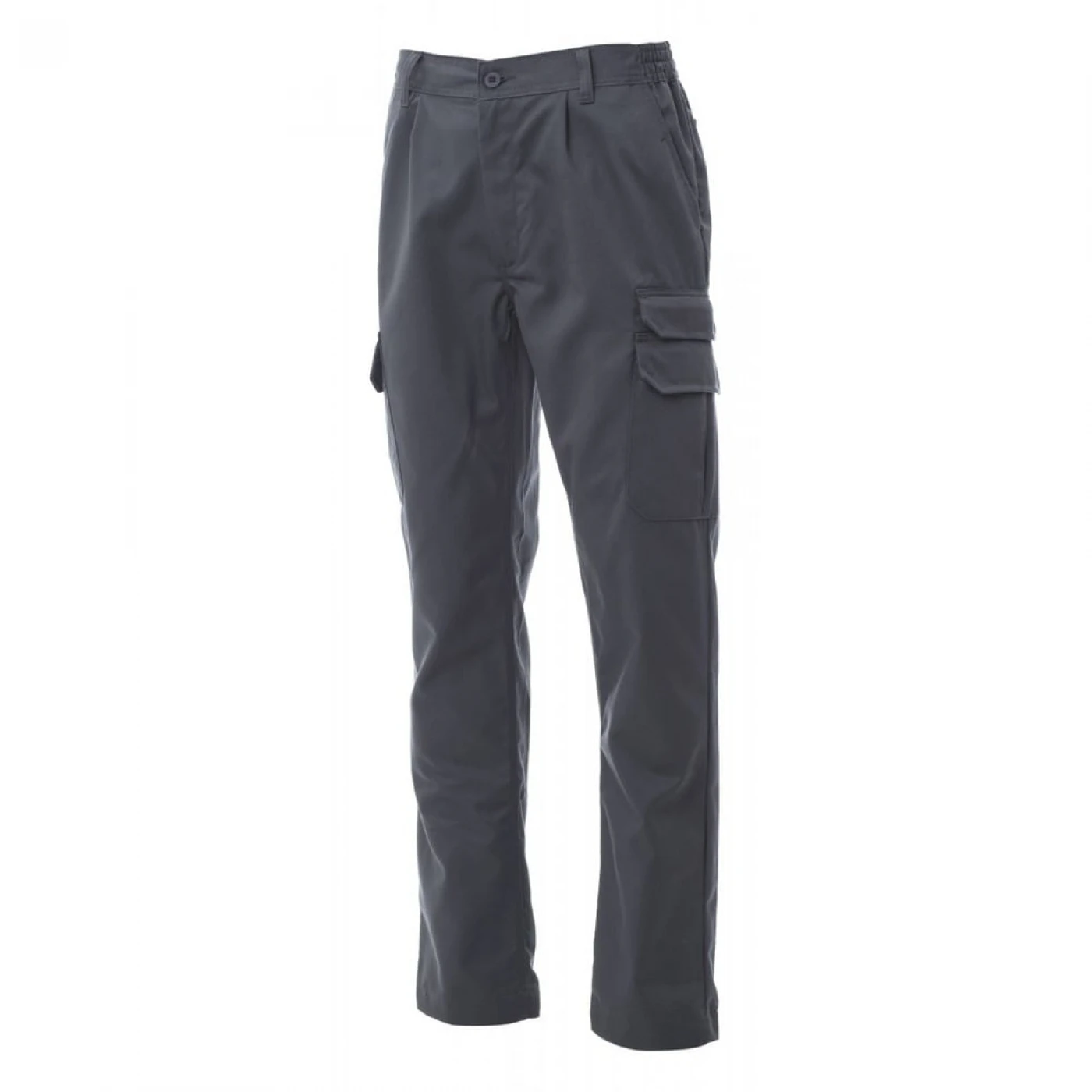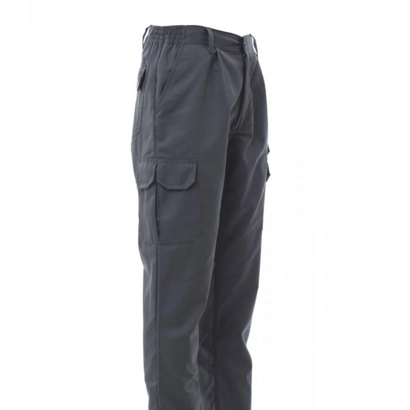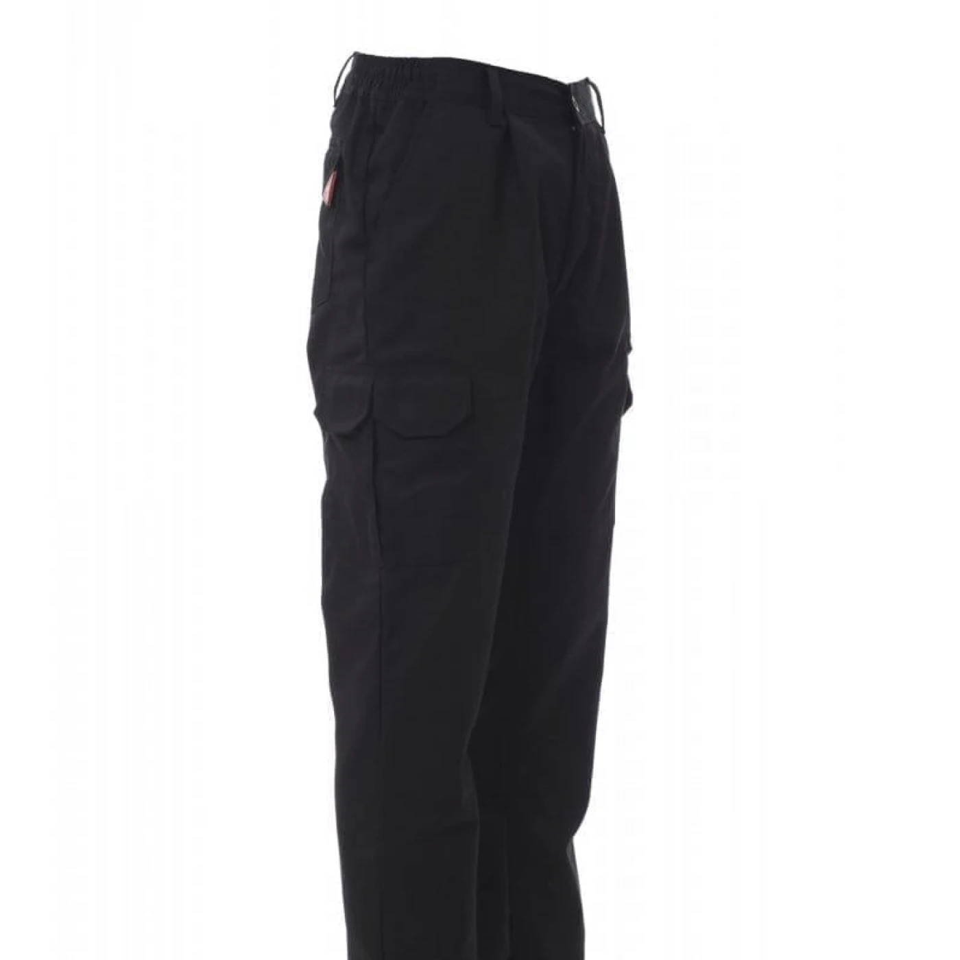 Pantaloni talie pentru barbati confectionati dintr-un amestec de 65% polyester si 35% bumbac, cu o croiala moderna cu tesatura in diagonala pentru o rezistenta sporita si cusaturi triple. Echipati cu doua buzunare clasice in fata, doua buzunare lateral stanga si un buzunar lateral dreapta cu clapa . Are doua buzunare in spate din care unul este cu inchidere cu clapa.