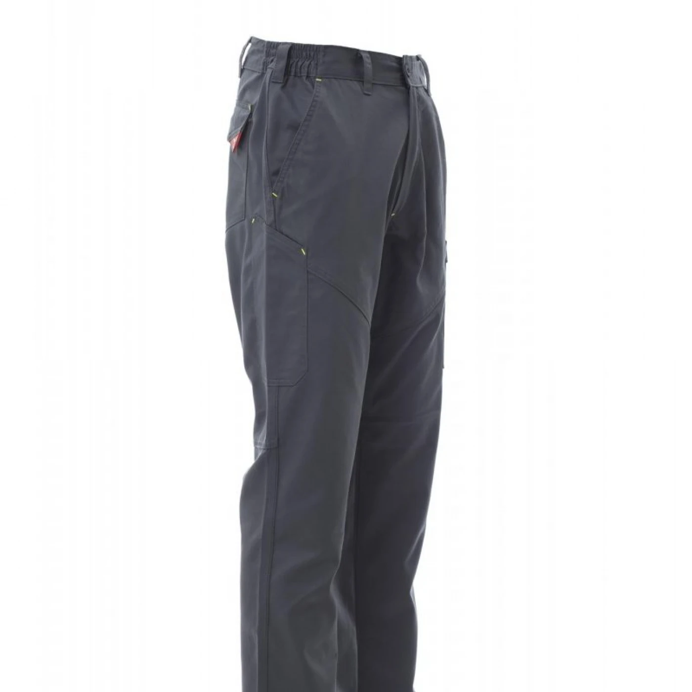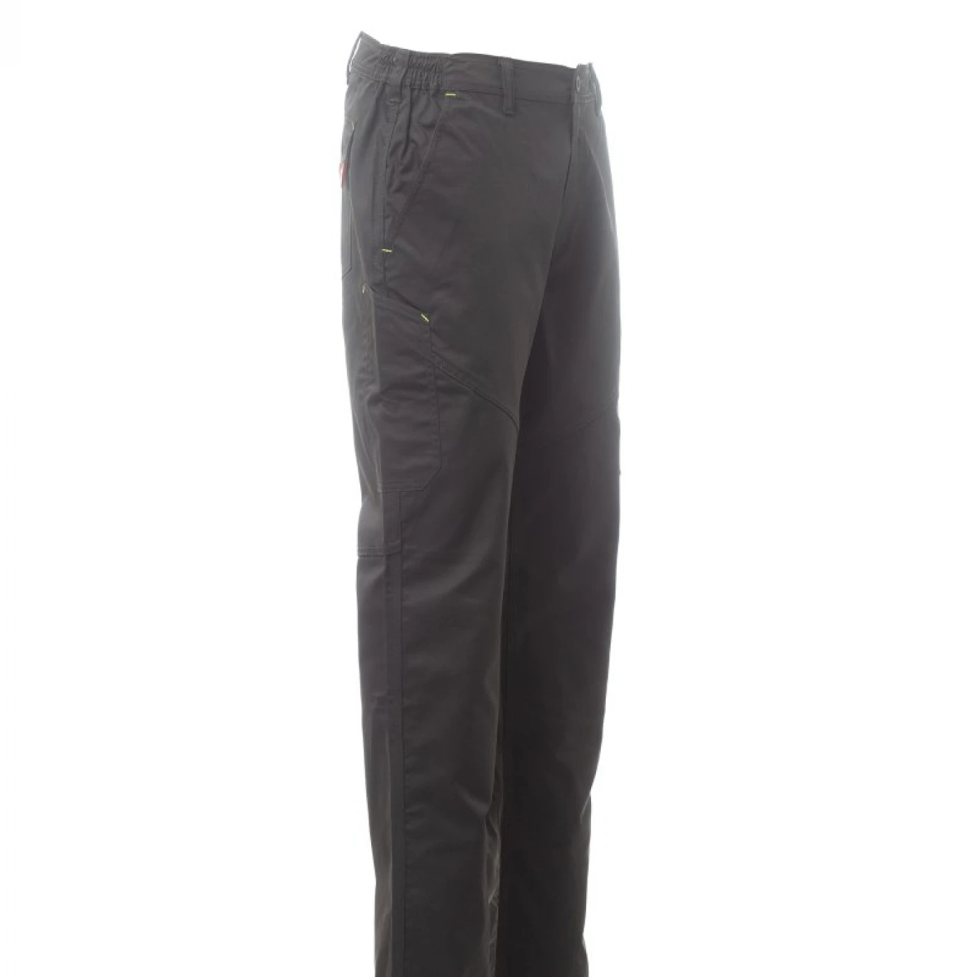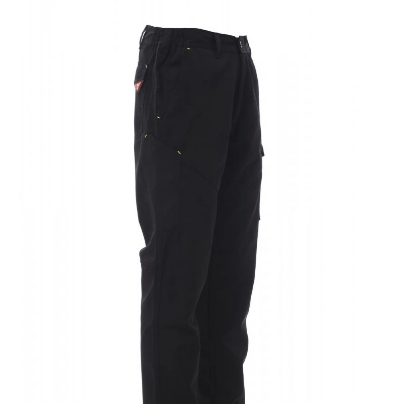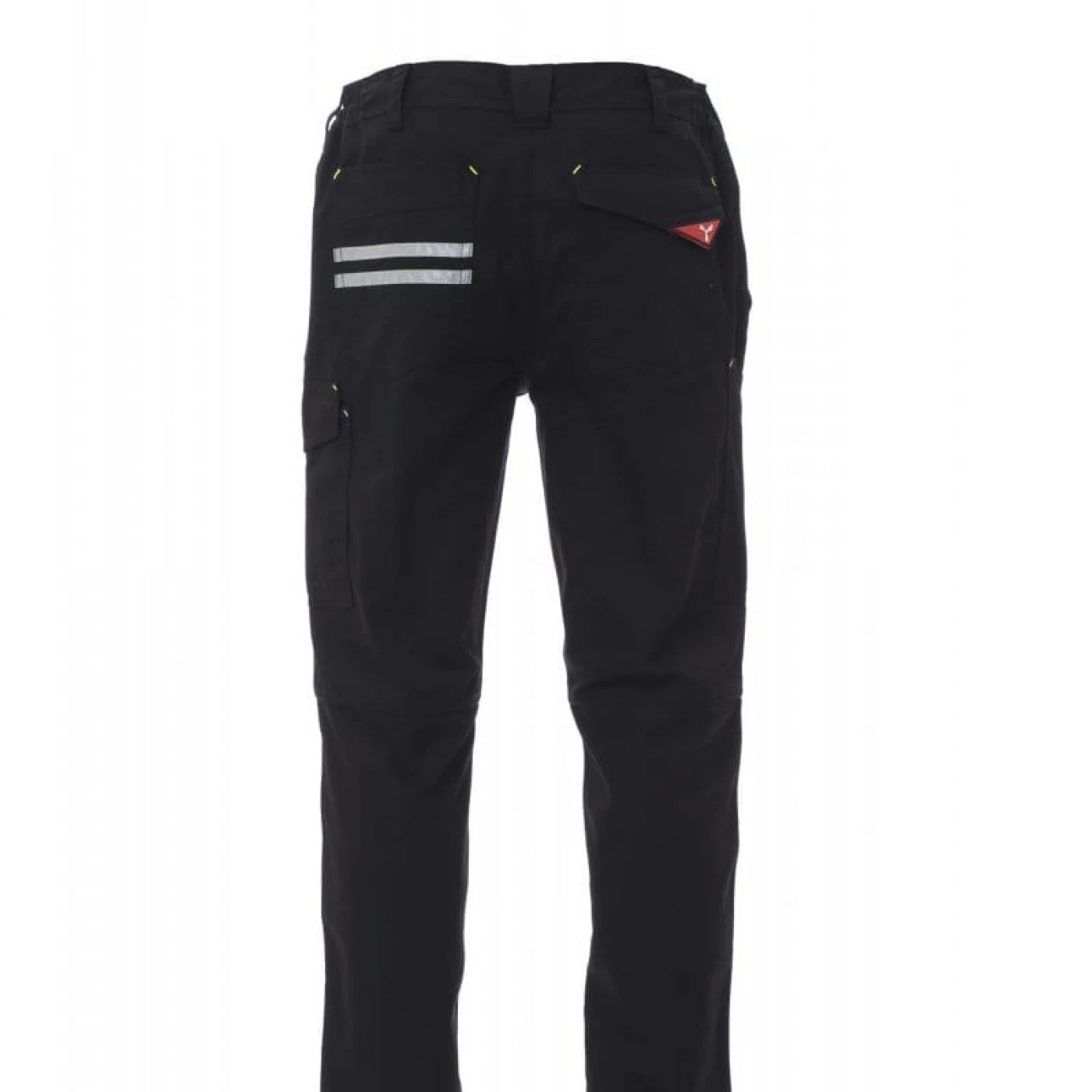 Pantaloni unisex pentru toate anotimpurile, elastic lateral și bucle pentru centură. Inchidere cu fermoar si nasture din plastic, doua buzunare clasice in fata, un buzunar lateral LOCK SYSTEM, un buzunar cu banda de masura, doua buzunare la spate, unul deschis si unul cu clapa si Velcro, cusaturi asortate, dungi reflectorizante pe buzunarul din spate, cusaturi triple. Buton Tack pentru culoarea albă. \n