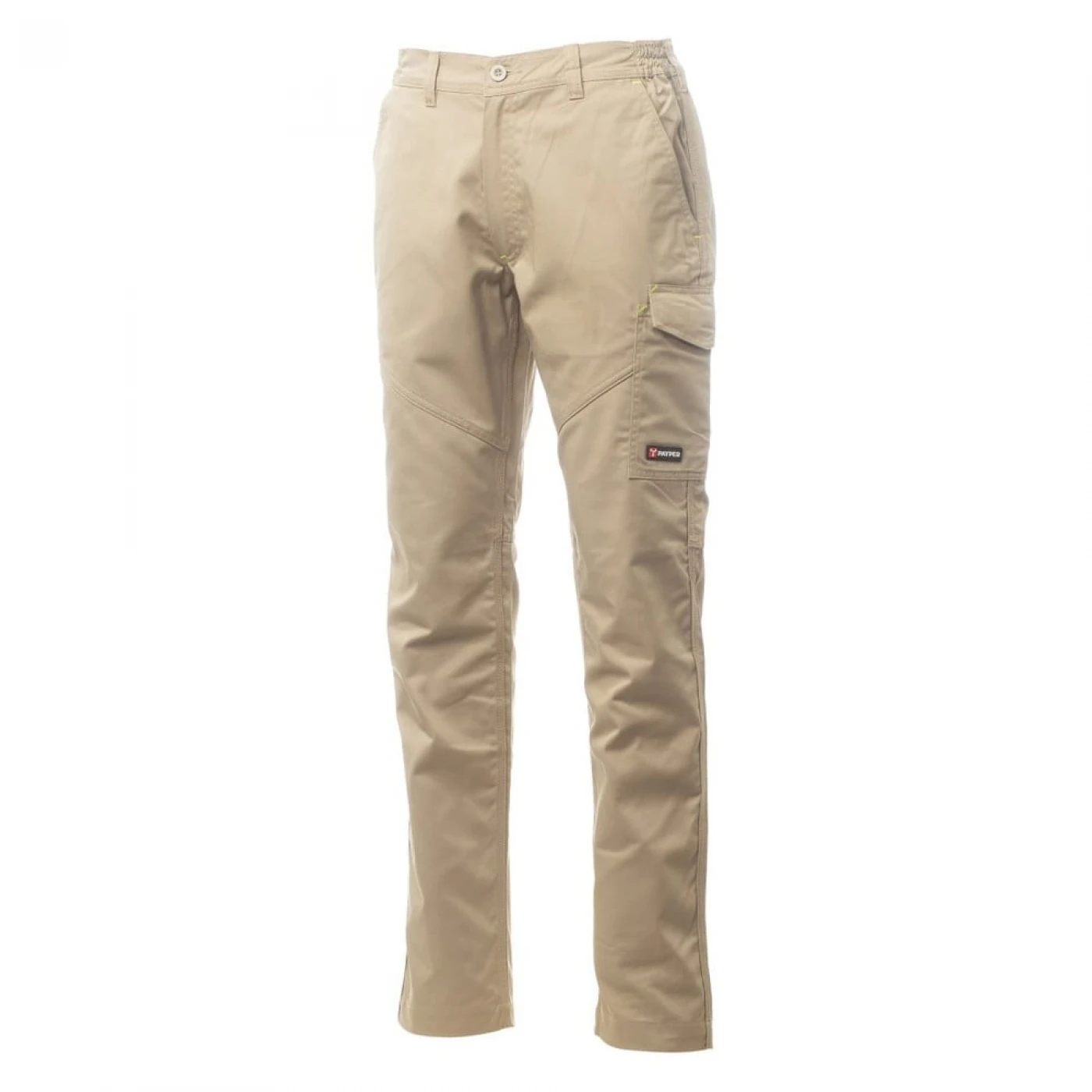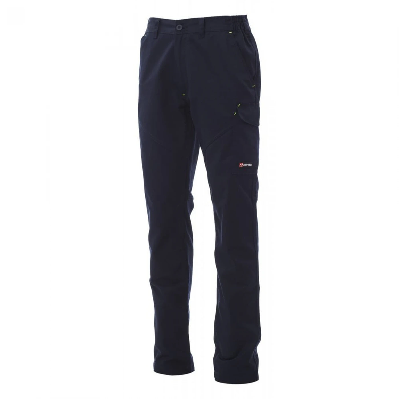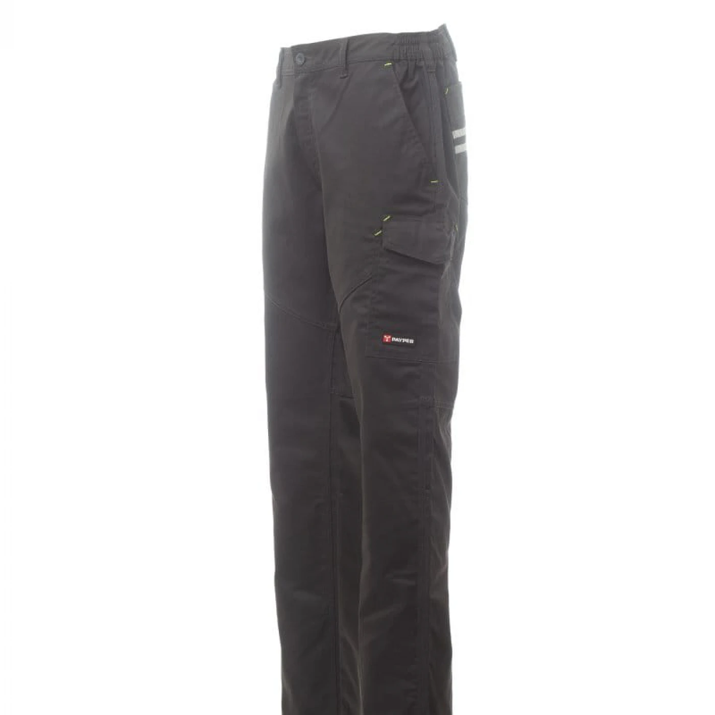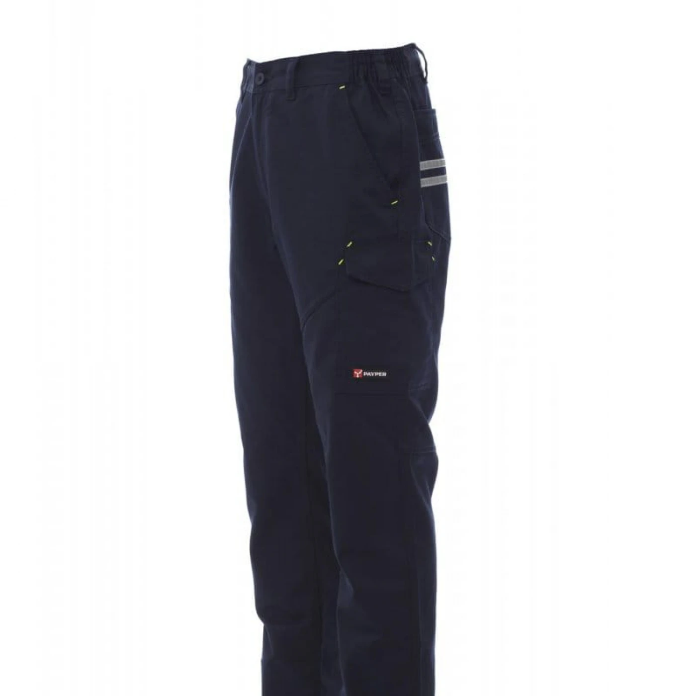 Pantaloni unisex pentru toate anotimpurile, elastic lateral și bucle pentru centură. Inchidere cu fermoar si nasture din plastic, doua buzunare clasice in fata, un buzunar lateral LOCK SYSTEM, un buzunar cu banda de masura, doua buzunare la spate, unul deschis si unul cu clapa si Velcro, cusaturi asortate, dungi reflectorizante pe buzunarul din spate, cusaturi triple. Buton Tack pentru culoarea albă. \n