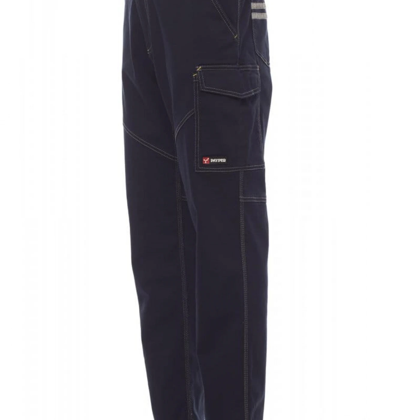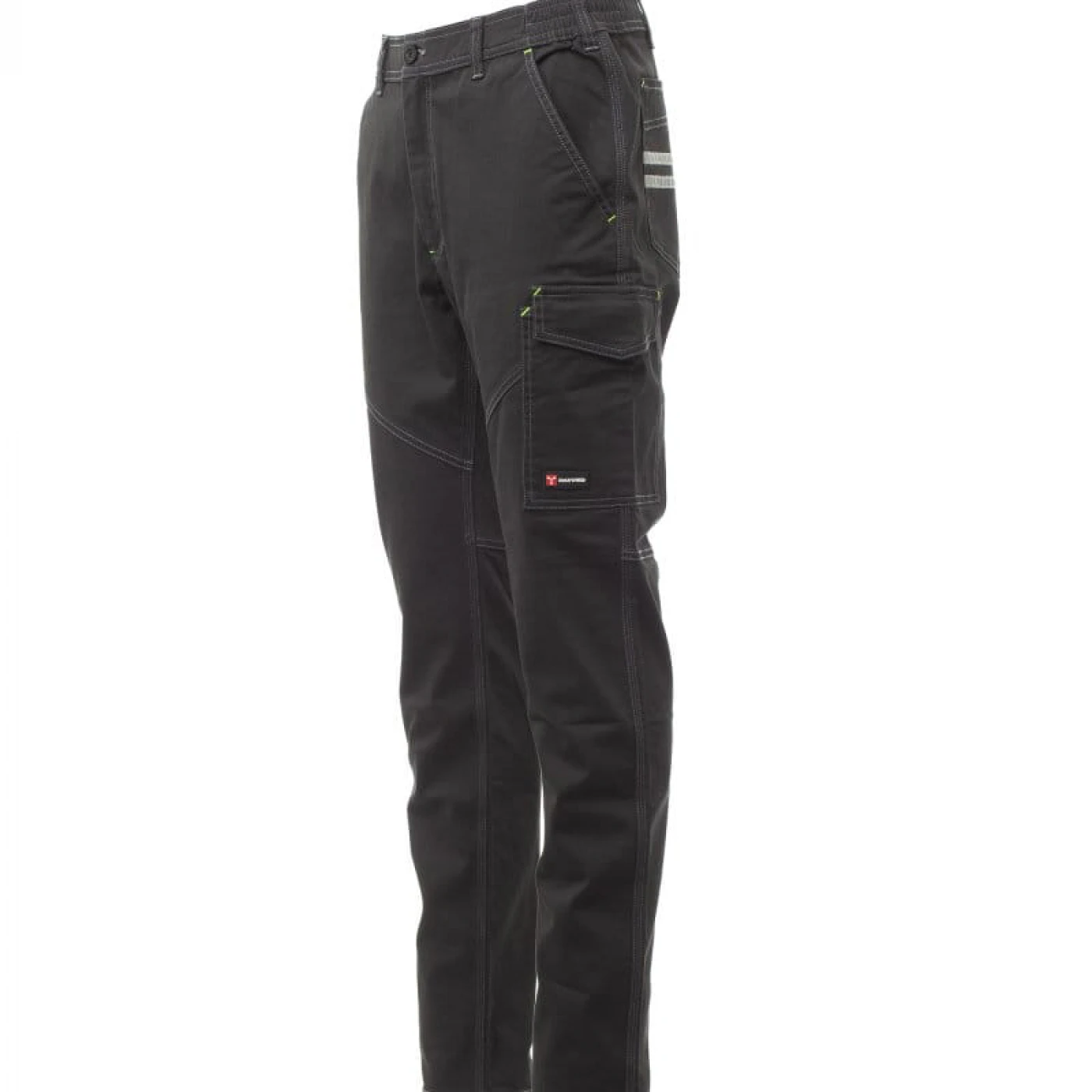Pantaloni stretch unisex pentru toate anotimpurile, cu elastic lateral și bucle pentru centură în talie. Inchidere cu fermoar si nasture din plastic, doua buzunare clasice in fata, un buzunar lateral LOCK SYSTEM, un buzunar cu banda de masura, doua buzunare la spate, unul deschis si unul cu clapa si velcro, cusaturi triple pe crotch si interiorul piciorului. Inserții și cusături contrastante, dungi reflectorizante pe buzunarul din spate, cusături triple. Buton Tack pentru culoarea albă.