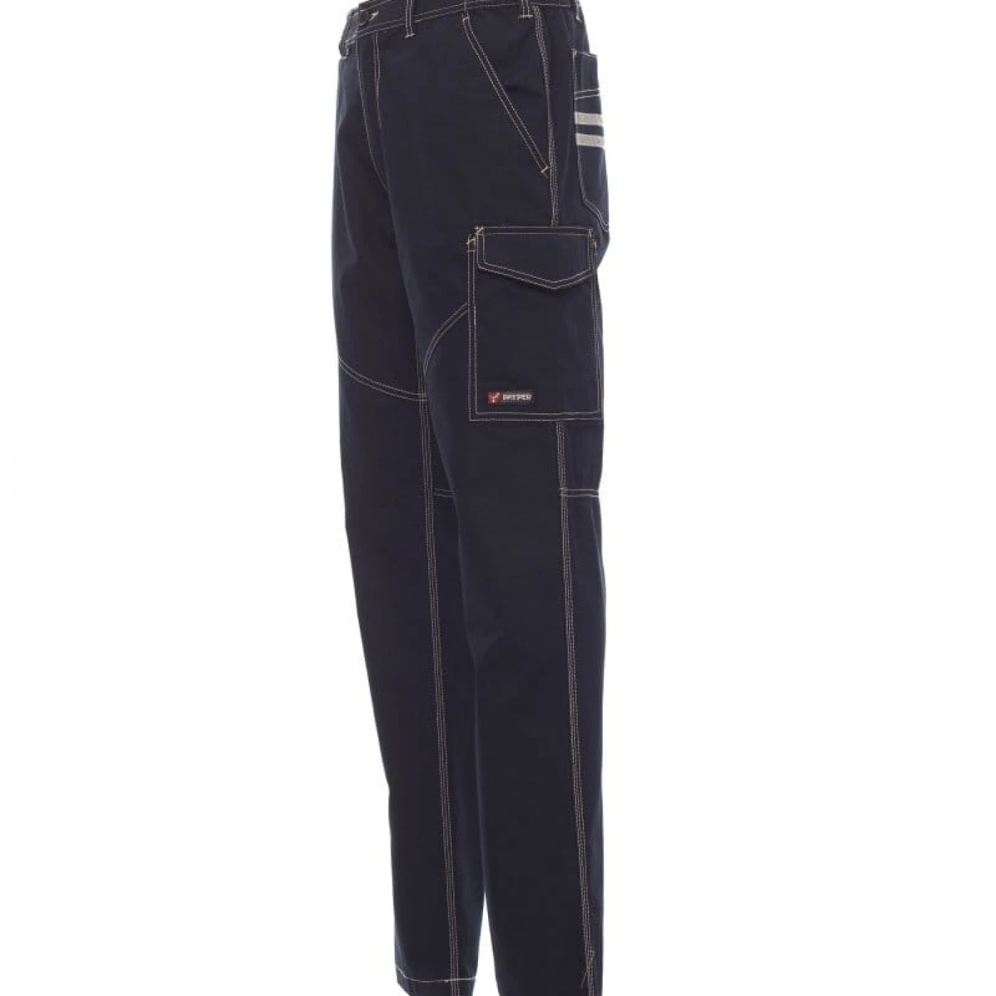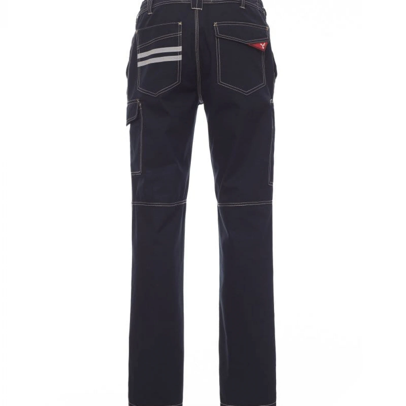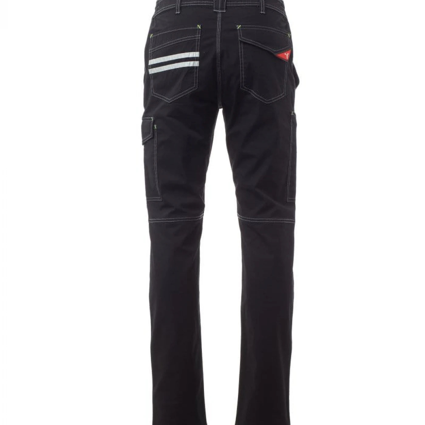 Pantaloni unisex, confecționați din țesătură elastică ușoară ripstop, cu dungi retroreflectorizante, elastice laterale și bucle pentru centură. Inchidere cu fermoar si nasture din plastic, doua buzunare clasice in fata, un buzunar lateral stanga cu LOCK SYSTEM, un buzunar dreapta cu banda de masura, doua buzunare la spate, unul deschis si unul cu clapa si Velcro. Cusături și inserții contrastante, dungi reflectorizante pe buzunarul din spate, cusături triple.