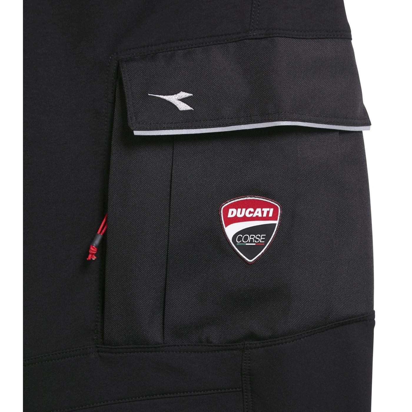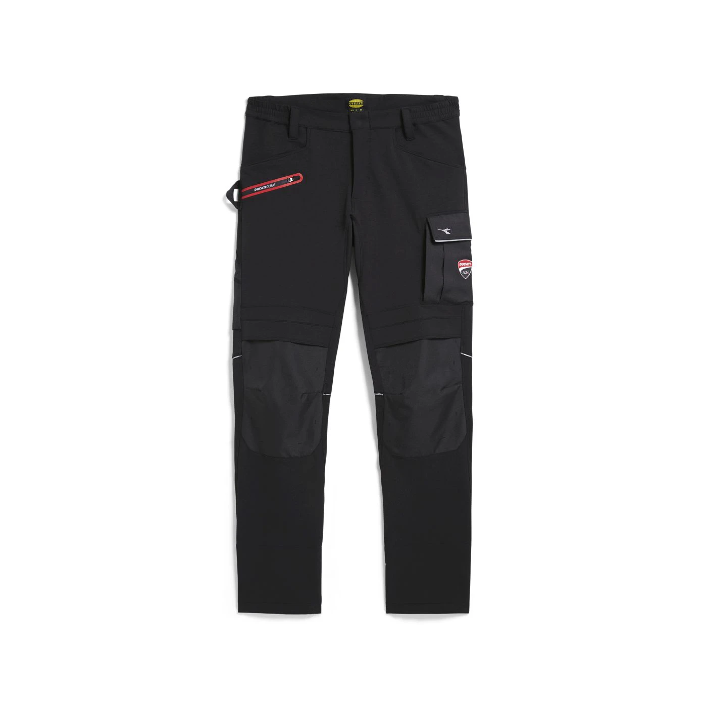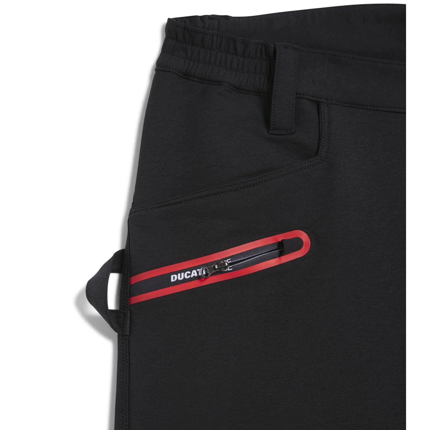 Pantalone performance personalizzato DUCATI CORSE in tessuto idrorepellente elasticizzato. Cintura sagomata con elastico ai lati per un maggior comfort. Tassello sul cavallo per favorire la mobilità. Tasche frontali aperte. Doppia tasca laterale con porta metro. Porta ginocchiere in tessuto antibrasione con apertura dall'alto. Dettagli reflex. Bottone a scomparsa. Gamba ergonomica e lunghezza regolabile con bottoni a pressione.