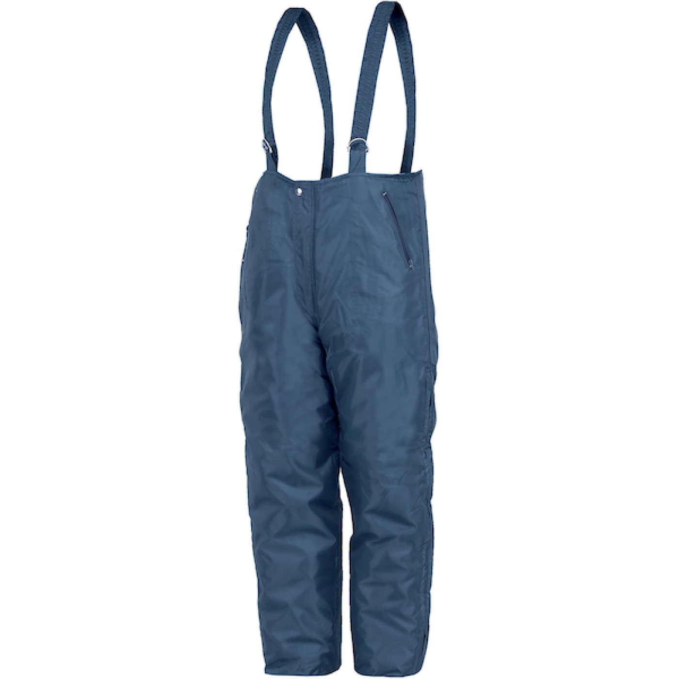 Pantaloni groși matlasați, cu bretele elastice reglabile pentru umeri, două buzunare cu fermoar, închidere frontală cu fermoar, deschidere laterală lungă cu fermoar, terminație elastică la nivelul gleznelor pentru fixare pe încălțăminte.