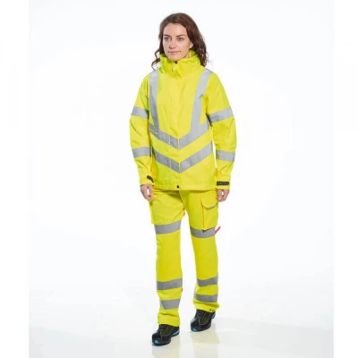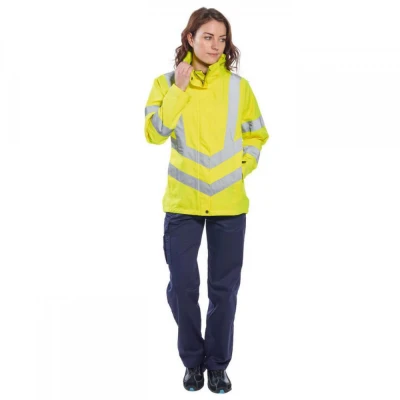 O jacheta extrem de stilata HiVis pentru femei. Designul contemporan impreuna cu benzile reflectorizante ofera in look deosebit. Materialul Oxford durabil si respirabil, gluga detasabila si buzunarele cu fermoar fac din aceasta jacheta un produs recomandat pentru toate mediile de lucru