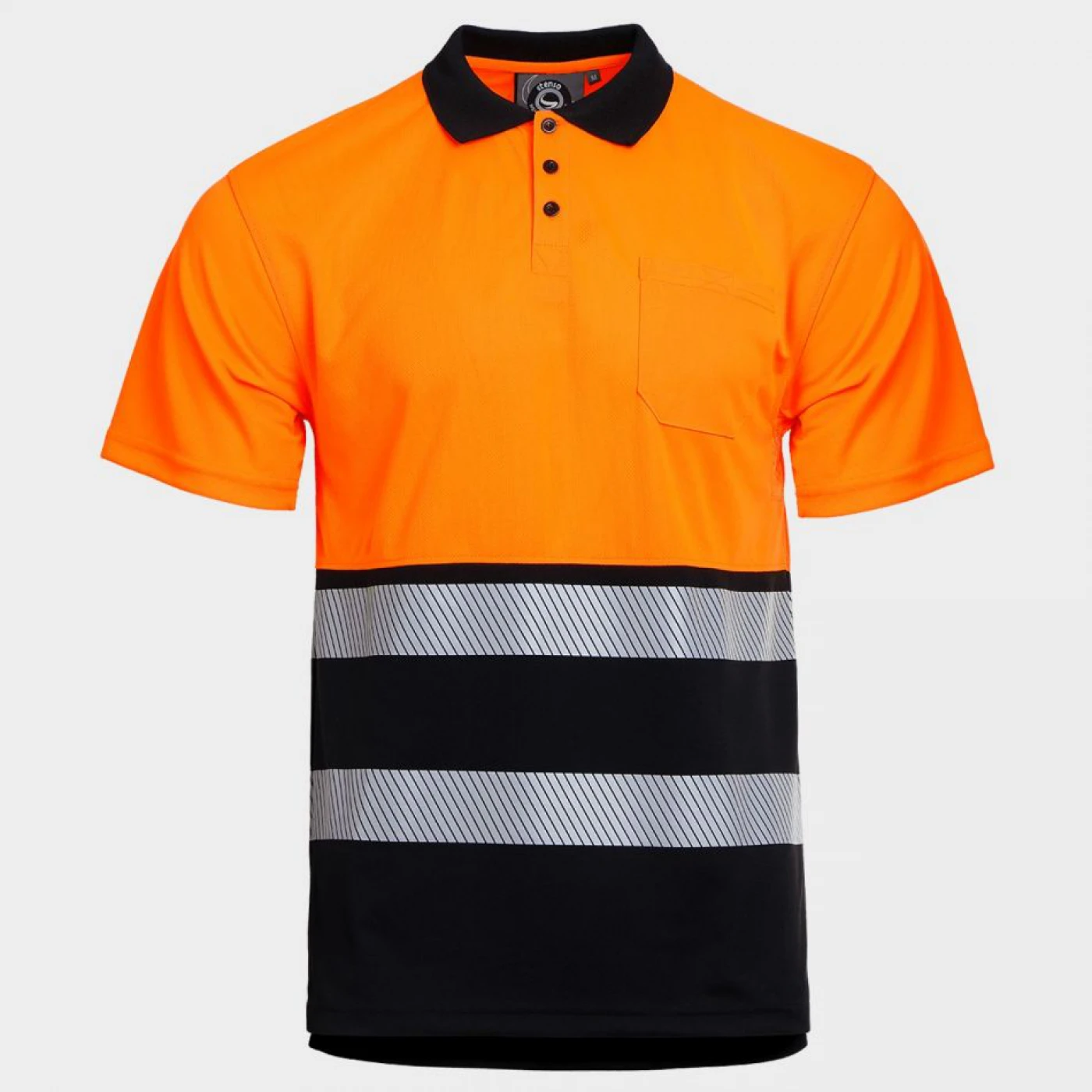 Polo tricou reflectorizant PRISMA HV PORTOCALIU/NEGRU / Stenso / Reflectorizanta