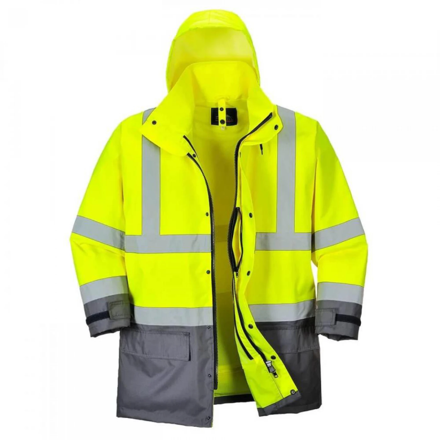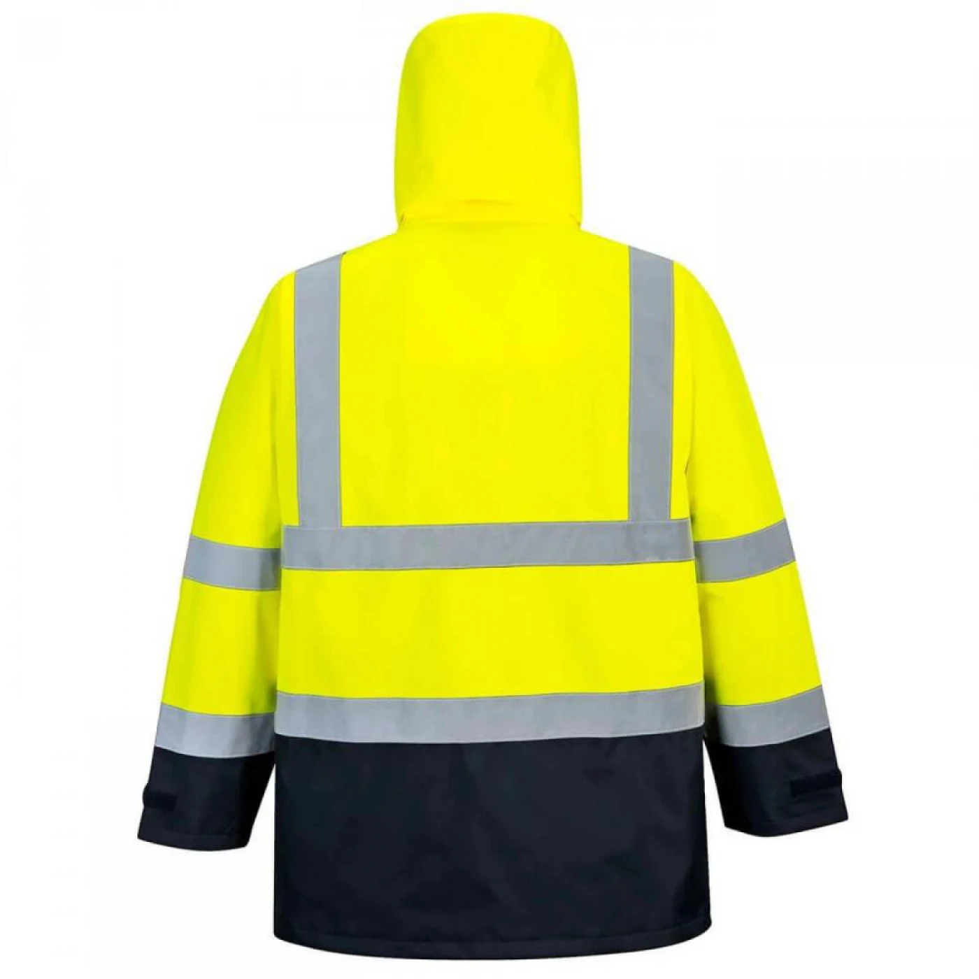Stil inovator adaptabil pentru utilizari multiple. Jacheta exterioara contine doua buzunare utile mari cu inchidere cu scai si o gluga ascunsa, in timp ce jacheta interna are maneci detasabile din fleece, 2 buzunare spatioase laterale si certificare completa EN ISO 20471 clasa 3.