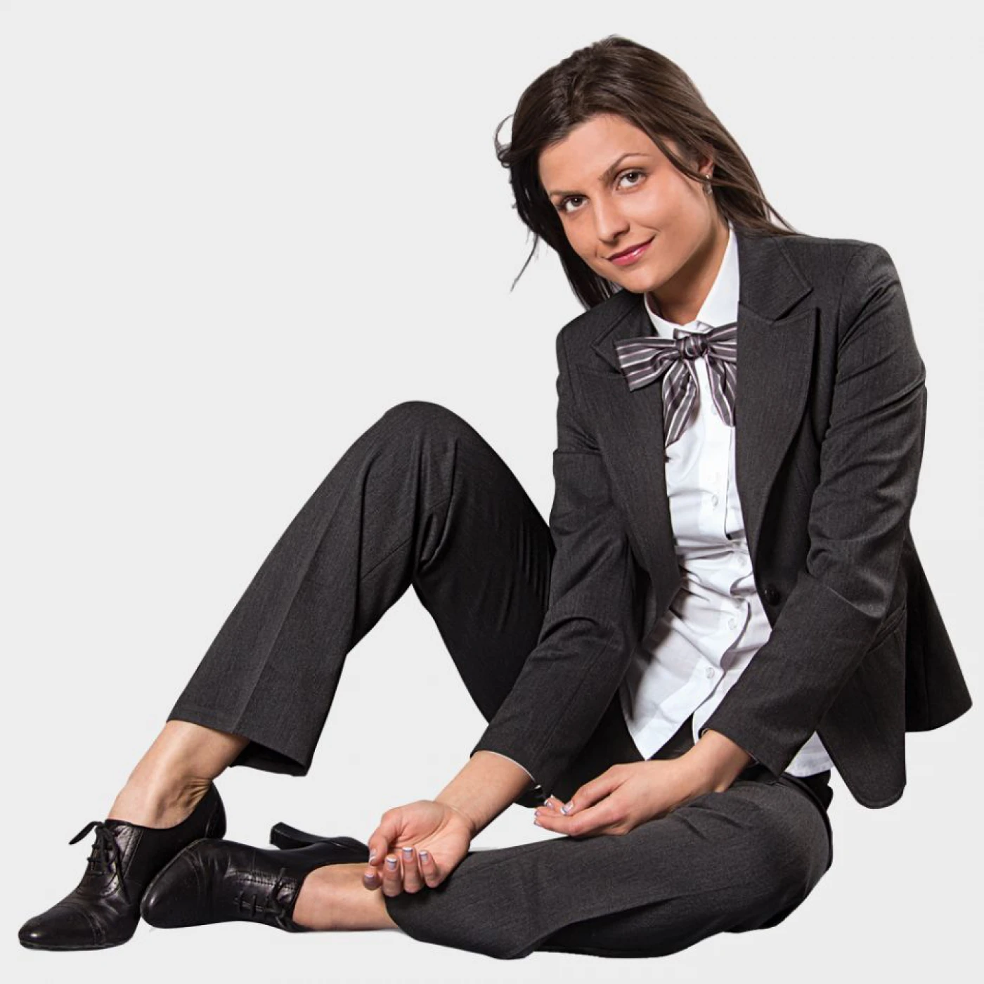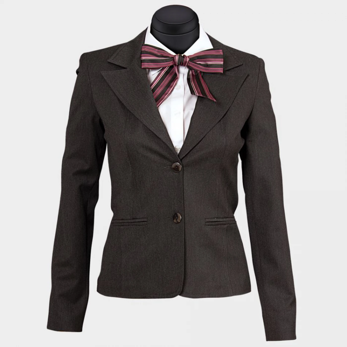 Sacou de damă: închidere cu doi nasturi, două buzunare frontale.