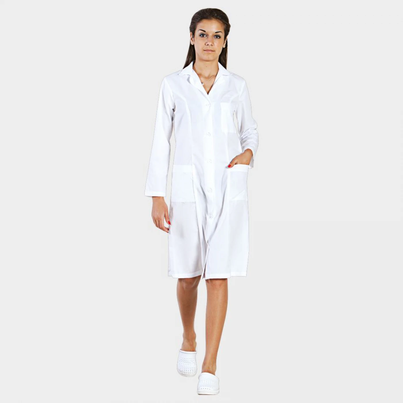 Halat de damă cu guler și rever, mânecă lungă, trei buzunare și închidere cu nasturi. MATERIAL: bumbac/poliester, 120 g/m²