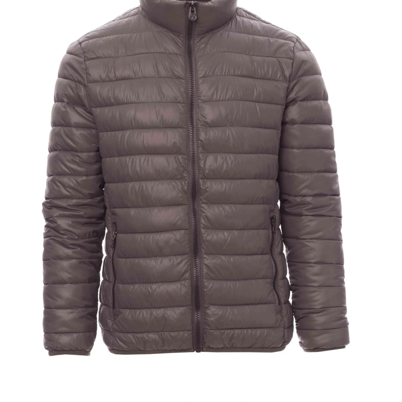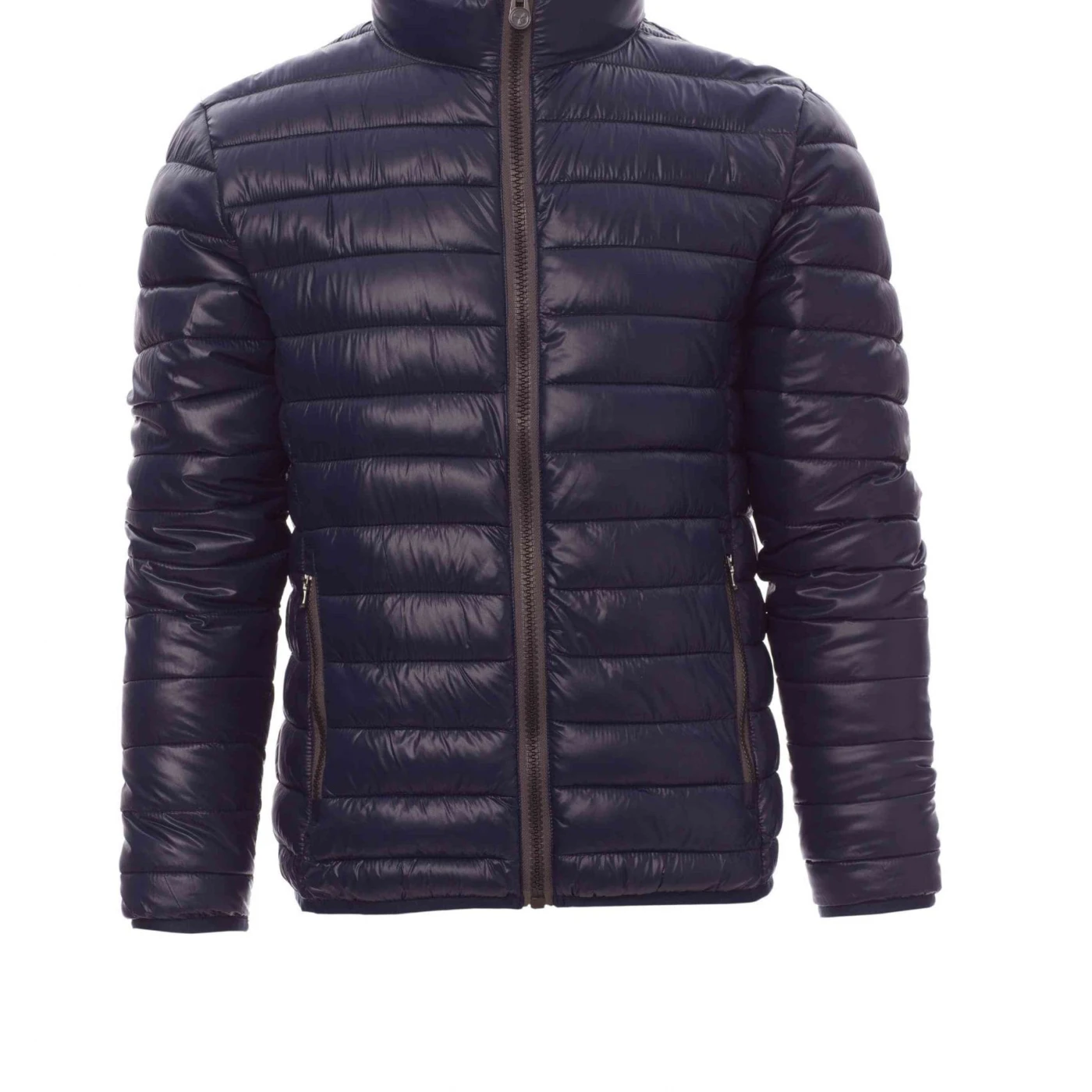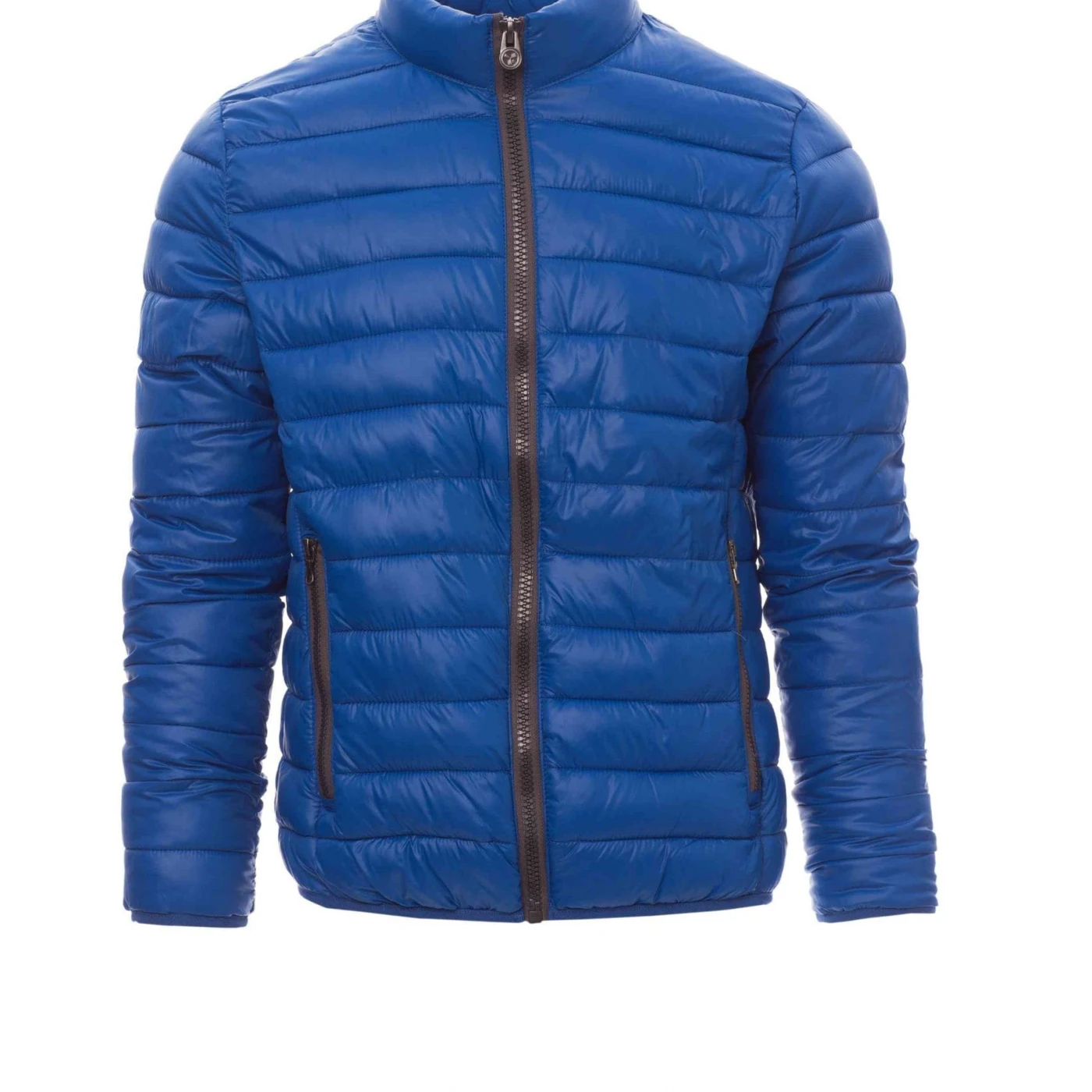 Geacă matlasată pentru bărbați, fermoar de 8 mm din plastic cu cursor metalic, margine îngustă la manșete și în talie, două buzunare exterioare. Vătuită la interior cu poliester, trei buzunare.