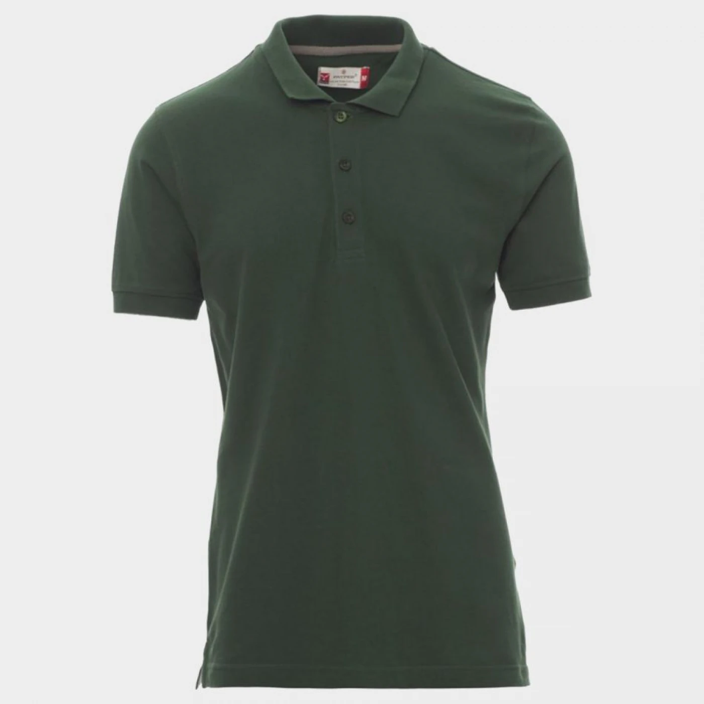 Tricou cu mânecă scurtă pentru bărbați , cu 4 nasturi colorați cu efect perlat, guler și margine mânecă elastice, mici fante laterale, cusături ascunse ale gulerului cu bandă contrastantă, cusături stretch, bandă de întăritură laterală, întăritură modelată în partea din spate a gulerului.