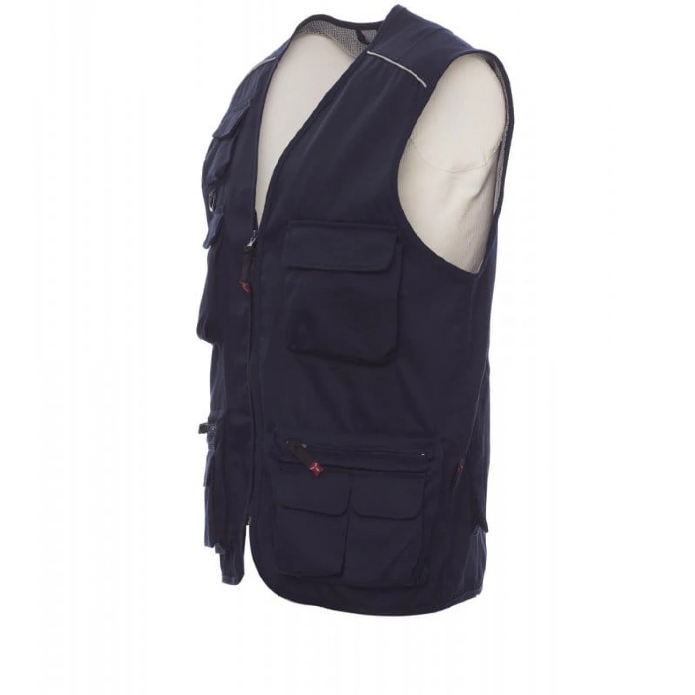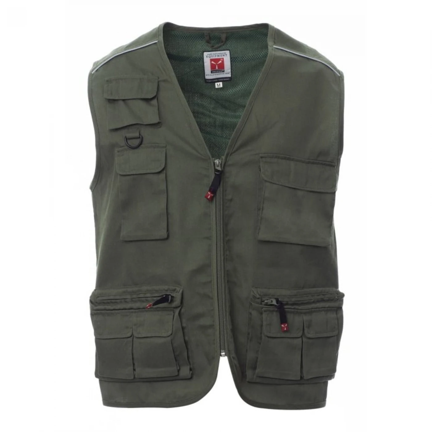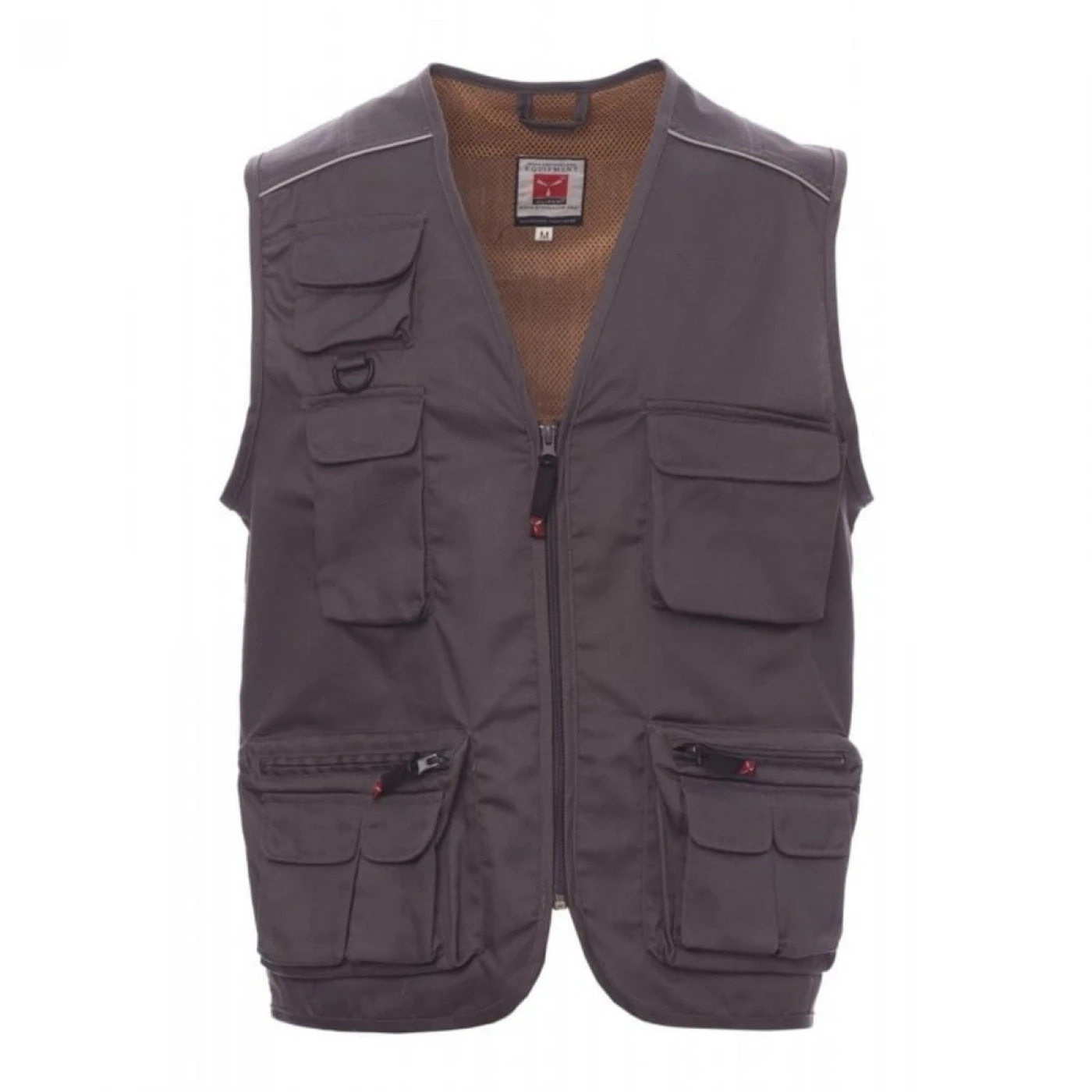 Vesta de vara pentru barbati confectionata dintr-un amestec de 80% polyester si 20% bumbac twill. Confortabila si respirabila datorita captuselii dry-tech la interior. Inchiderea frontala se face cu ajutorul unui fermoar si este echipata cu buzunare multiple in fata pentru depozitare. Insertii reflectorizante pe umeri si spate dar si pe buzunarul din fata pentru ecuson.