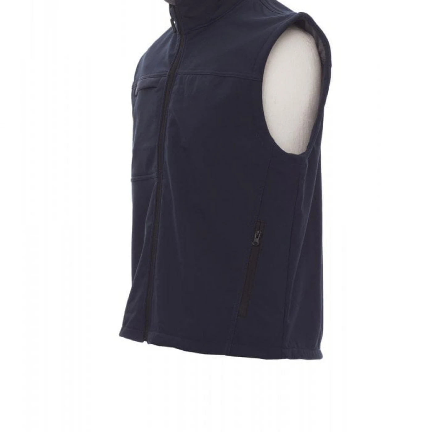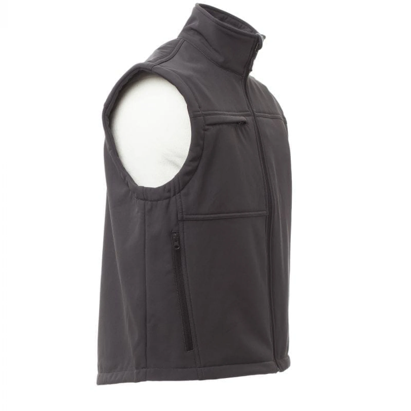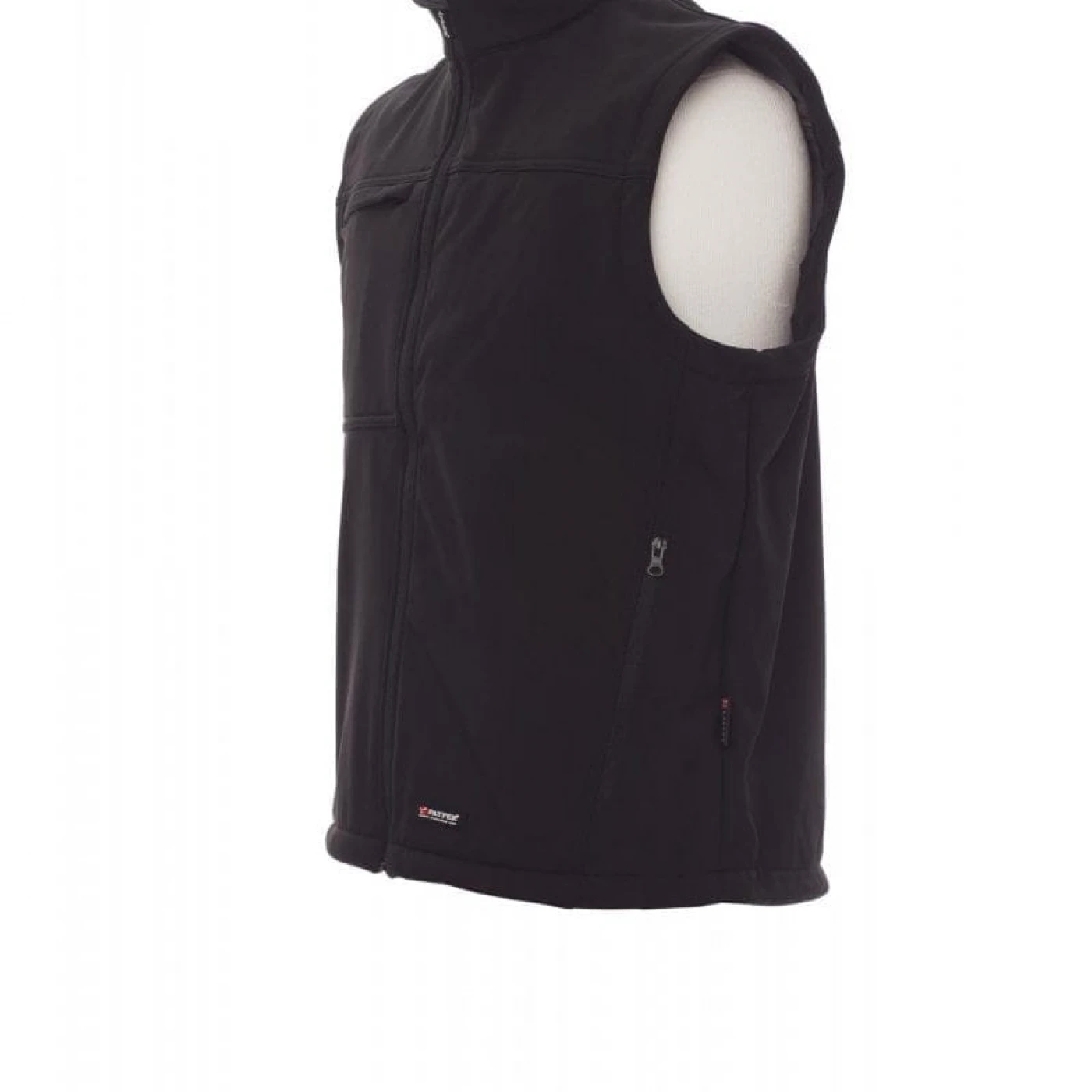 Vestă confortabilă din softshell pentru bărbați care asigura o protectie sporita impotriva vantului (windproof) si impotriva apei (waterproof - WP 8000 mm H₂O, WVT 5000 g/m² 24h). Inchidere cu fermoar SBS lung, echipata cu două buzunare laterale cu fermoar, buzunar la piept cu suport pentru insignă si buzunar interior. Strangere cu snur in talie și broderie pe piept și umeri.