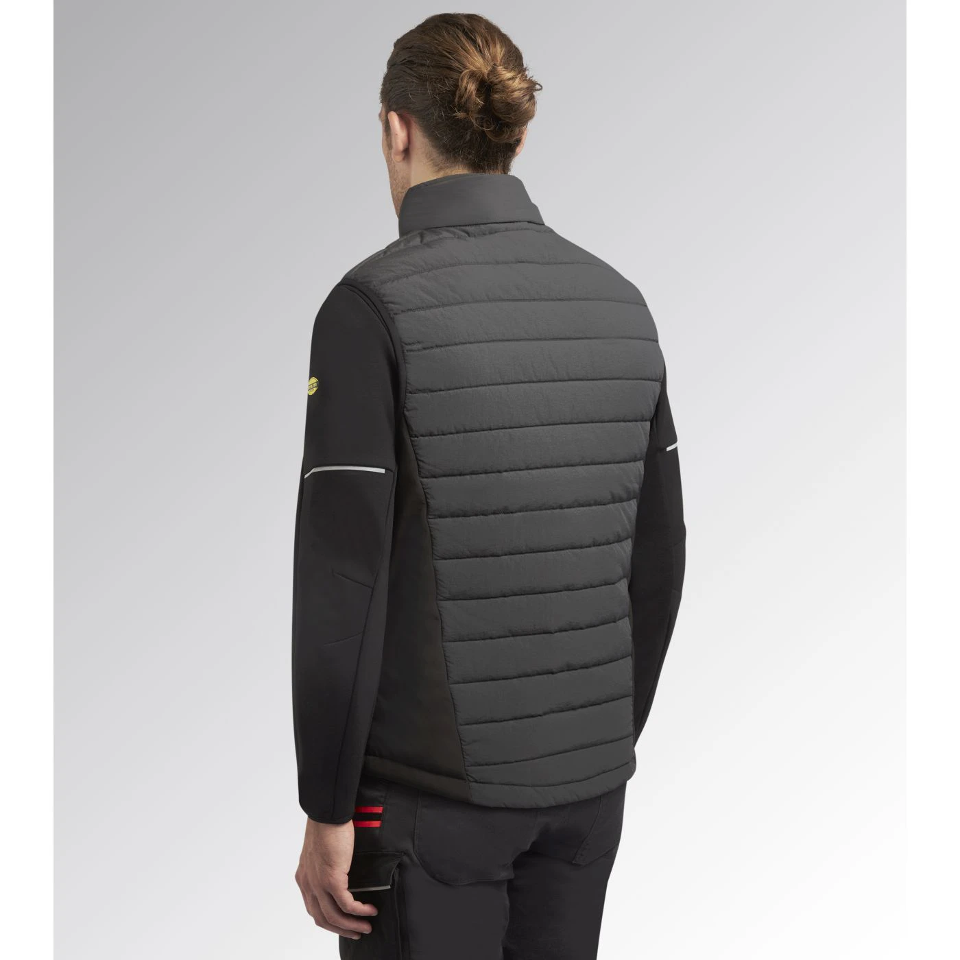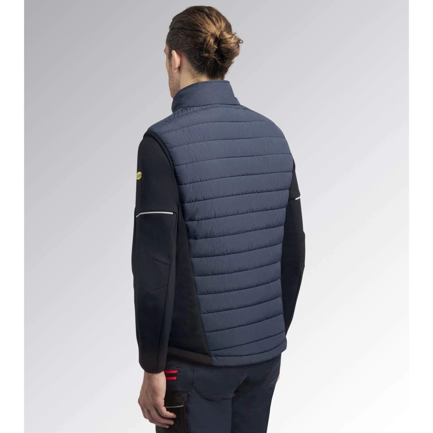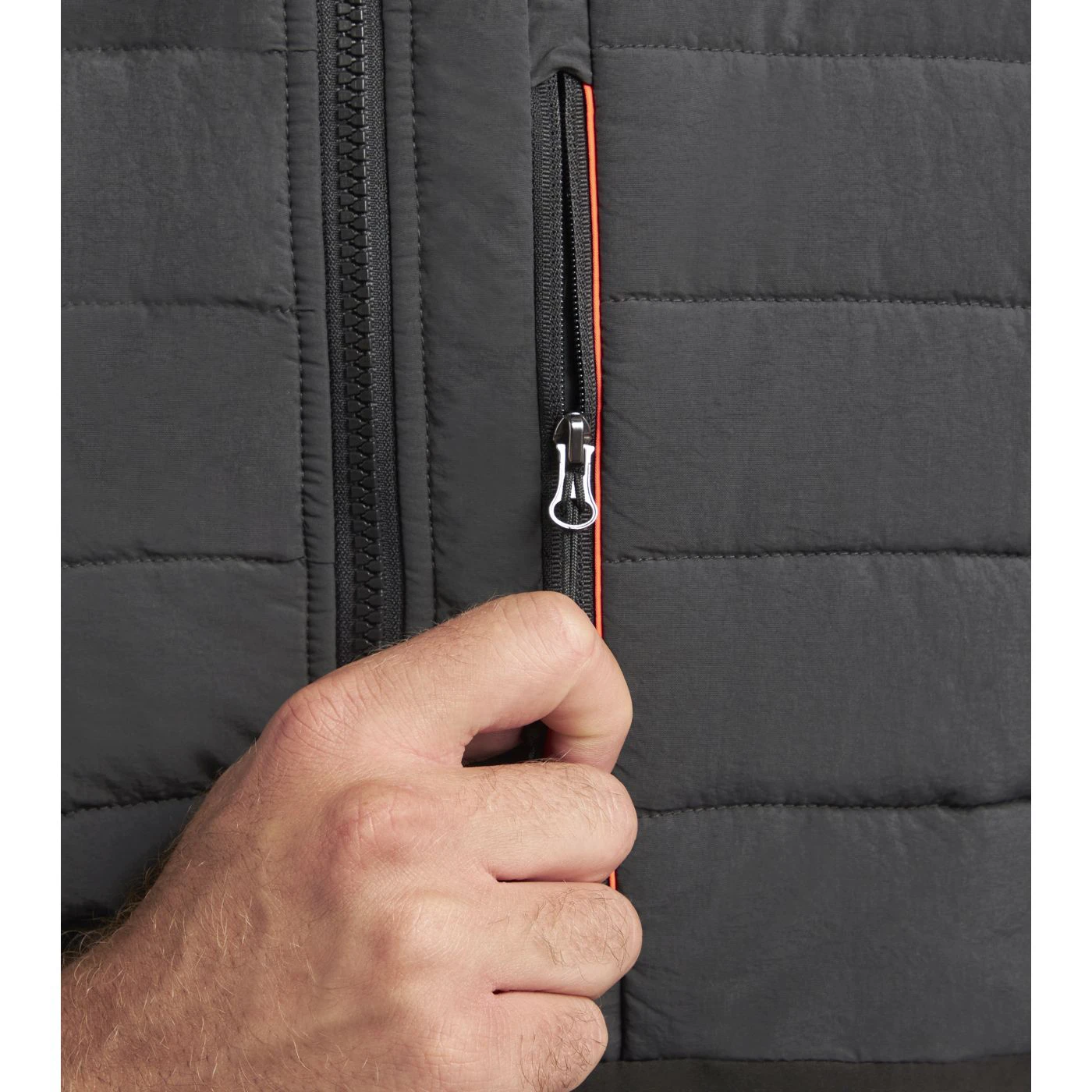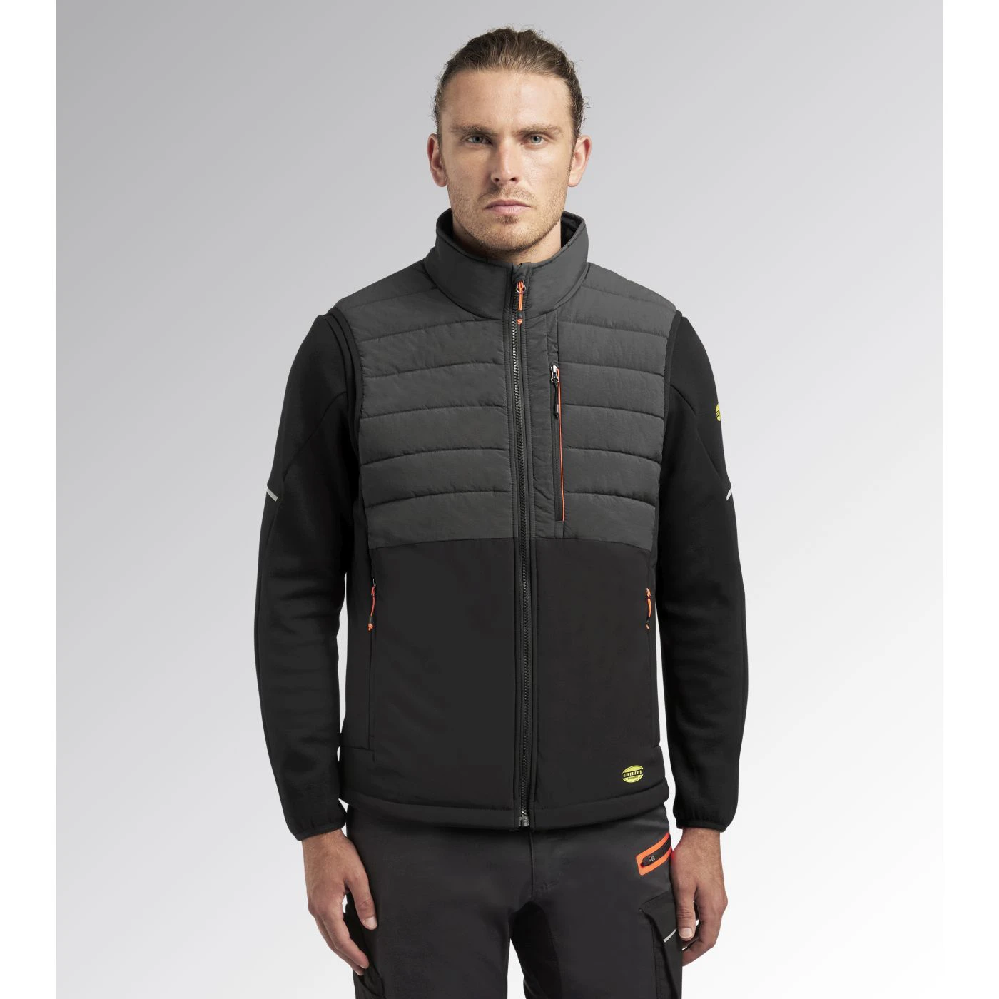 Gilet bimateriale imbottito leggero e idrorepellente. Collo in piedi con inserto salvabarba. Parte posteriore più lunga per una miglior vestibilità. Due tasche laterali e tasca in zona petto, tutte con chiusura zip. Due tasche interne. Giro manica elasticizzato con Lycra. Dettagli fluo.