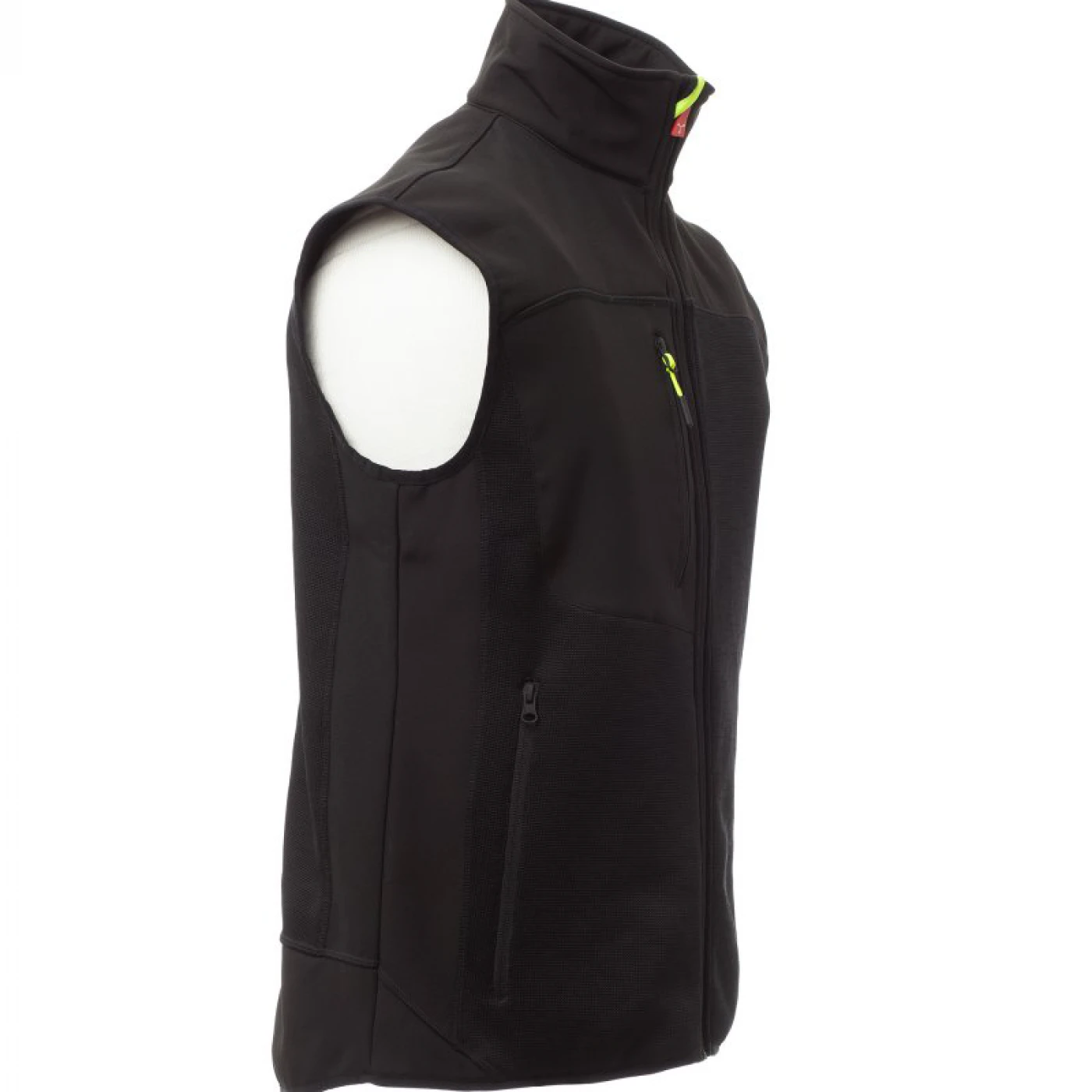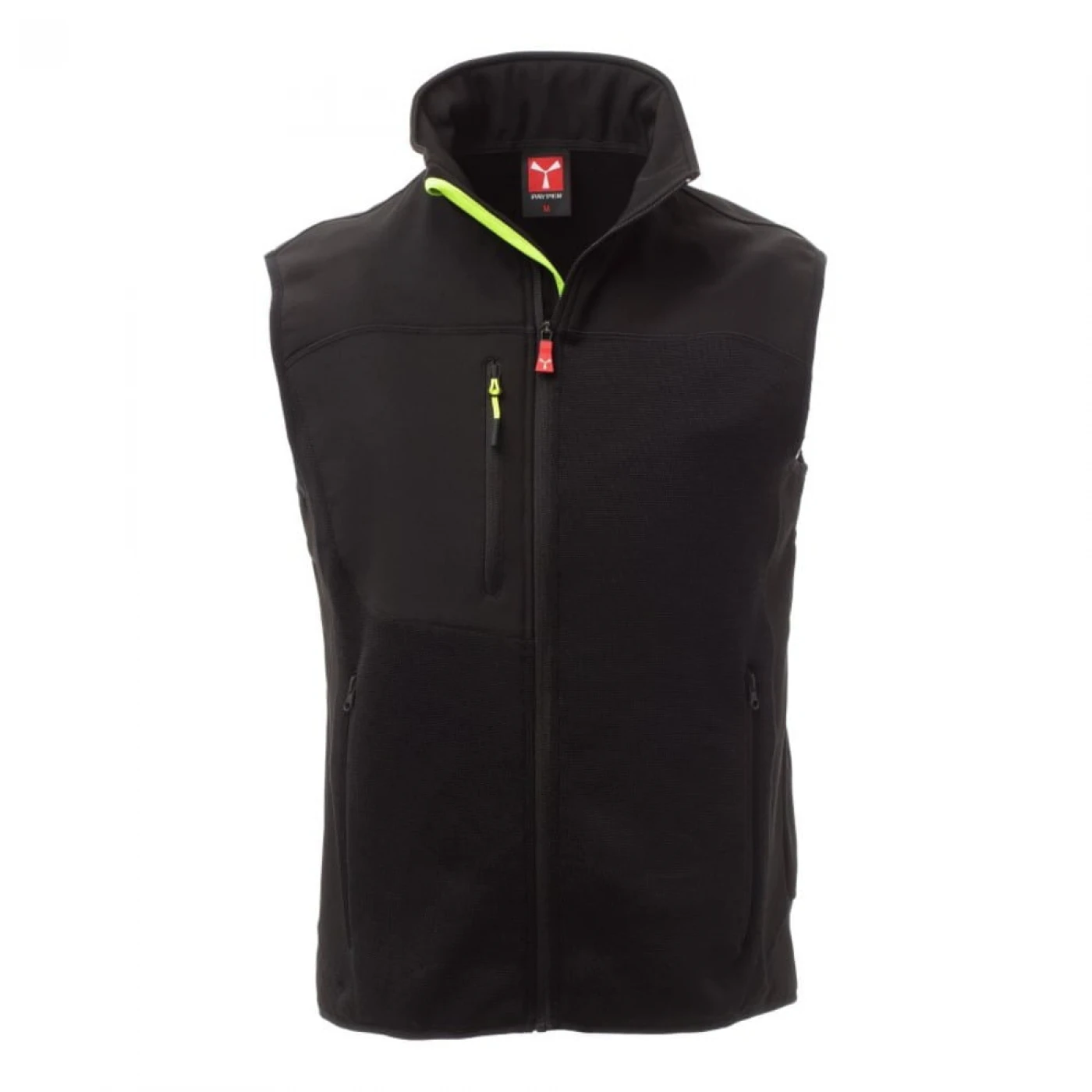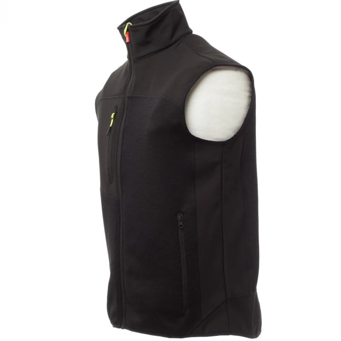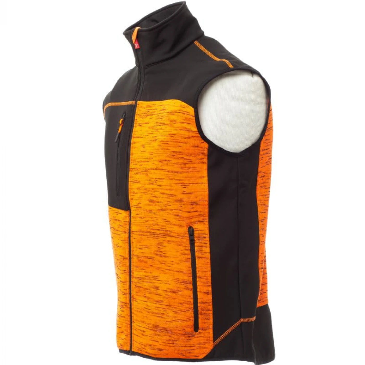 Vesta confortabila pentru barbati in doua tonuri de culori, confectionata din poliester tricotat si insertii de softshell de culoare neagra. Inchiderea frontala se face cu ajutorul unui fermoar cu glisor metalic si sistem de semiblocare. Echipata cu doua buzunare frontale si unul la piept, toate cu inchidere cu fermoar.