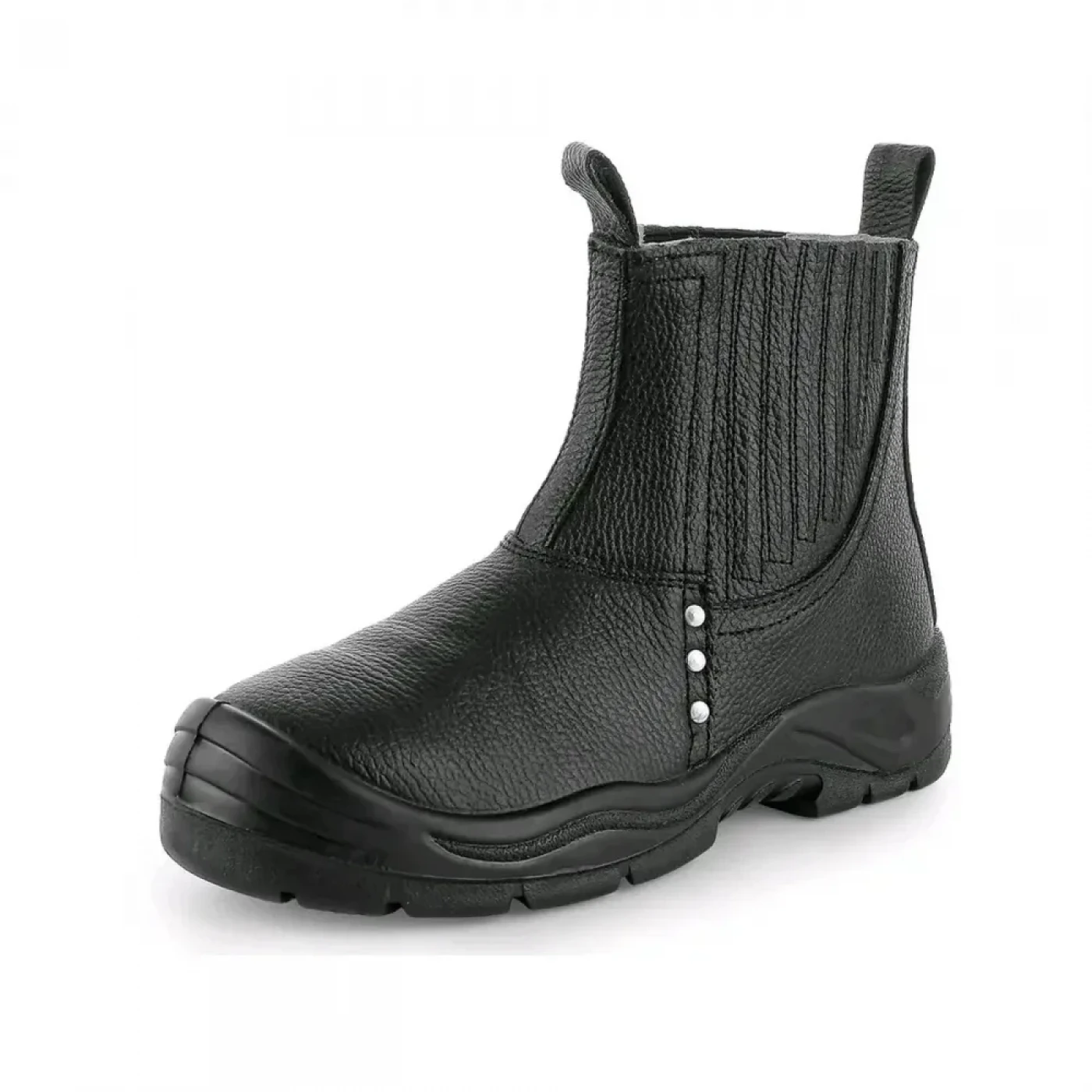 Material: partea superioară din piele embosată groasă și de calitate, cu bombeu din oțel, prevăzută cu arc flexibil din cauciuc acoperit.