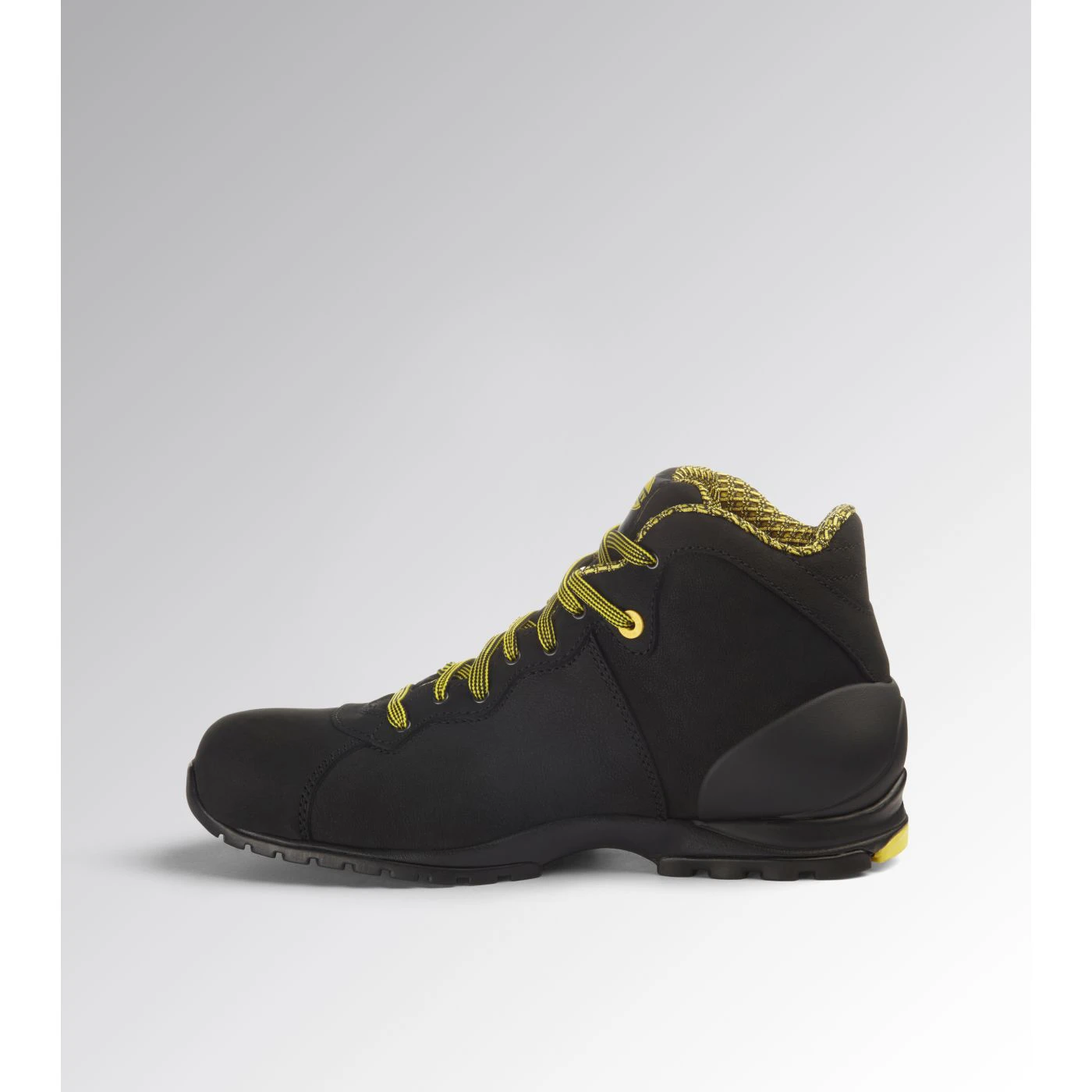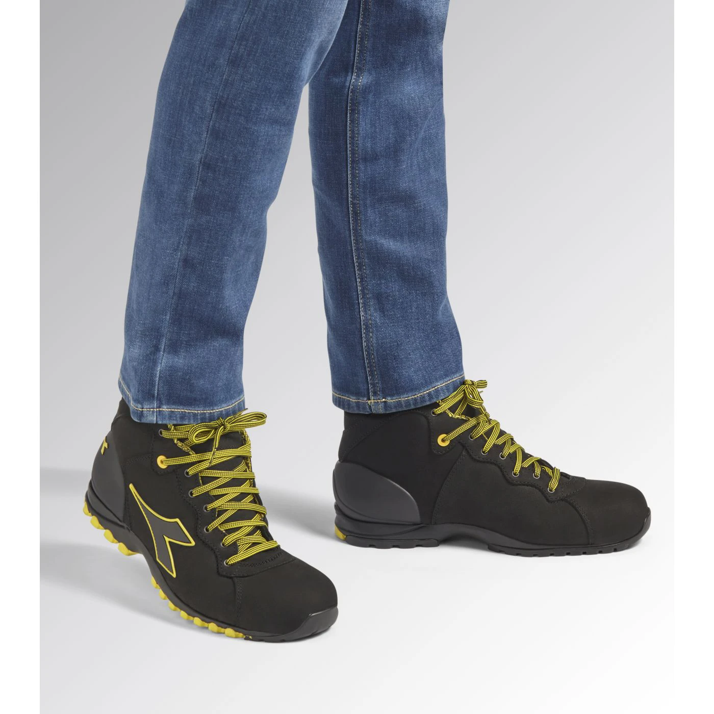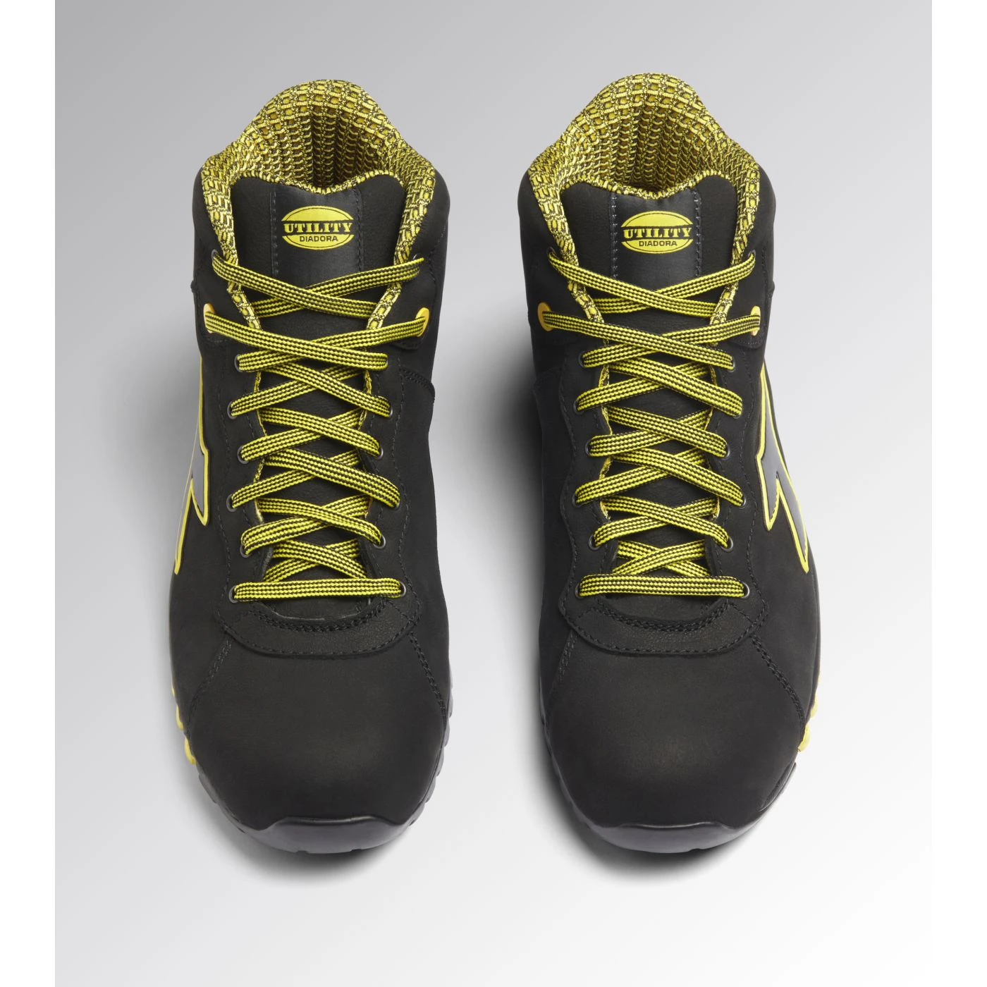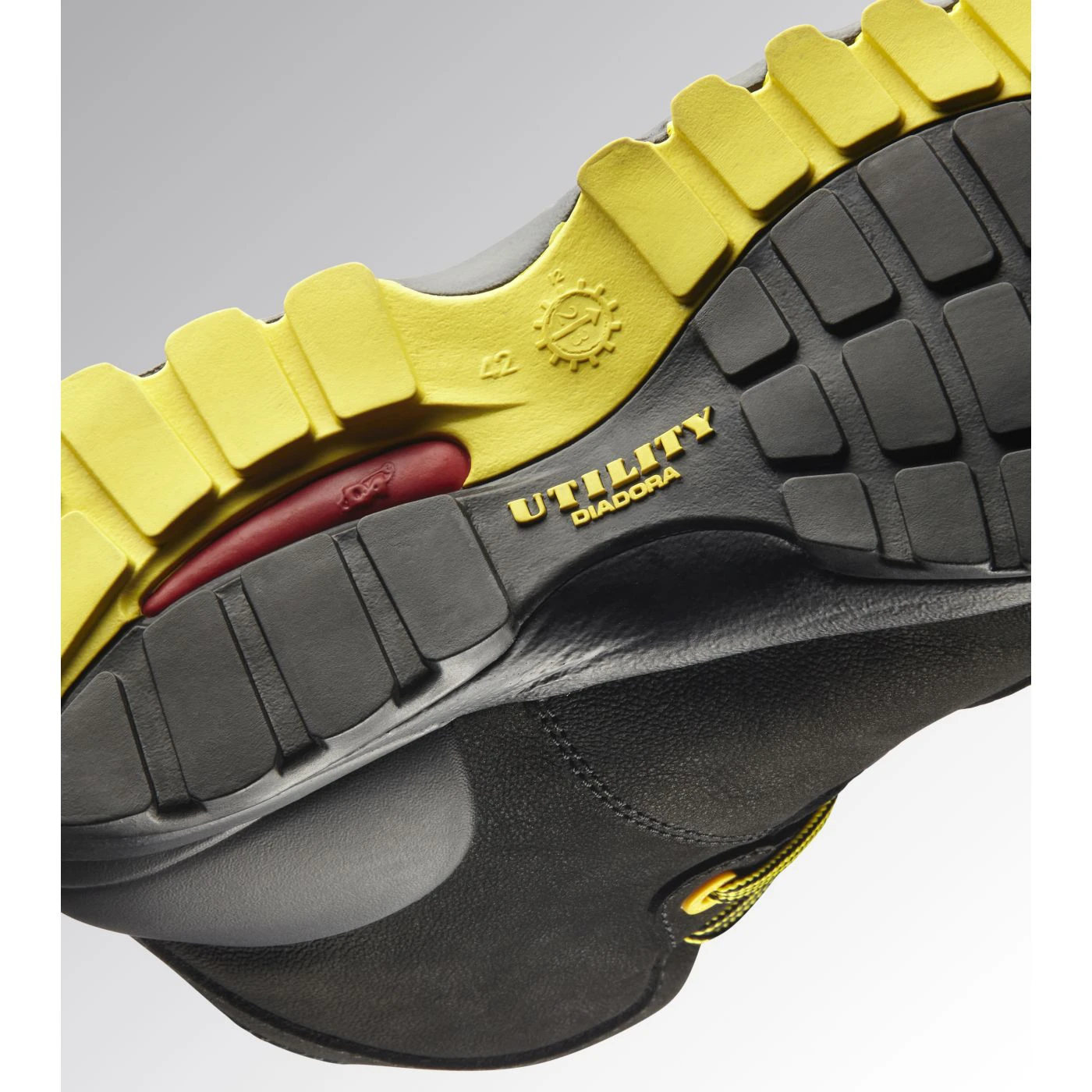 Water-repellent mid-cut S3S safety shoes in cowhide nubuck. Ergonomic TPU heel support. 200J aluminium toe cap. Anti-puncture K-SOLE insert. Width 11. DA² technology. Two-tone Air Mesh lining. Removable latex and activated carbon footbed and EVA heel cup.
