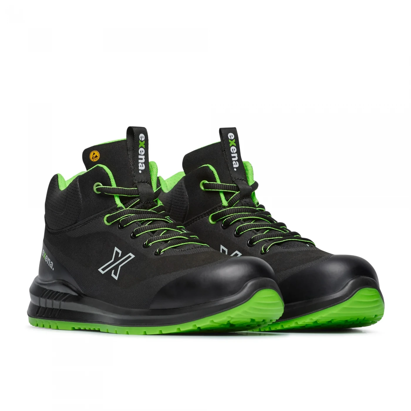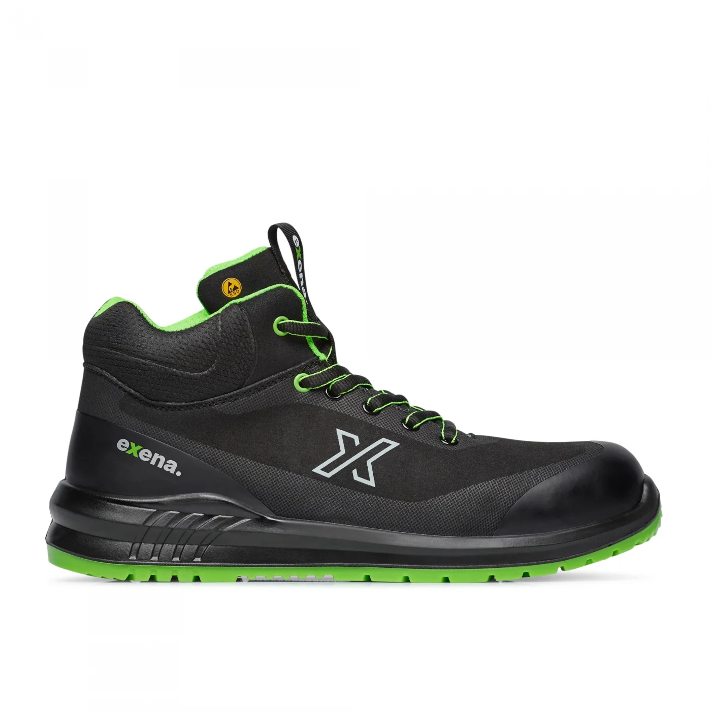 Bocancii de protecție Exena Draco S3 S FO SR ESD sunt fabricați din micronubuck cu peliculă rezistentă la abraziune și vin echipați cu bombeu din fibra de sticla și lamelă antiperforație nemetalică. Căptușeala textilă și rezistentă la abraziune asigură confort și respirabilitate pe parcursul întregii zile, iar branțul Rebound oferă amortizare optimă. Talpa din poliuretan de dublă densitate este antiderapantă și antistatică, iar sistemul de închidere prin perforații și capse nemetalice garantează o fixare sigură. Datorită tratamentului ESD, Exena Draco protejează echipamentele electronice, fiind ideali pentru logistică, instalații, electronică și automotive.
