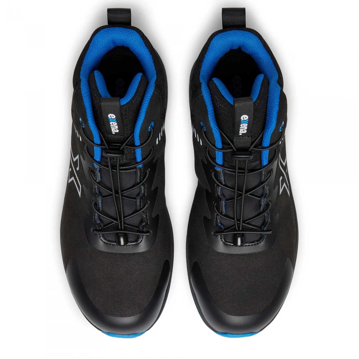 Bocancii de protecție Exena Faster S3 S FO SR ESD sunt fabricați din microfibră respirabilă cu peliculă rezistentă la abraziune și vin echipați cu bombeu din aluminiu (200J) și lamelă antiperforație nemetalică. Căptușeala textilă și rezistentă la abraziune asigură confort și respirabilitate pe parcursul întregii zile, iar branțul Rebound oferă amortizare optimă. Talpa EVA + cauciuc este antiderapantă și flexibilă, iar sistemul de închidere prin perforații și capse nemetalice garantează o fixare sigură. Datorită tratamentului ESD, Exena Faster protejează echipamentele electronice, fiind ideali pentru logistică, instalații, electronică și automotive.