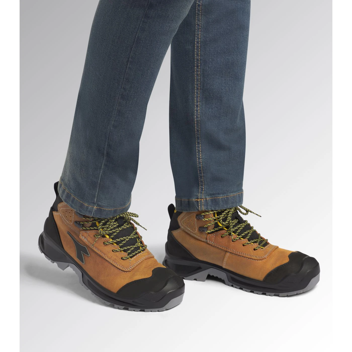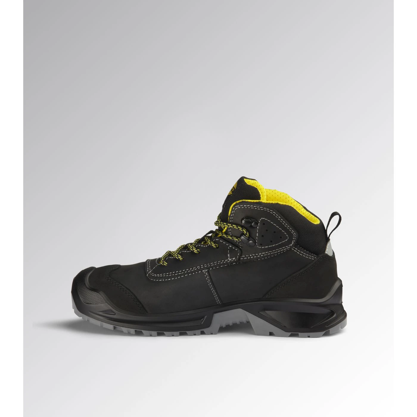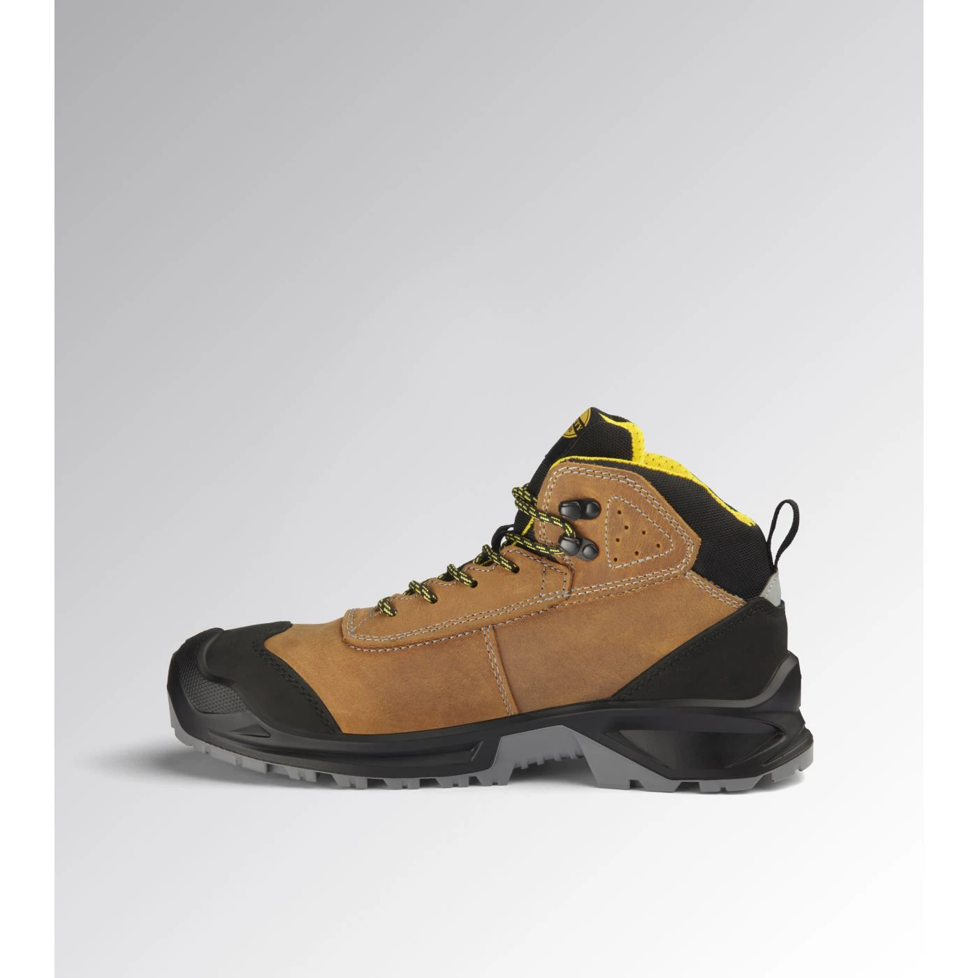 Calzatura di sicurezza mid-cut S3 idrorepellente in pelle bovina pull-up nubuck. Puntale in acciaio 200J. Calzata 11. Inserto antiperforazione K-SOLE. Fodera in Air Mesh. Plantare estraibile microforato in PU espanso a celle aperte, traspirante con carboni attivi.