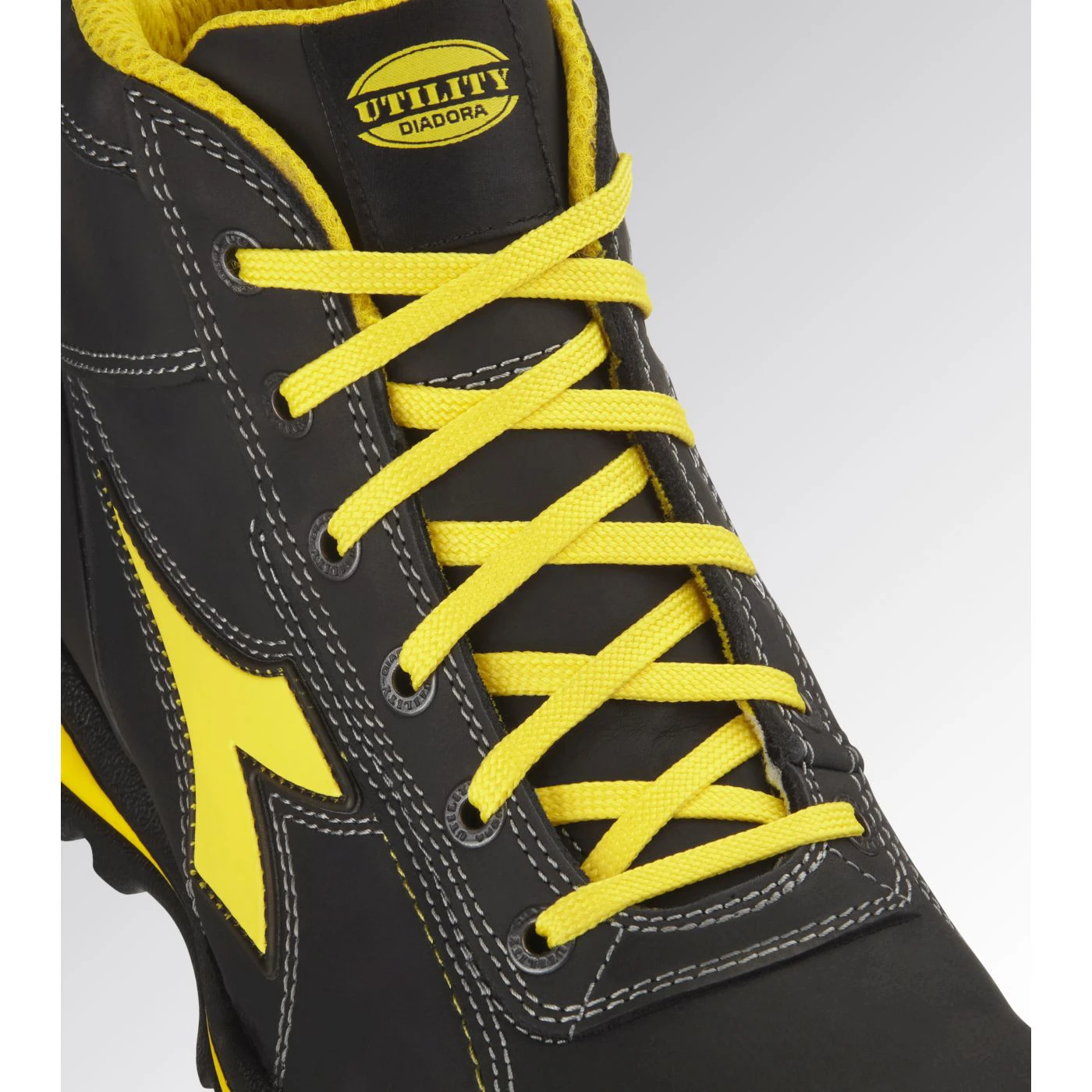 Water-repellent mid-cut S3S safety shoes in cowhide nubuck. Ergonomic TPU heel support. 200J aluminium toe cap. Anti-puncture K-SOLE insert. Width 10. Air Mesh lining. Removable micro-perforated insole in open cell PU foam that is breathable thanks to activated carbon.