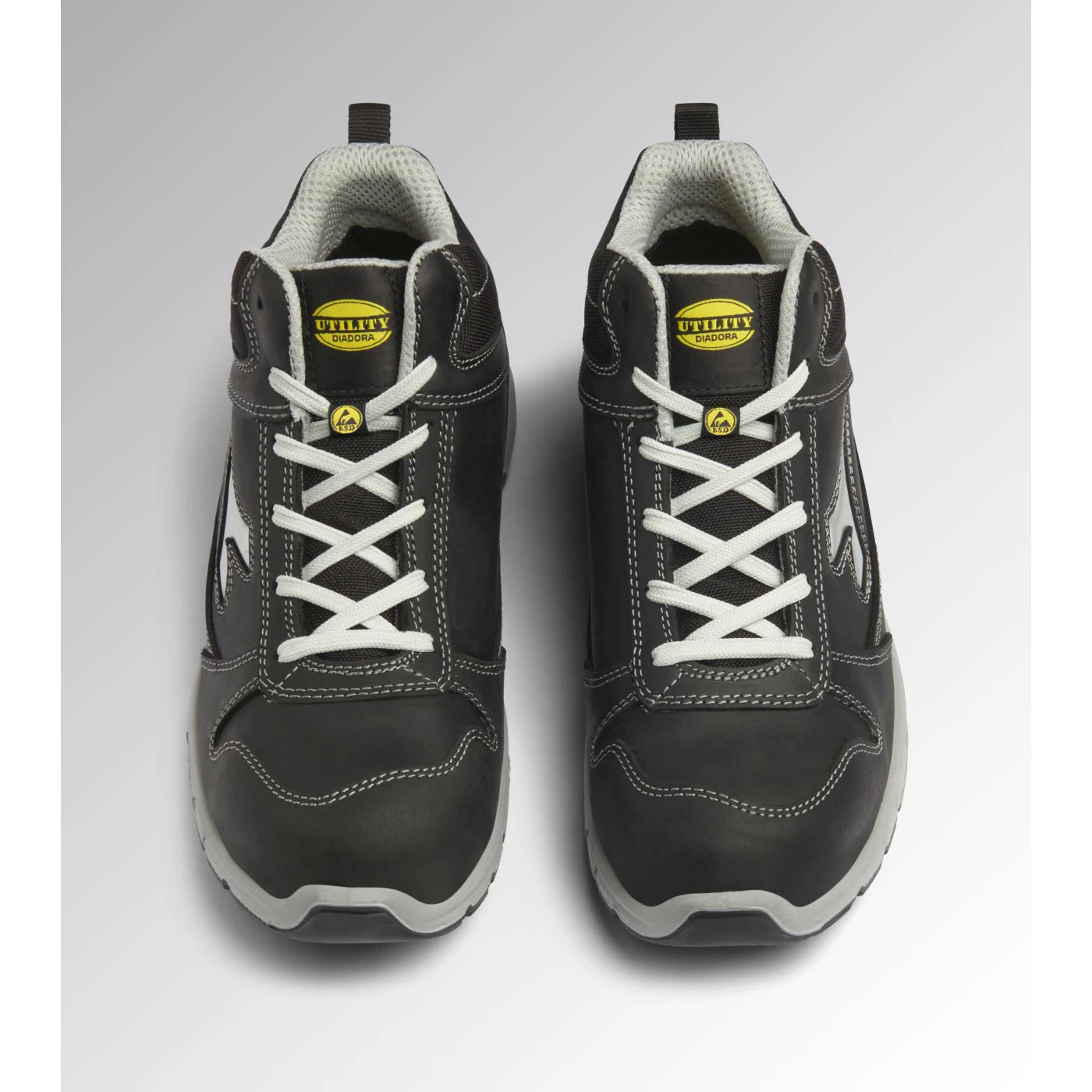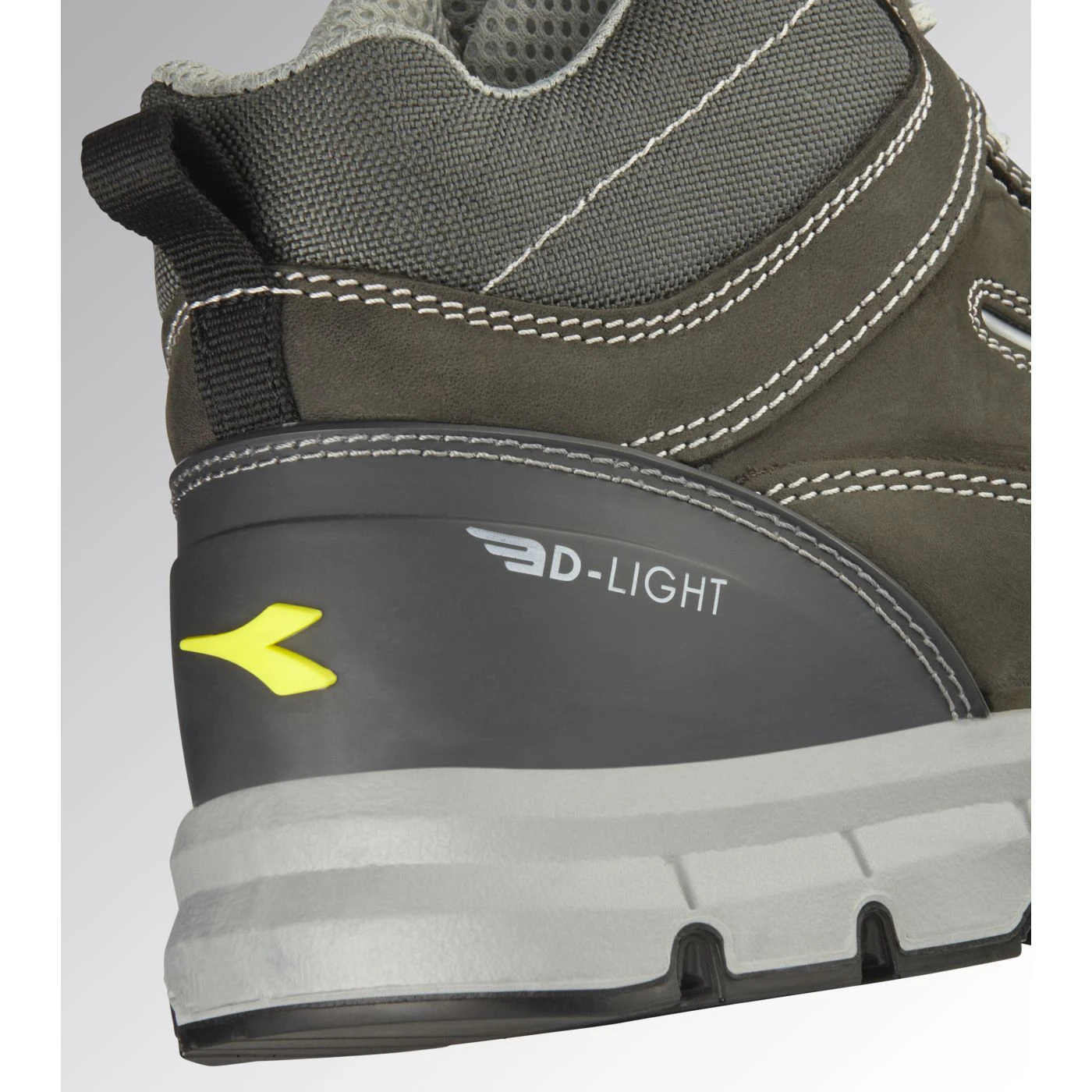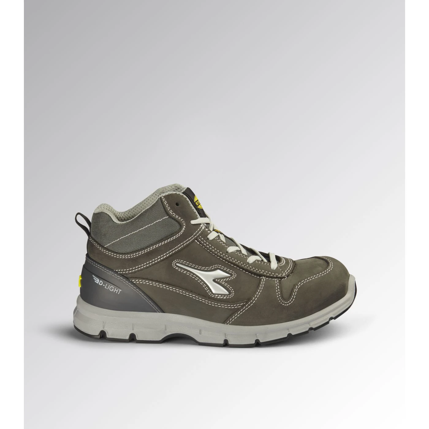 Water-repellent mid-cut S3S safety shoes in cowhide nubuck pull-up leather. Ergonomic TPU heel support. 200J steel toe cap. Anti-puncture K-SOLE insert. Width 10. D-Light technology. Air Mesh lining. Removable ergonomic antistatic insole in recycled open cell PU foam that is breathable thanks to activated carbon. ESD.