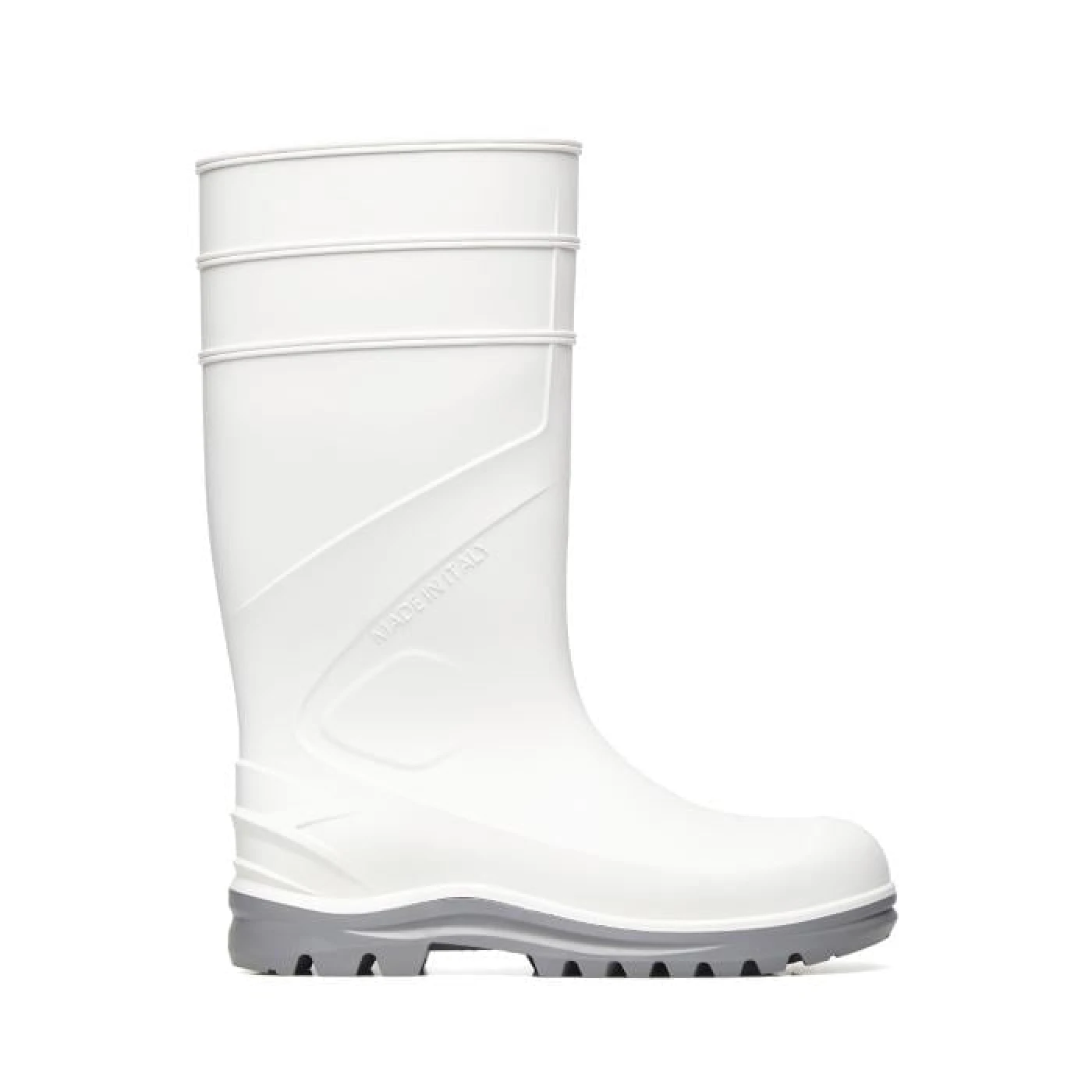 Cizme albe de protectie S4 SRC cu bombeu metalic, fabricate dintr-un amestec inovativ de PVC de inaltă calitate și 8% cauciuc nitrilic. Datorită acestui amestec cizmele NITRO sunt mai ușoare, mai flexibile și mai rezistente decăt cizmele clasice din PVC. Căptușeala din poliester asigură o foarte bună izolație termică și confort interior. Talpa este injectata, dintr-un amestec de PVC de inaltă calitate și 8% cauciuc nitrilic, rezistenta la uleiuri, hidrocarburi, grasimi animale, detergenți și substanțe chimice. Datorita calapodului Mondopoint 12 cizmele asigura confort chiar si pentru persoanele cu nevoi speciale.