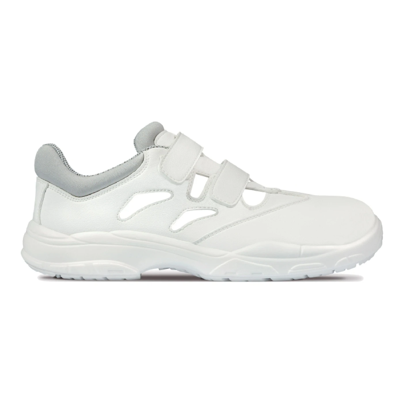 Sandale albe de protectie S1 SRC cu bombeu nemetalic din policarbonat si fete din microfibra respirabila. Captuseala din material textil rezistent la abraziune si acoperisul de brant X-dry asigura confortul si aerisirea piciorului. Talpa este injectata, din poliuretan monodensitate.