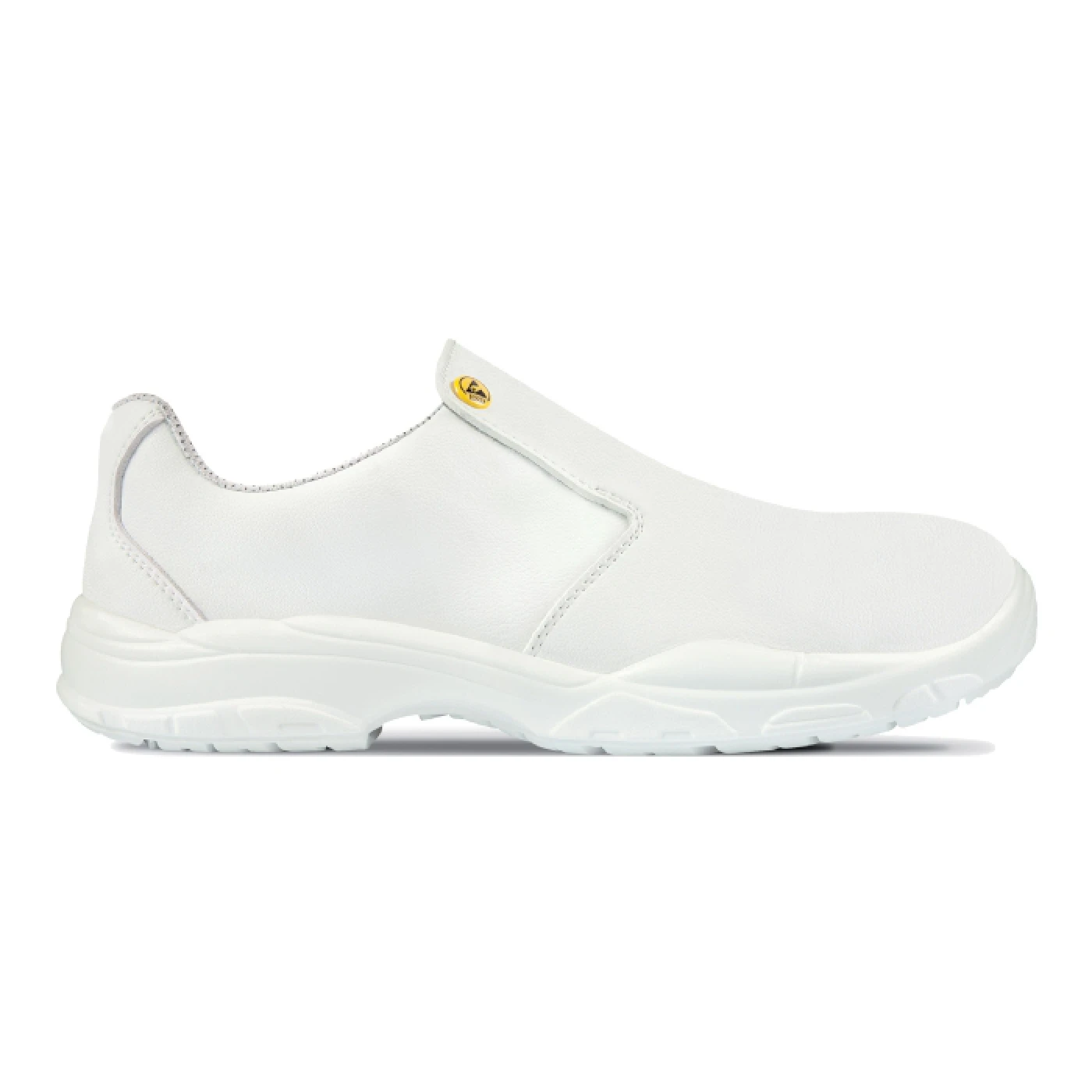 Pantofi albi de protectie S1 ESD SRC din microfibra respirabila si cu bombeu nemetalic din policarbonat. Asigura un confort ridicat datorita brantului X-dry cu formă \nanatomică ‘antişoc’ cu suport din PE cu reţea de găuri si al captuselii din material textil perforat care permite aerisirea piciorului. Talpa este injectata, din poliuretan monodensitate, cu proprietati antistatice si antiderapante. Datorita tratamentului special aplicat asigura protectie impotriva descarcarilor electrostatice, protejand astfel componentele sensibile ale sistemelor electronice.