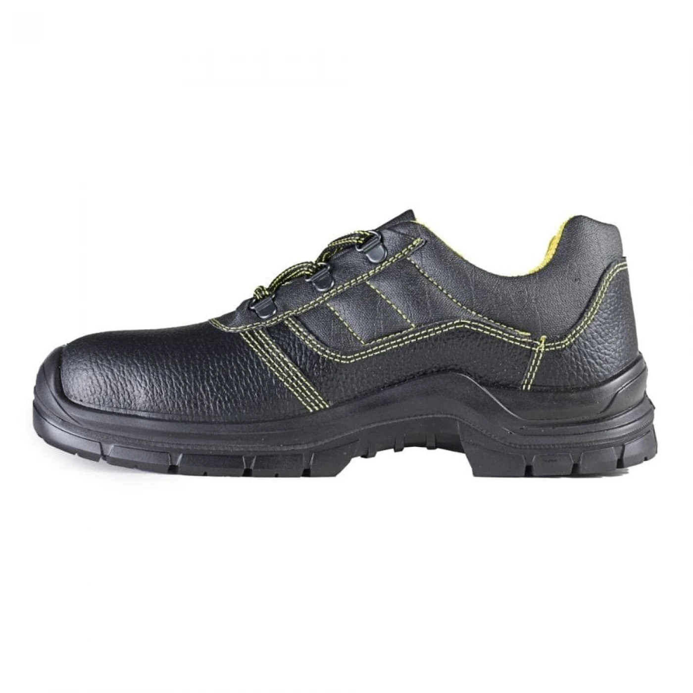 Pantofi de protectie S1 SRC din piele pigmentata de bovina si cu bombeu metalic din otel inoxidabil. Confortul interior este asigurat de brantul din tesut de poliester, detasabil, antistatic, cu forma anatomica si captuseala din material textil perforat, rezistent la abraziune, care permite aerisirea piciorului. Talpa este injectata, din poliuretan mono densitate, cu proprietati antistatice si antiderapante, cu protectie in zona anterioara.