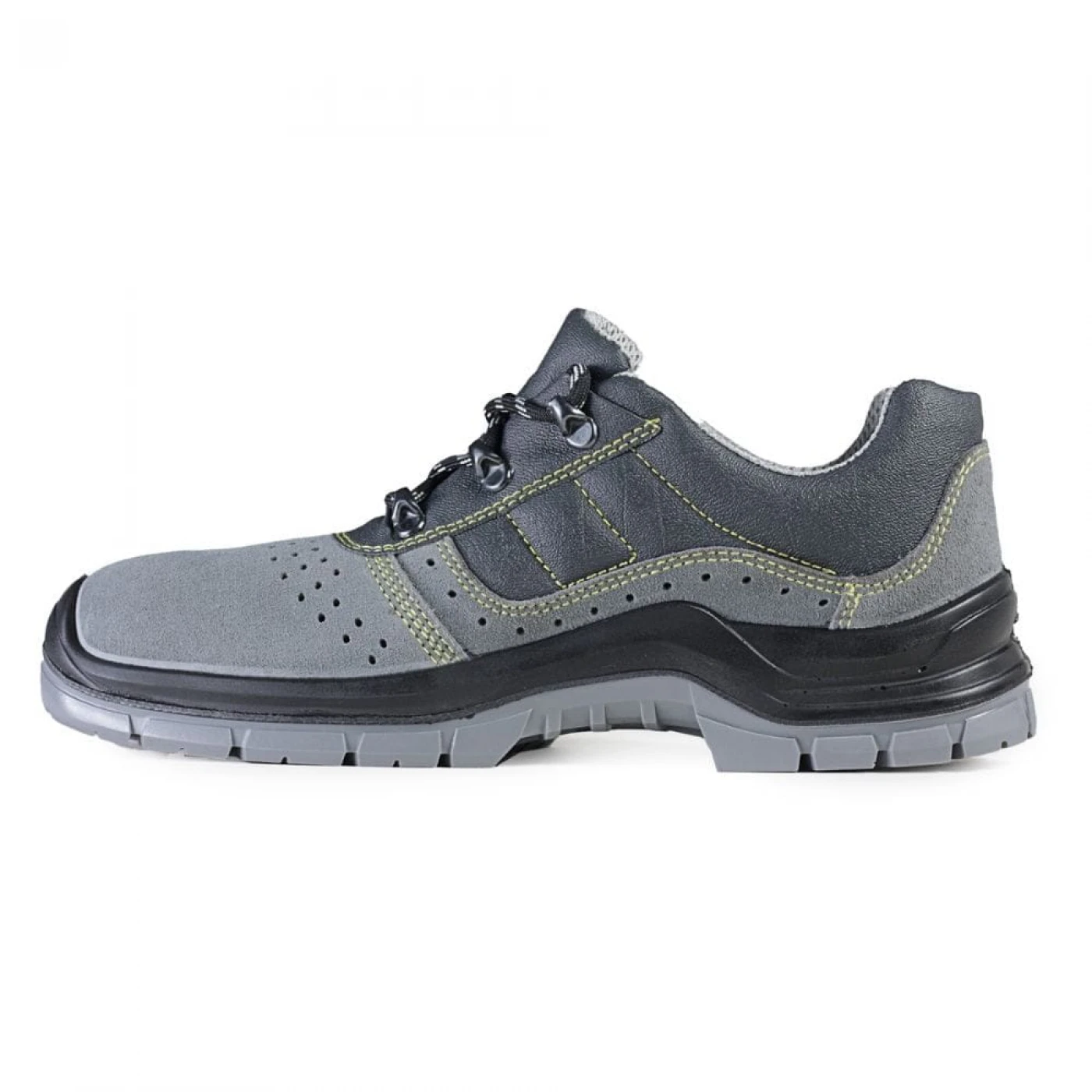 Pantofi de protectie S1P SRC din spalt (piele intoarsa), cu bombeu metalic si lamela antiperforatie din otel inoxidabil. Confortul interior este asigurat de captuseala din material textil perforat si brantul C-dry prevazut cu perforatii. Talpa este injectata, din poliuretan dubla densitate, cu proprietati antistatice si antiderapante.