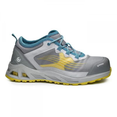Încălţăminte cu protecţie redusă şi aspect sport, cu bombeu din material compozit şi talpă intermediară anti-perforare din Kevlar. Talpă antiderapantă din cauciuc şi PU, rezistentă la grăsimi. Partea superioară din piele întoarsă şi din material textil care permite respirarea. Pernă de aer pentru absorbţia şocurilor în călcâi. Încălţăminte fără componente din metal.