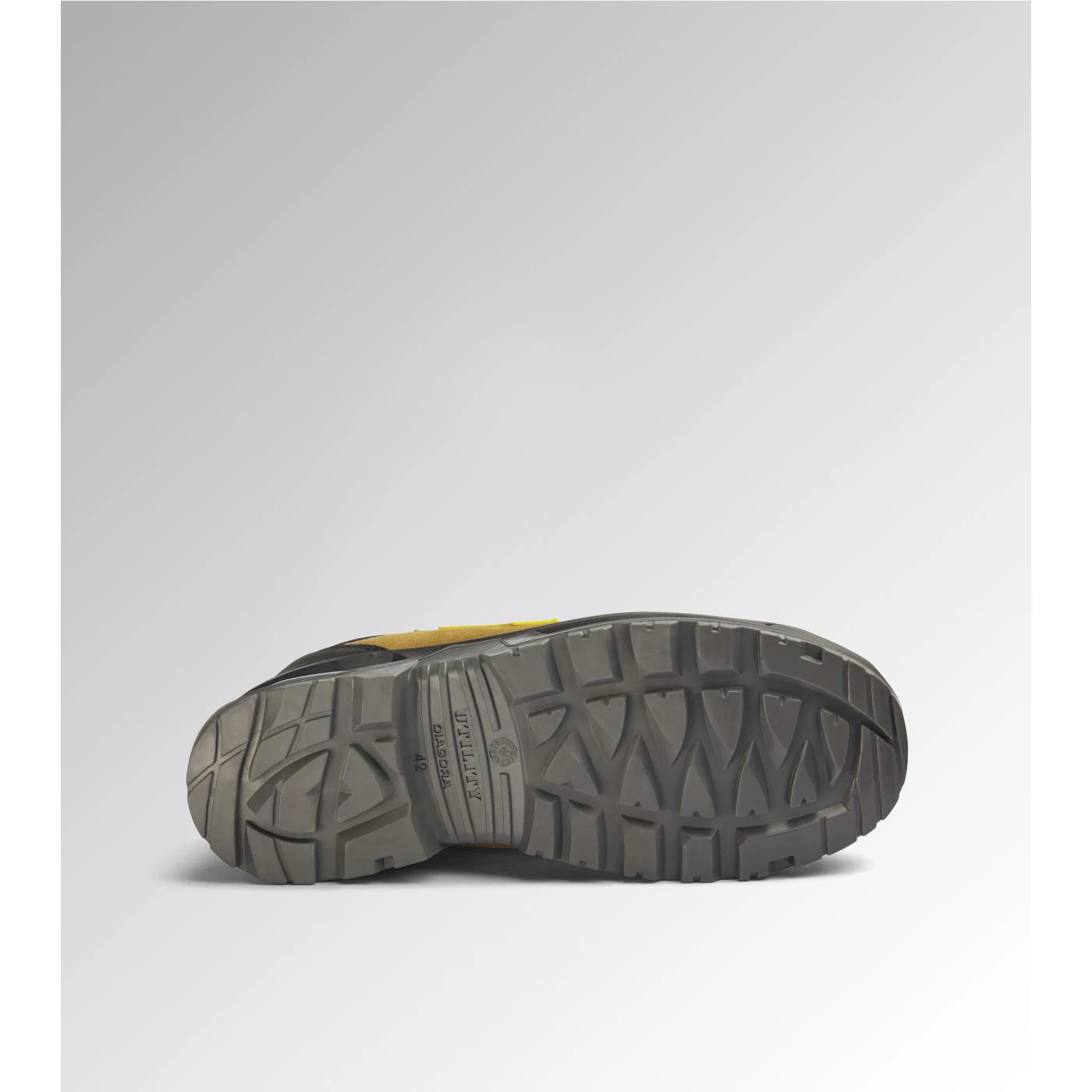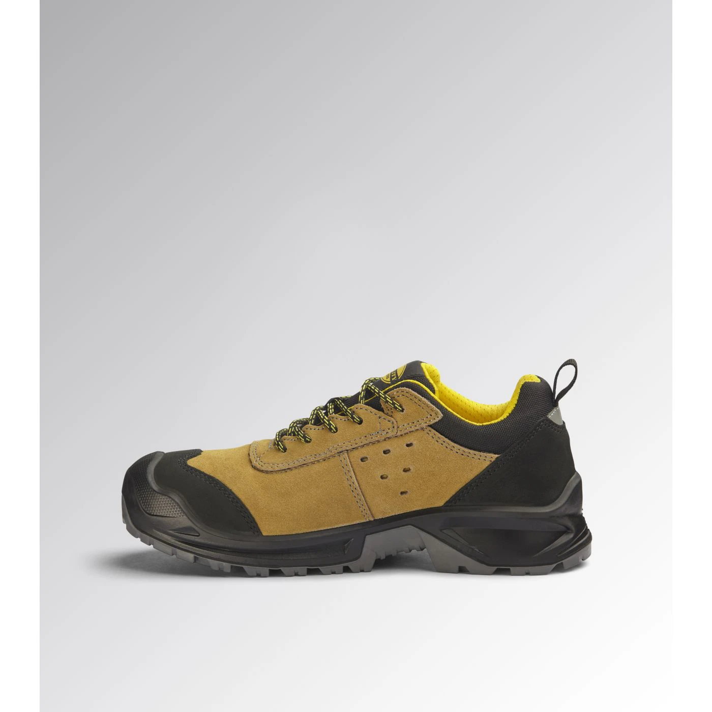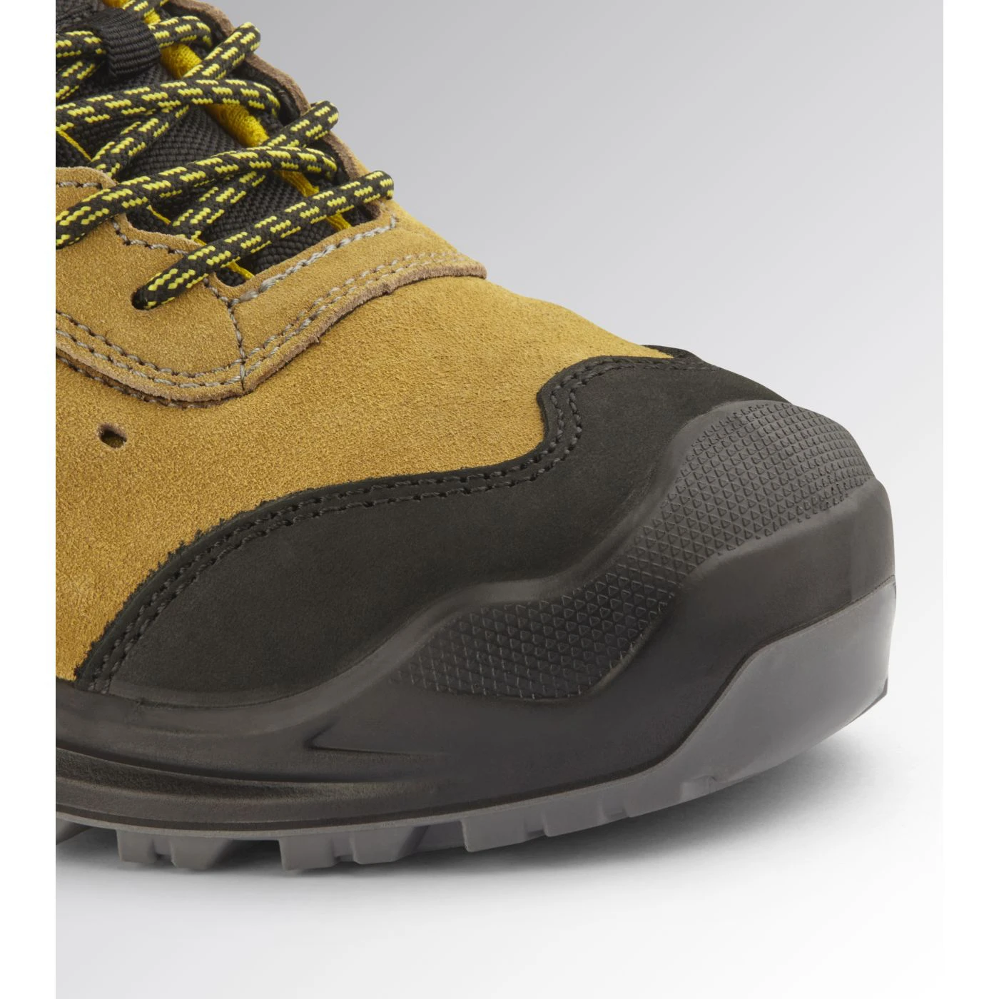 Low-cut S1P safety shoes in perforated cowhide suede. 200J steel toe cap. Width 11. Air Mesh lining. Anti-puncture K-SOLE insert. Removable micro-perforated insole in open-cell PU foam that is breathable thanks to activated carbon.