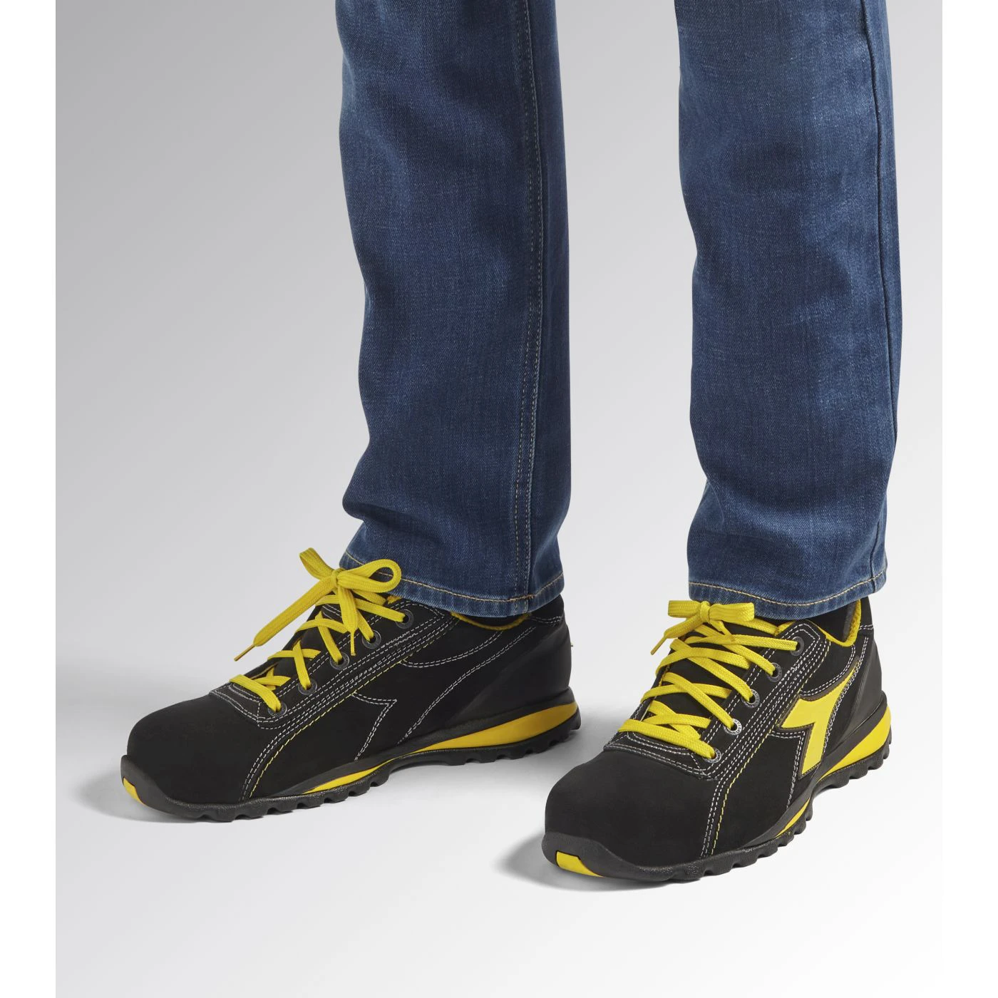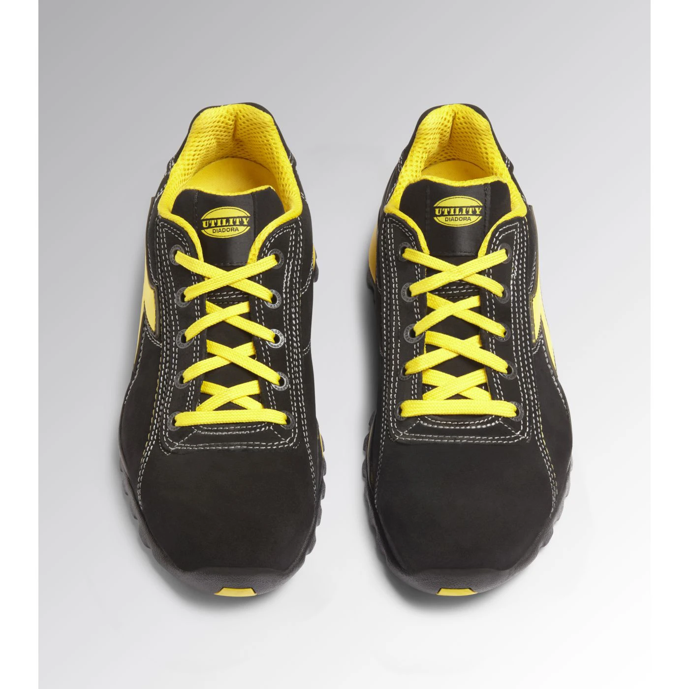 Low-cut S1PS safety shoes in cowhide suede. Ergonomic TPU heel support. 200J aluminium toe cap. Anti-puncture K-SOLE insert. Width 10. Air Mesh lining. Removable micro-perforated insole in open cell PU foam that is breathable thanks to activated carbon.