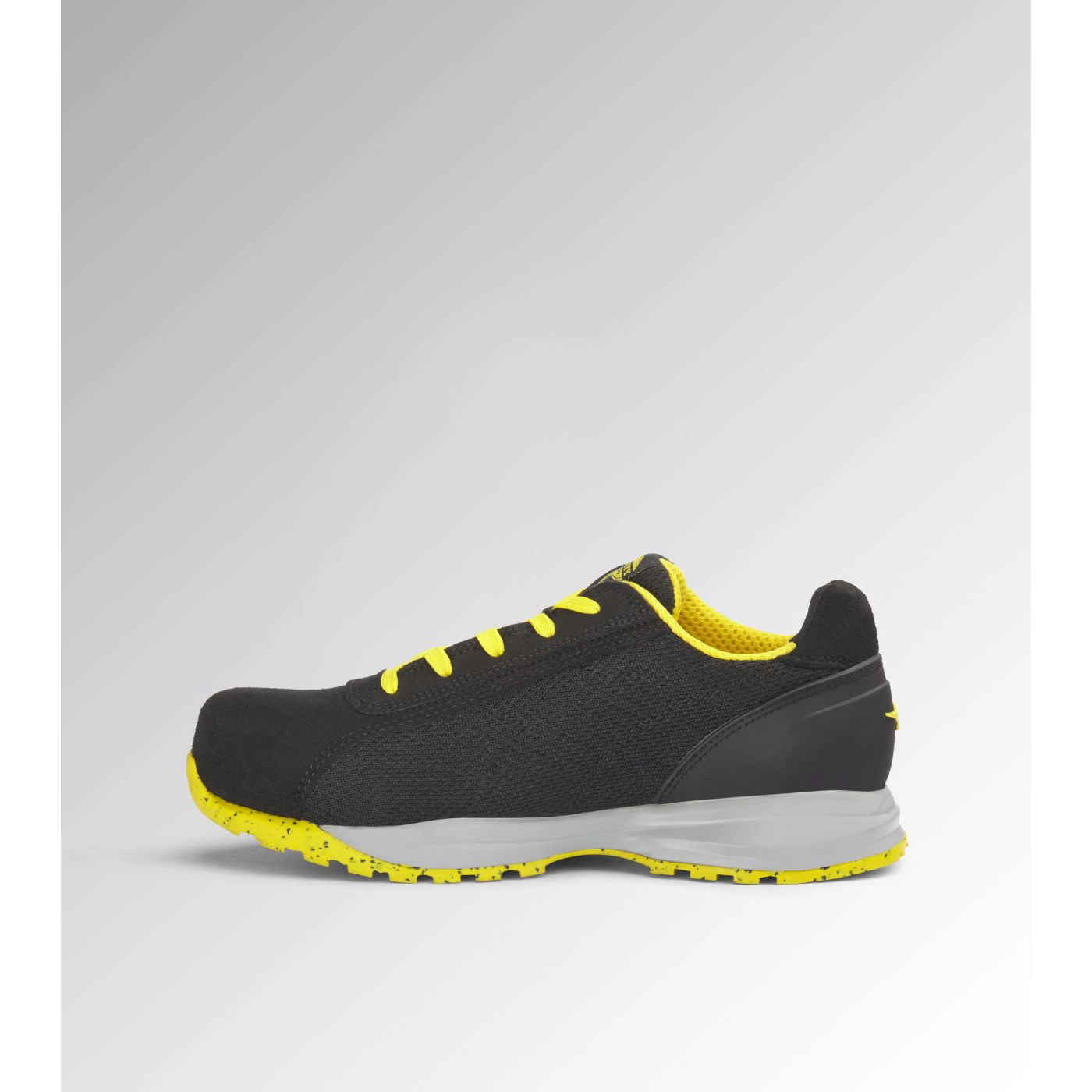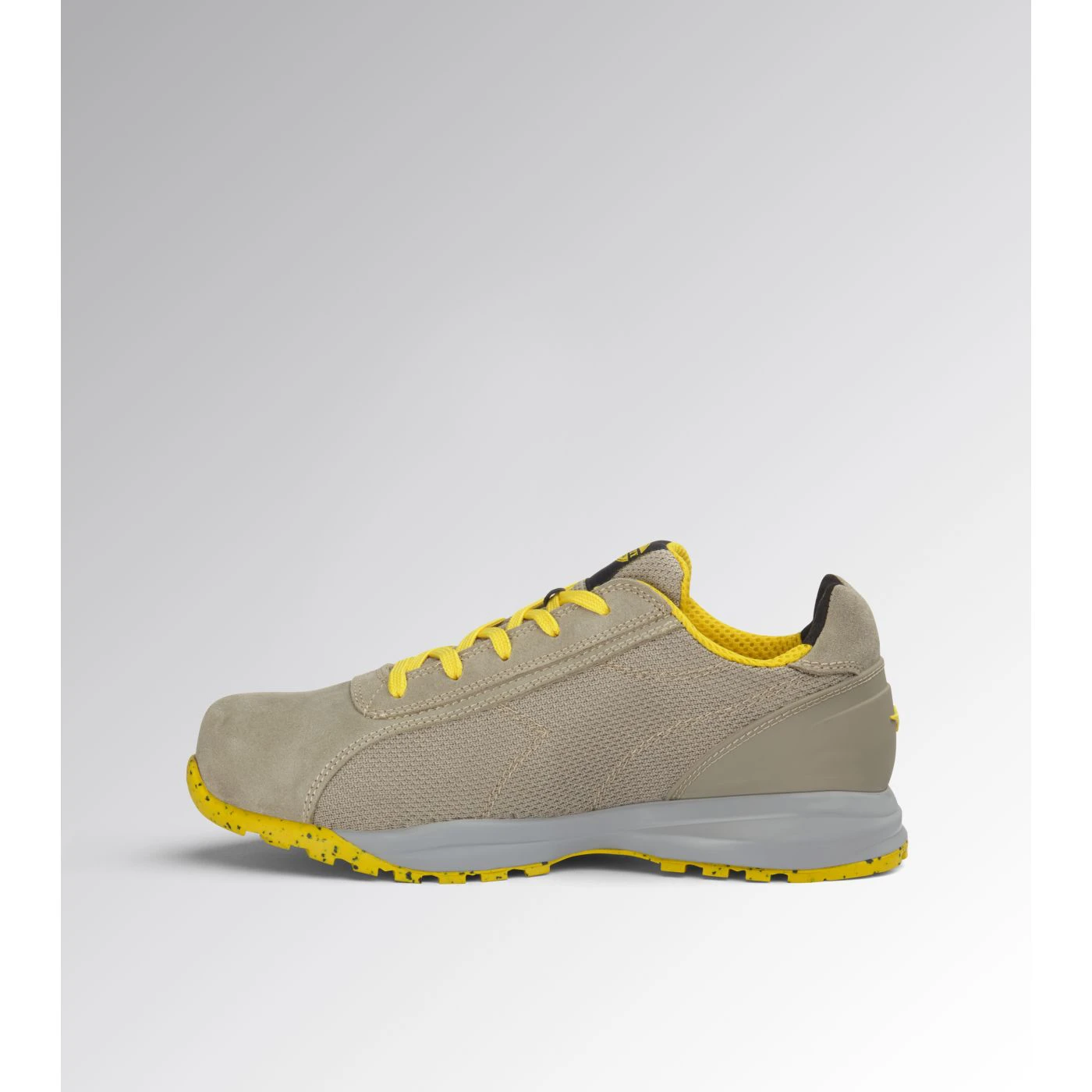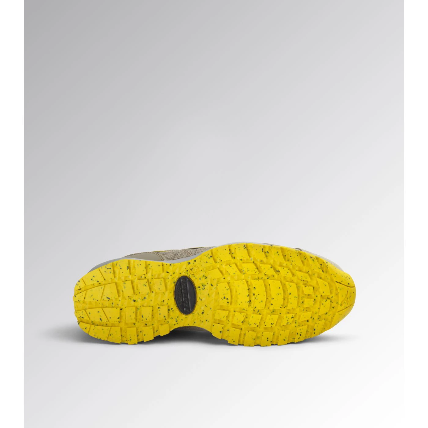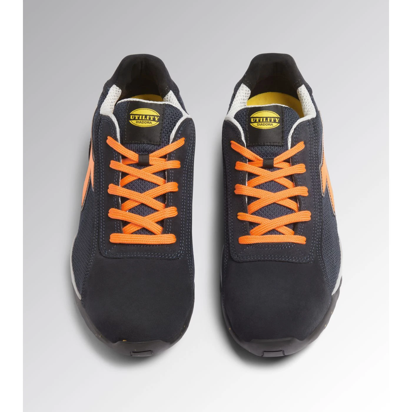 Low-cut S1PS safety shoes in cowhide suede and 100% recycled polyester fabric. Ergonomic TPU heel support. 200J aluminium toe cap. Anti-puncture K-SOLE insert. Width 11. Mass Damper System technology. Air mesh lining with a non-slip microfibre insert. Removable ergonomic insole in PU foam and activated carbon.