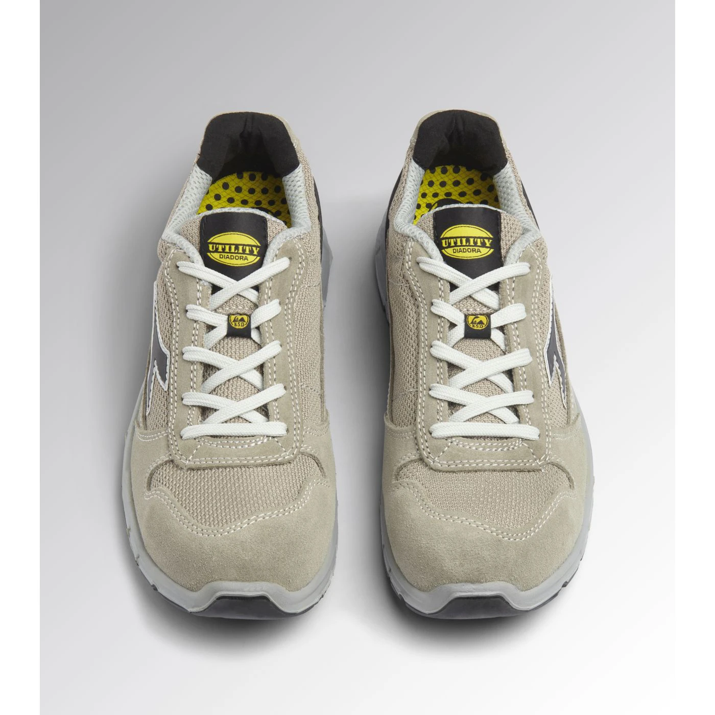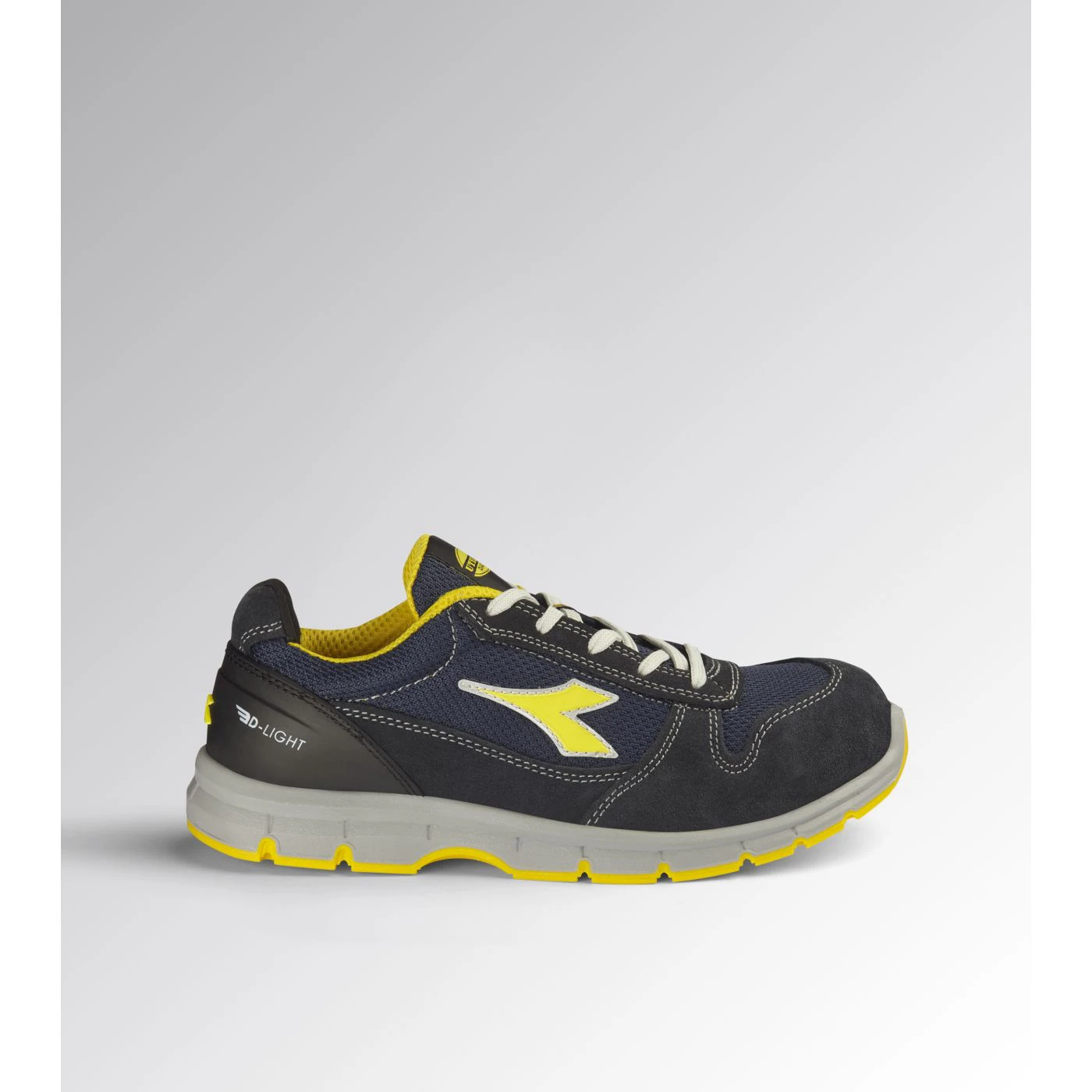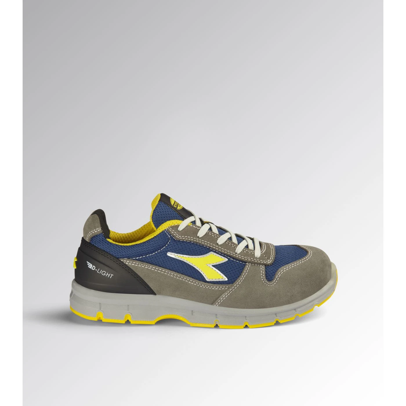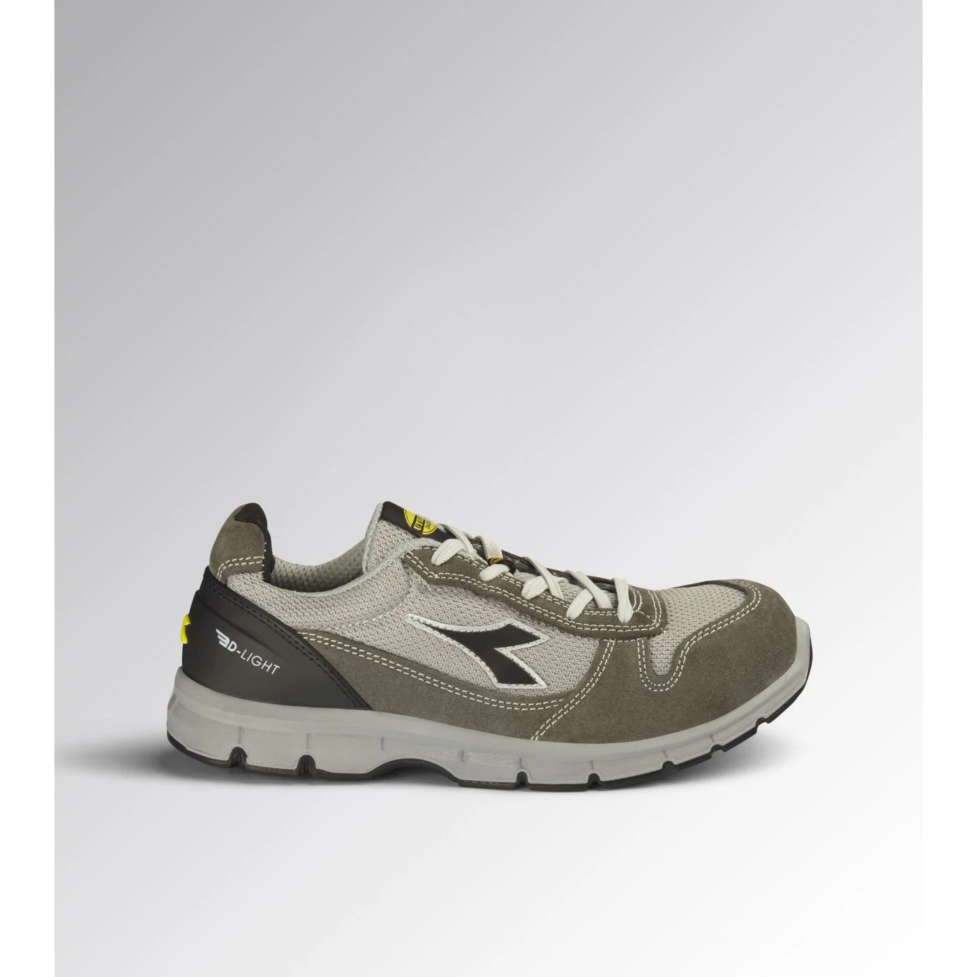 Low-cut S1PS safety shoes in cowhide suede and polyester fabric. Ergonomic TPU heel support. 200J steel toe cap. Anti-puncture K-SOLE insert. Width 10. D-Light technology. Air Mesh lining. Removable ergonomic antistatic insole in recycled open cell PU foam that is breathable thanks to activated carbon. ESD.
