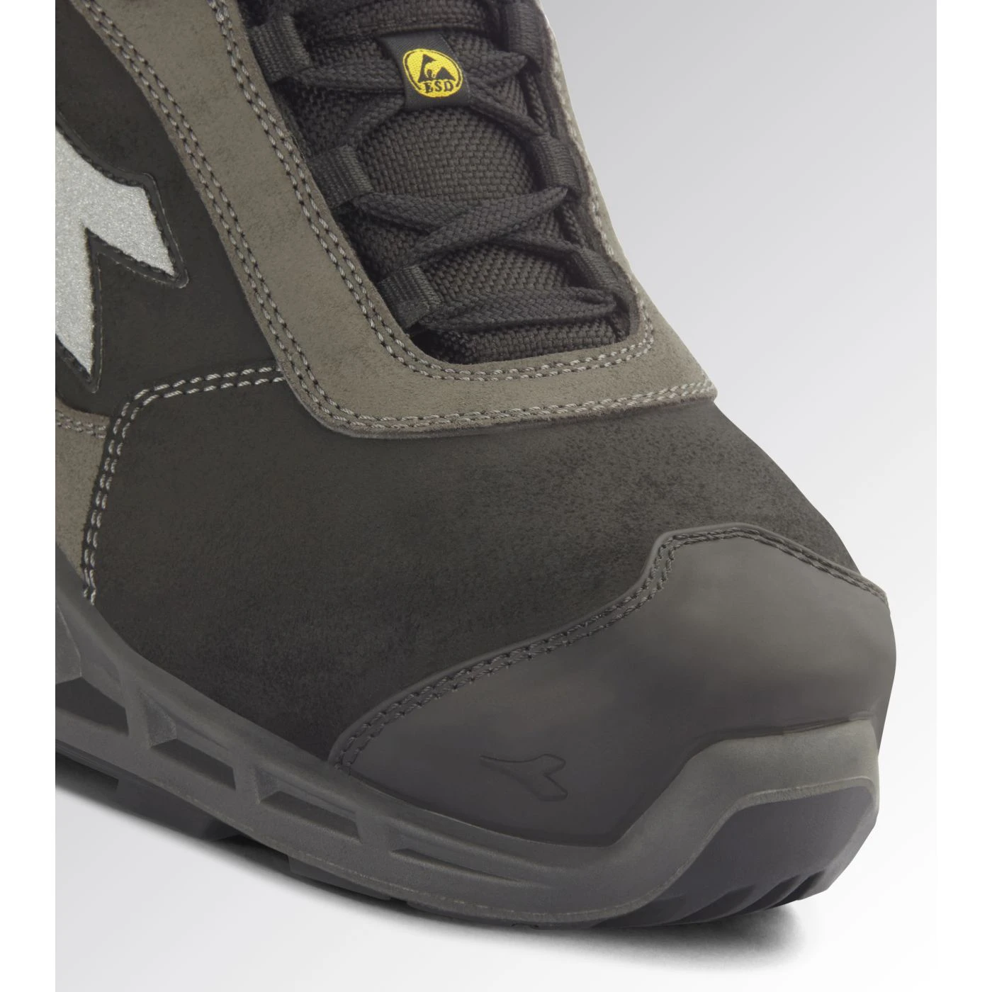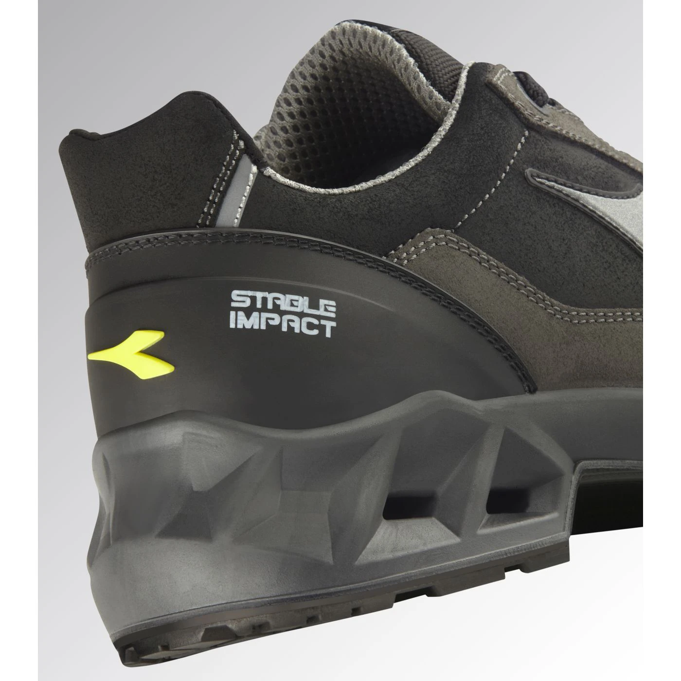 Water-repellent low-cut S3S safety shoes in cowhide suede. TPU toe cap and ergonomic heel support. 200J aluminium toe cap. Anti-puncture K-SOLE insert. Width 11. Stable Impact System cushioning technology. Air Mesh lining with a non-slip microfibre insert. Removable ergonomic antistatic insole in recycled open cell PU foam that is breathable thanks to activated carbon. ESD.