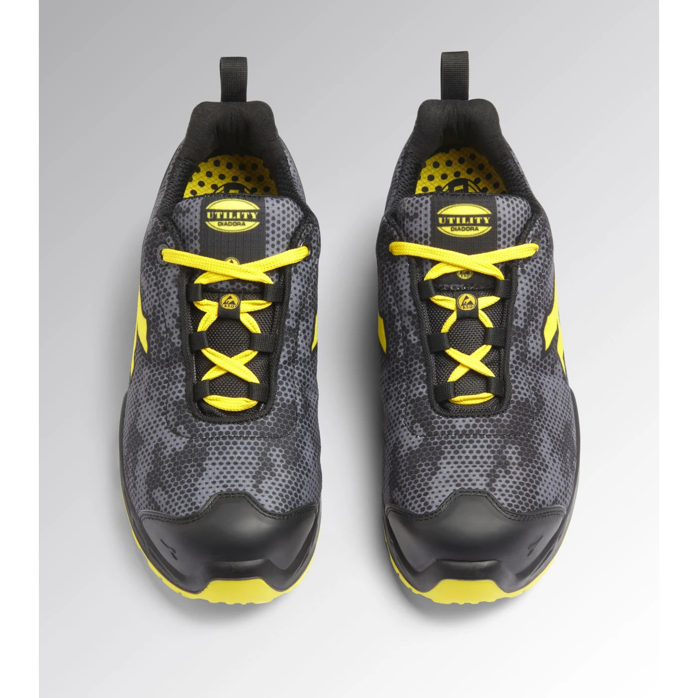 Water-repellent low-cut S3S safety shoes in technical polyester fabric. TPU toe cap and ergonomic heel support. 200J aluminium toe cap. Anti-puncture K-SOLE insert. Width 11. Stable Impact System cushioning technology. Air Mesh lining with a non-slip microfibre insert. Removable ergonomic antistatic insole in recycled open cell PU foam that is breathable thanks to activated carbon. ESD.