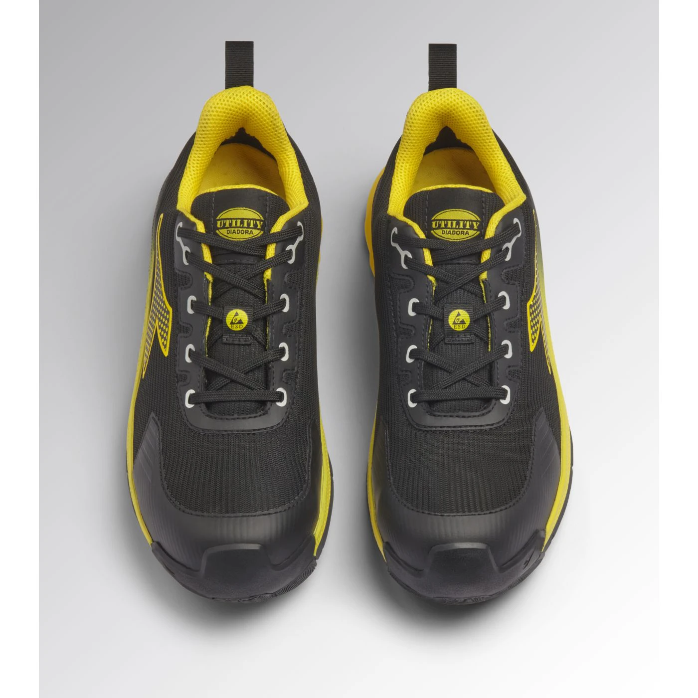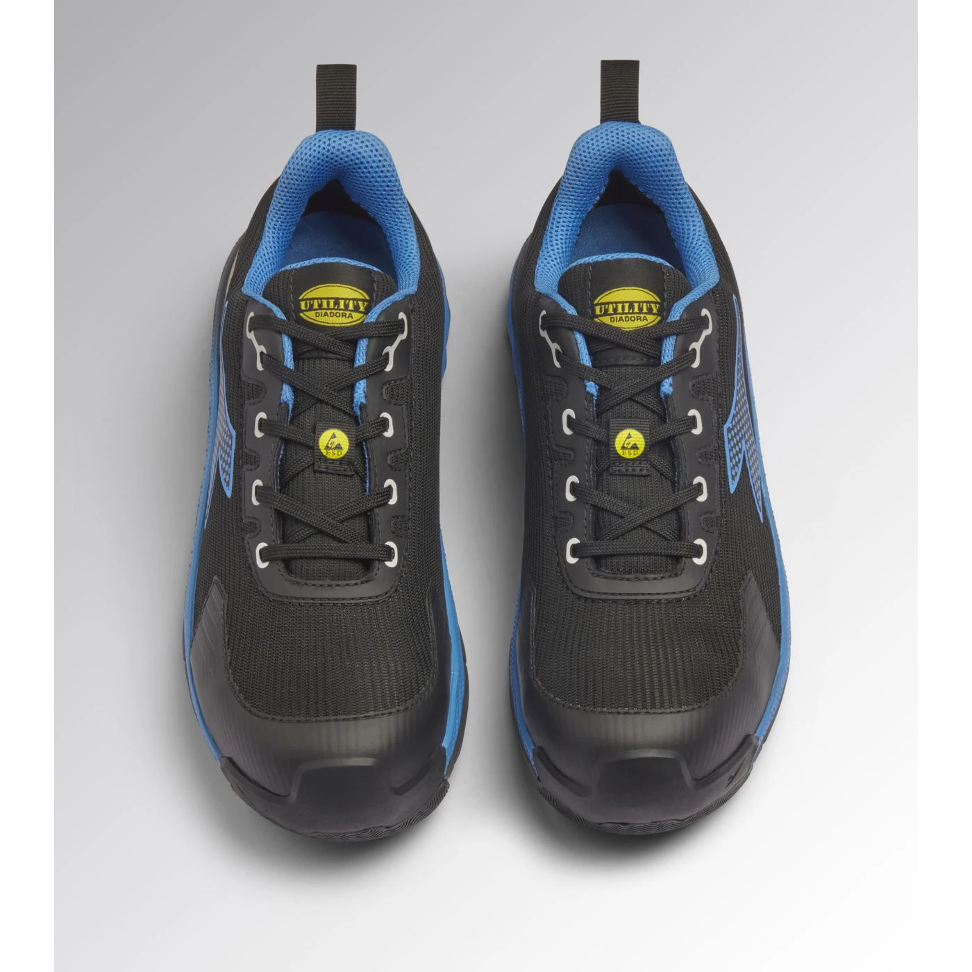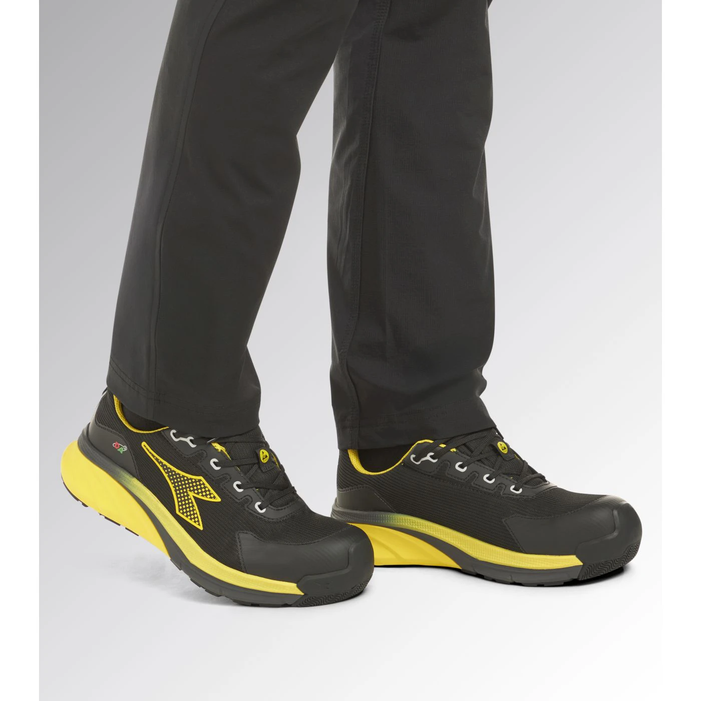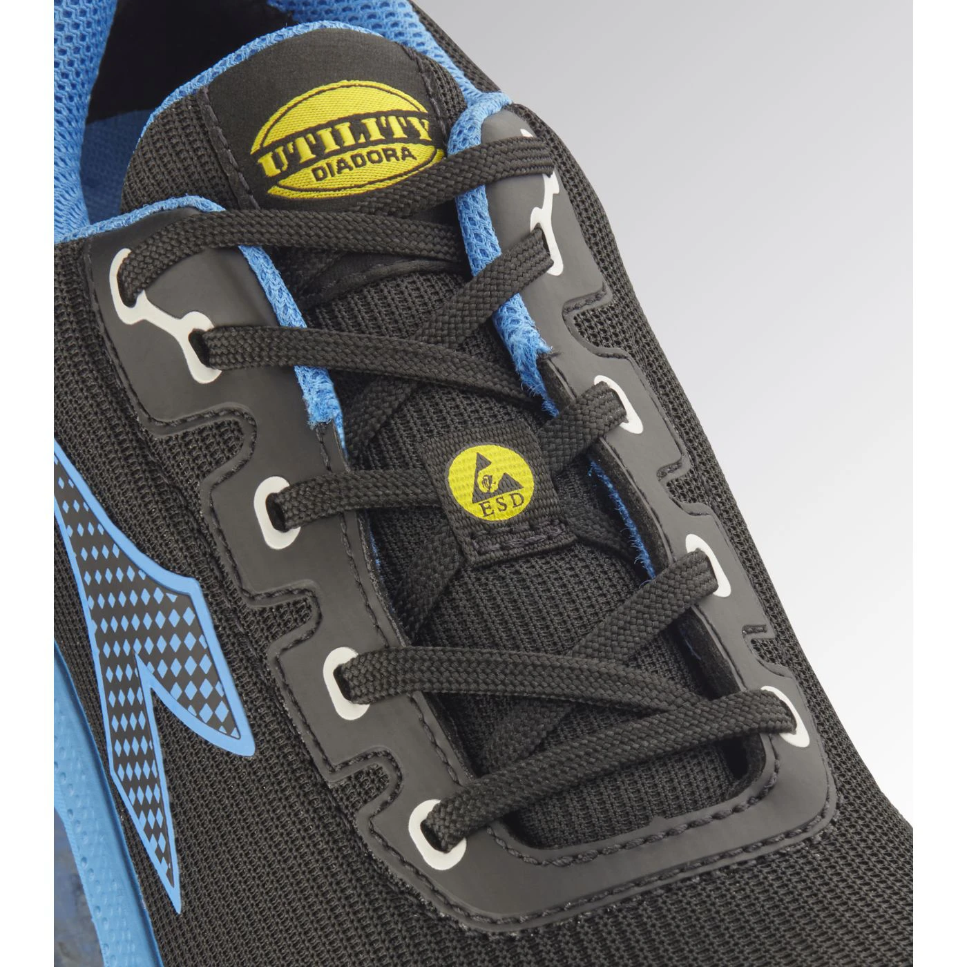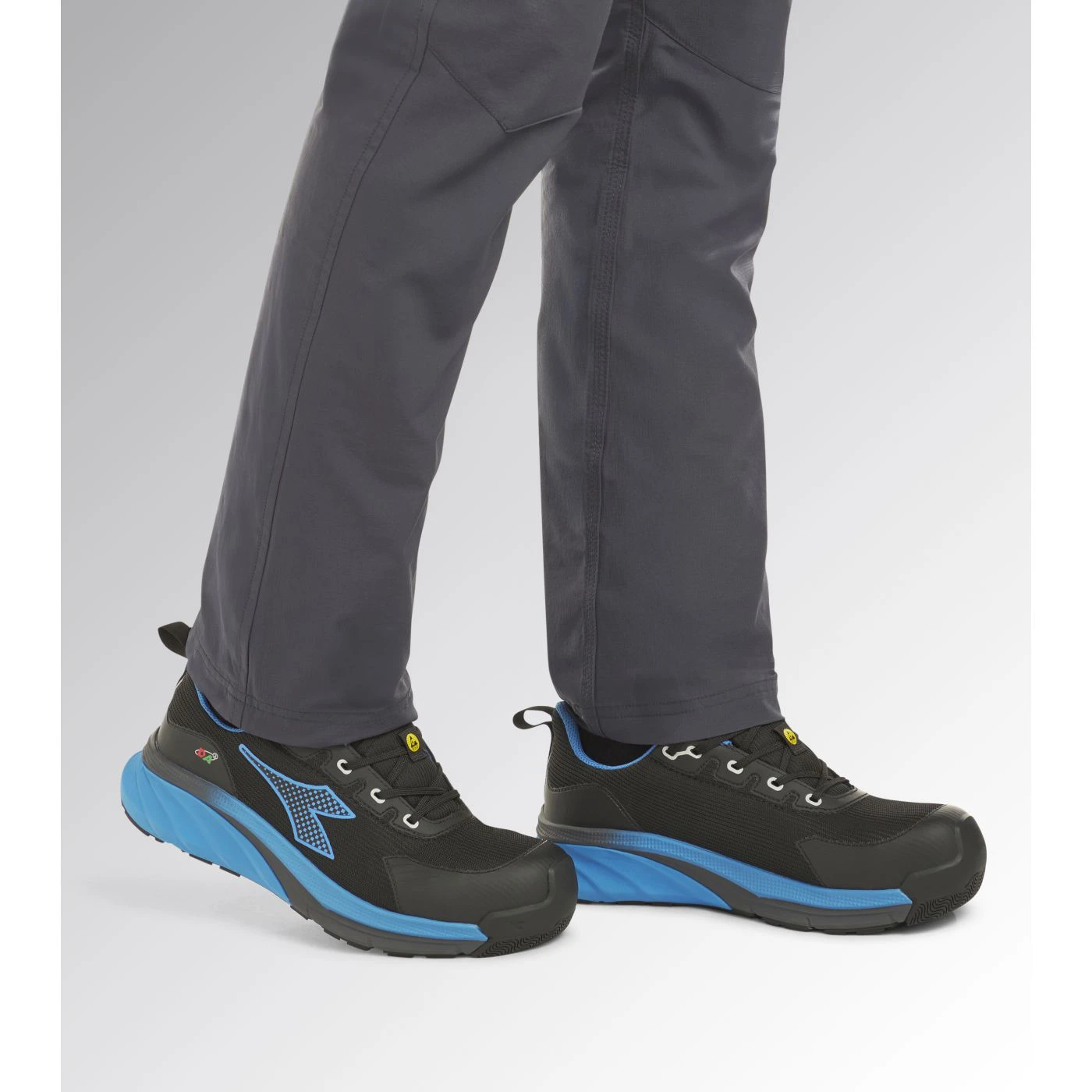 Water-repellent low-cut S3S safety shoes in technical polyester fabric. 200J aluminium toe cap. Anti-puncture K-SOLE insert. Width 11. Double Action cushioning technology on sole. Reinforced polyurethane toe and heel with 3D print technology. 3D honeycomb mesh lining with a non-slip microfibre insert. Removable ergonomic antistatic and micro-perforated insole in recycled open cell PU foam that is breathable thanks to activated carbon. ESD.