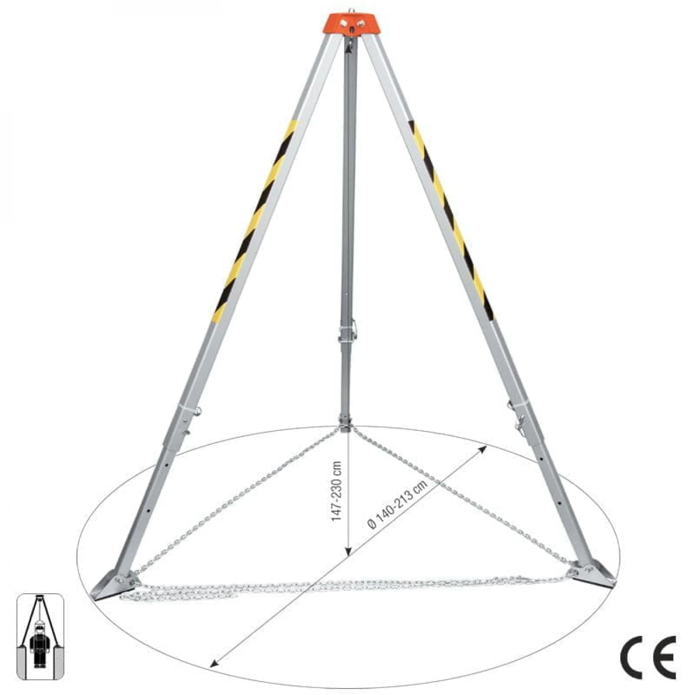 Trepied portabil de ancorare destinat operatiunilor de salvare si ridicare/coborare pe verticala. Este alcatuit din 3 picioare telescopice, reglabile, din aliaj de aluminiu, prevazute cu talpi pentru ancorare si orificii pentru fixarea lanturilor sau chingilor de legatura. Are o greutate de 14.30kg-cu chingi sau 17.30kg-cu lanturi. Diametrul cercului de ancorare: 140-213cm. Sarcina max. de lucru: 500kg. Inaltimea de lucru: 147-230cm. Dimensiunile pachetului de transport: 175x23x23 mm. Distanta dintre picioare: 119-182 cm