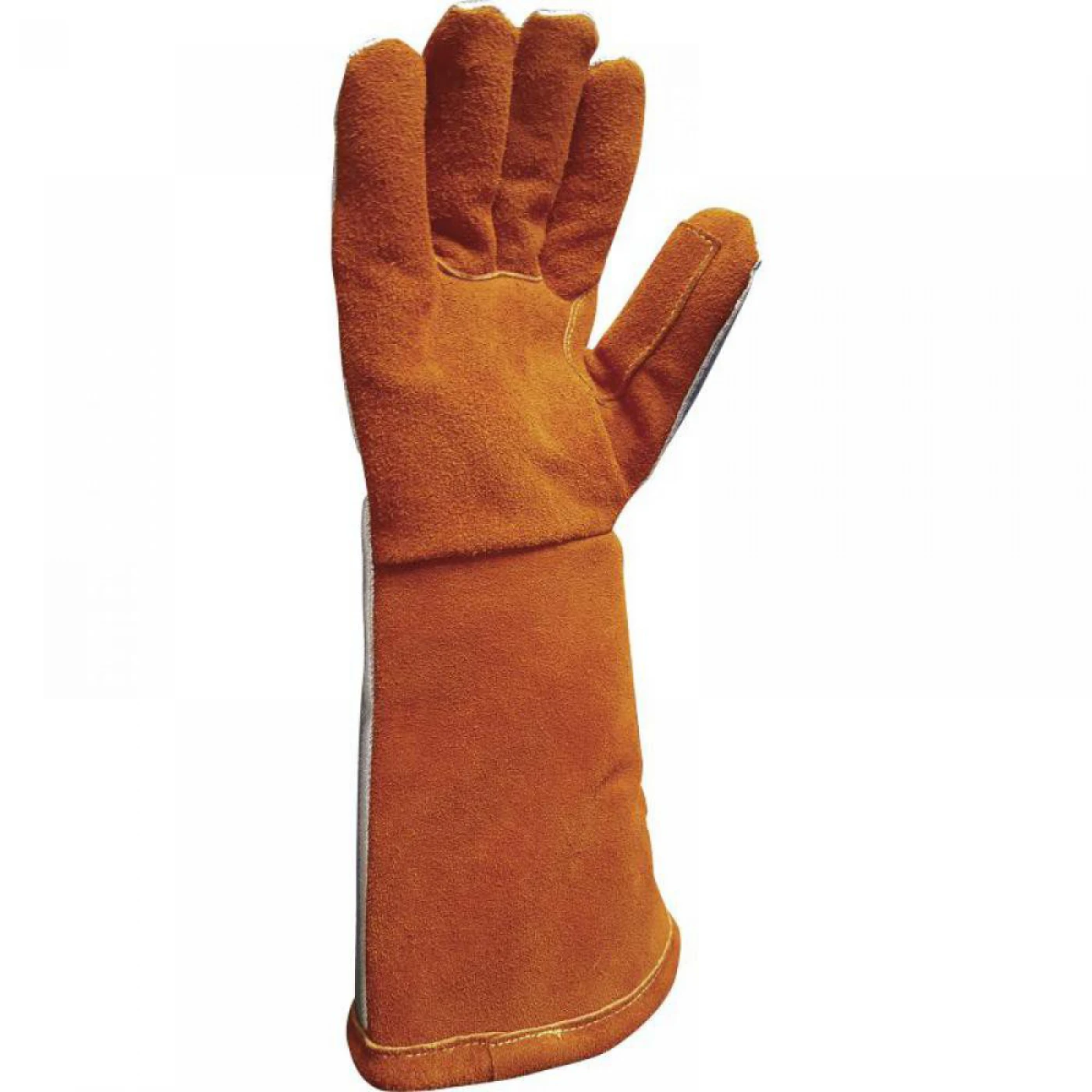 Heat-resistant cowhide split leather palm (HR). Aluminised Kevlar Preox® back. Wool fleece lining. Kevlar® Technology sewn. American assembly. 20 cm cuff. Length: 40 cm.