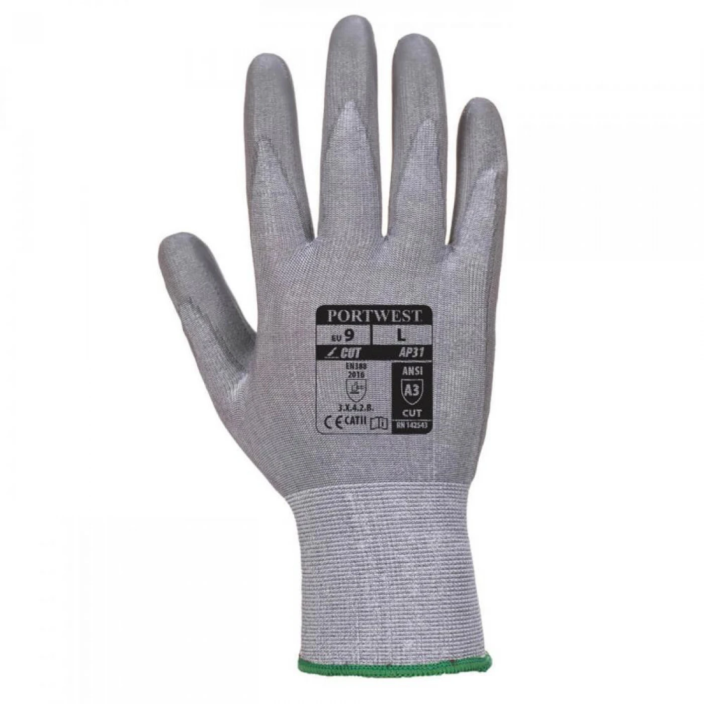 Aceste manusi cu rezistenta la taiere nivel 3 si finete tricotare 18 ofera dexteritate ca si "a doua piele". Impregnarea PU ofera aderenta si pastreaza mainile uscate in mediile de lucru umede si usor uleioase. Captuseala respirabila moale ofera rezistenta iar mansetele tricotate asigura adaptare perfecta.