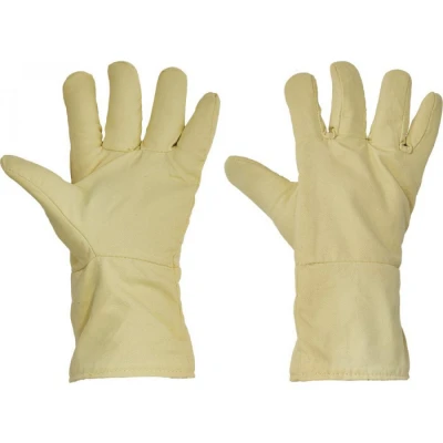 Mănuşi din trei straturi, material Aramid (320 g/m2), protecţie împotriva căldurii de contact de până la 250 °C, (500 °C pentru scurt timp).