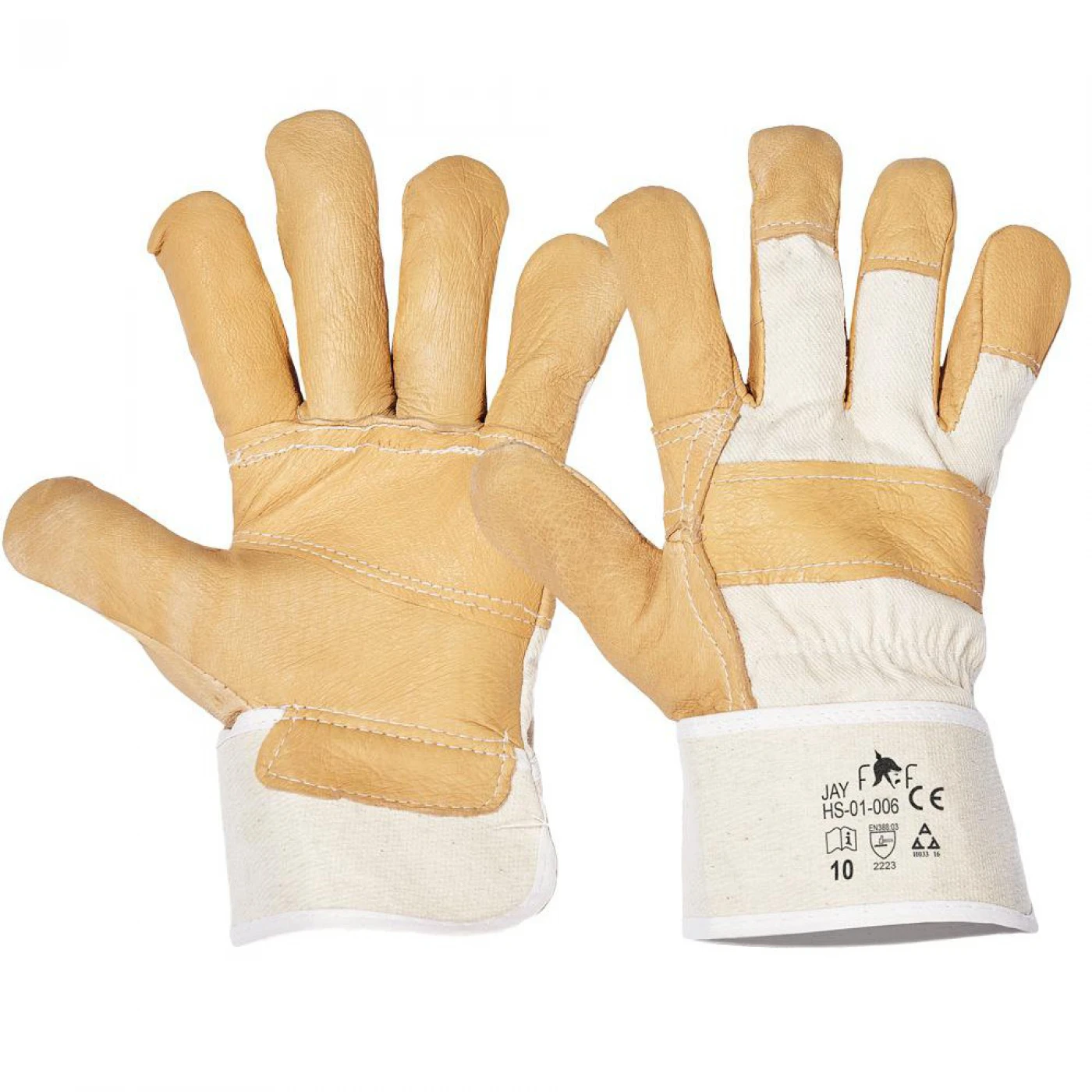 Mănuși cu palme din piele de porc cu întăritură, dosul palmei și manșete din material textil.