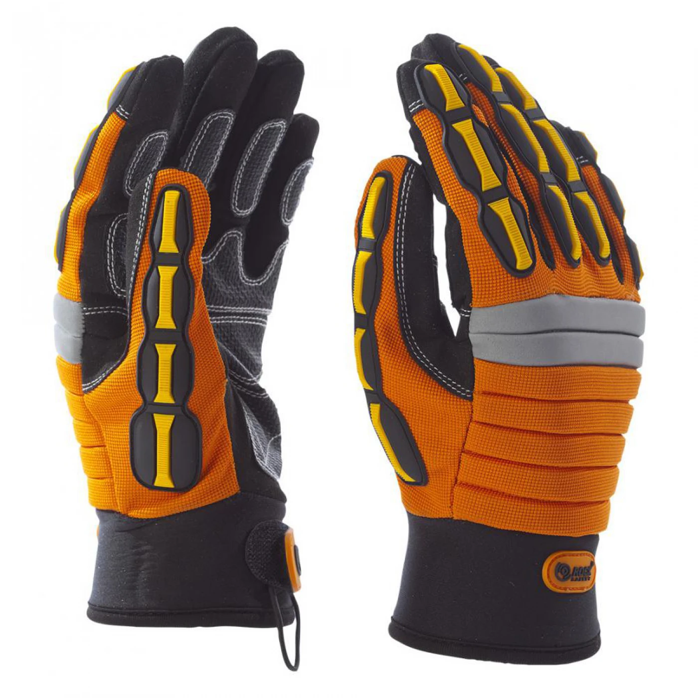 Mănuşi din piele sintetică cu palmieră neagră, cu dosul palmei portocaliu, cu protecţie la lovire