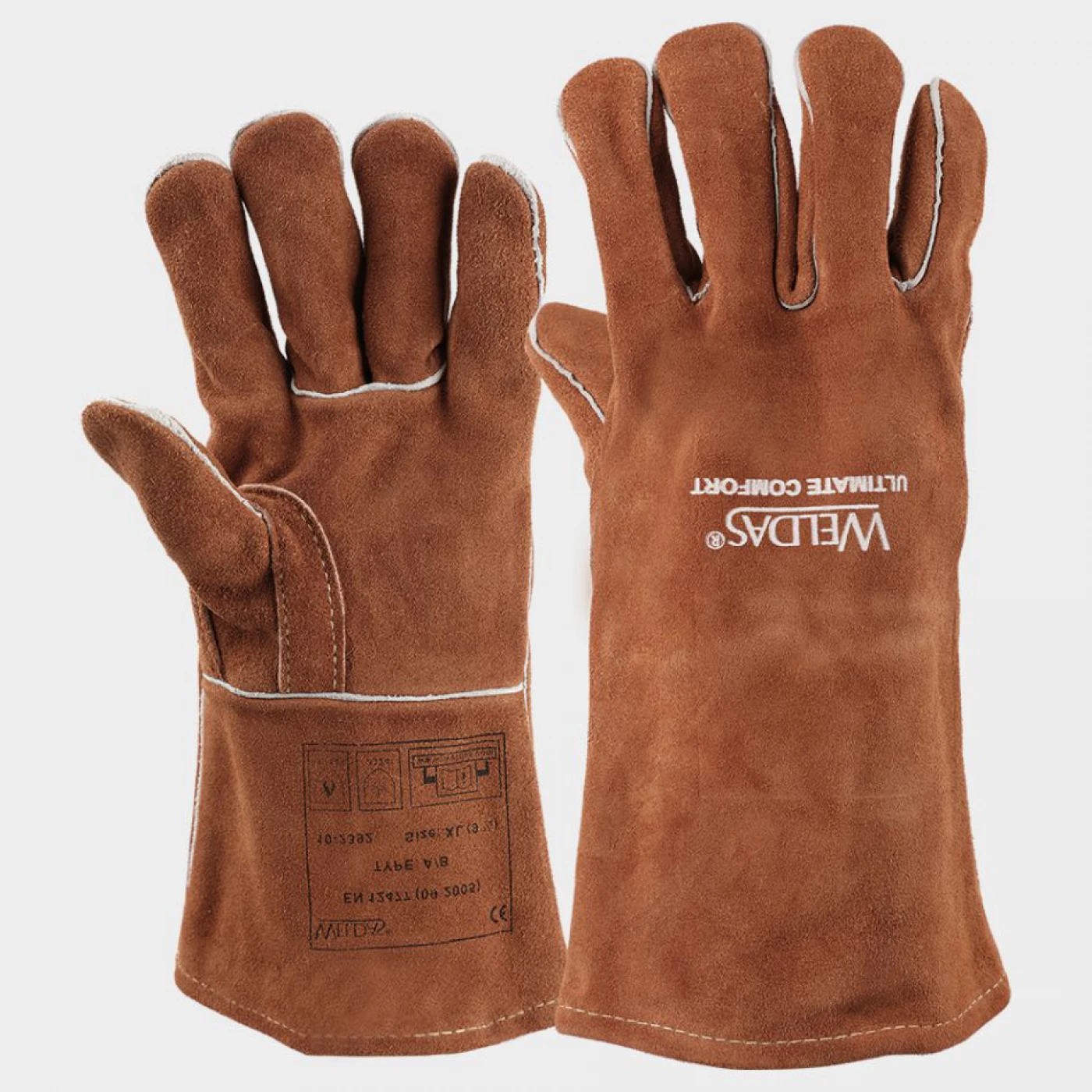 Mănuşă de sudură cu deget mare drept şi întărit, pentru o mai bună manevrare a pistoletului MIG din piele şpalt de vită de pe articulaţii