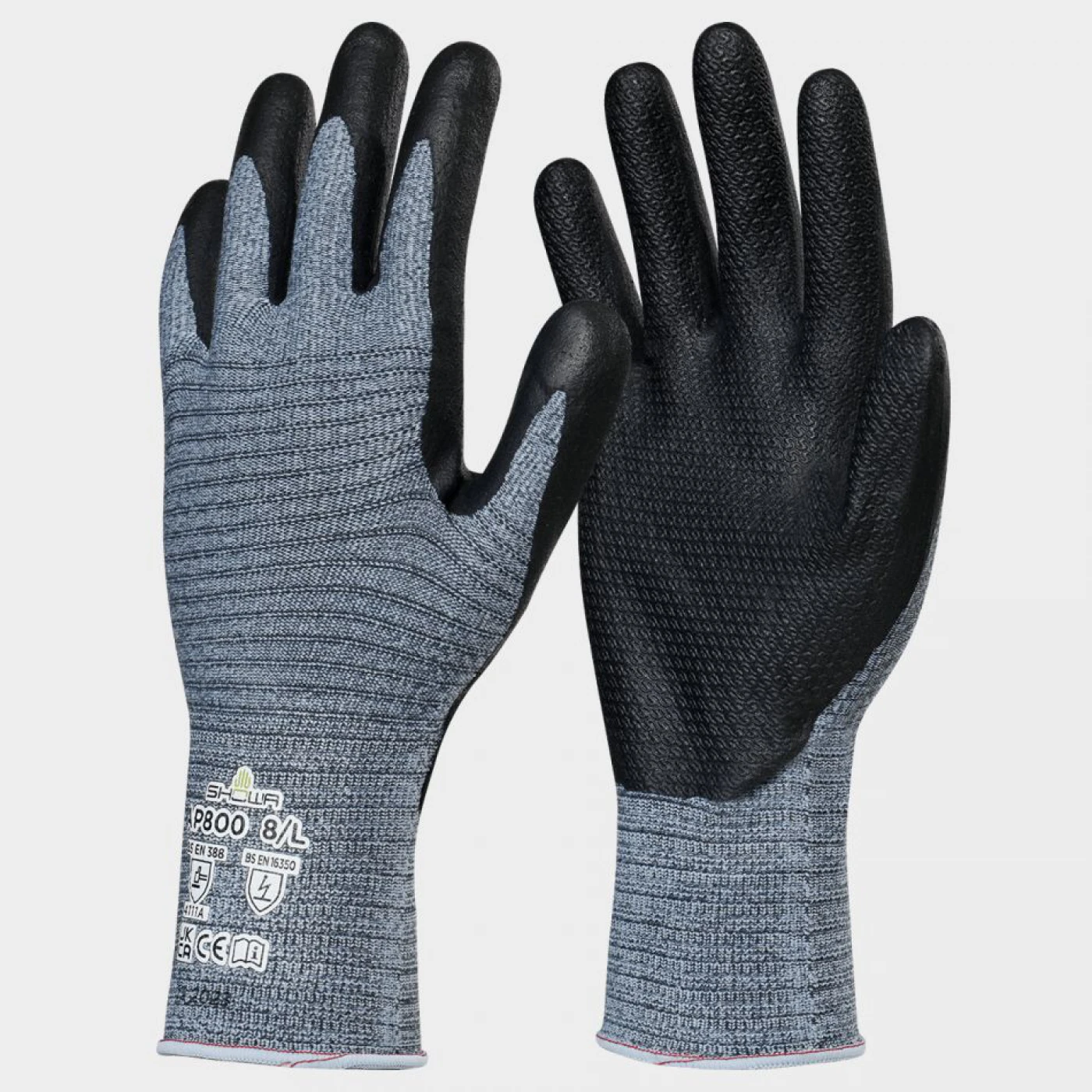 O inovație în protecția industrială a mâinilor, aceste mănuși sunt construite din tricot fără sudură de calibrul 13, cu fire de poliester din microfibră și spumă de nitril microporoasă în relief, cu un strat de palmă, făcându-le excelente pentru performanță. Sunt fără latex, compatibile cu ecranul tactil, fără silicon și fără marcaj, respectând standardele EN 16350 cu proprietăți electrostatice (ESD), asigurând o utilizare în siguranță în zonele menționate în directiva ATEX. Suprafața extrem de rezistentă cu o prindere stabilă și designul respirabil, le fac potrivite pentru industria auto, atunci când lucrați cu sisteme electrice etc. Căptușeala antistatică și construcția ușoară din microfibră oferă rezistență la abraziune și flexibilitate, făcându-le ideale pentru activități de reparații de altă natură.