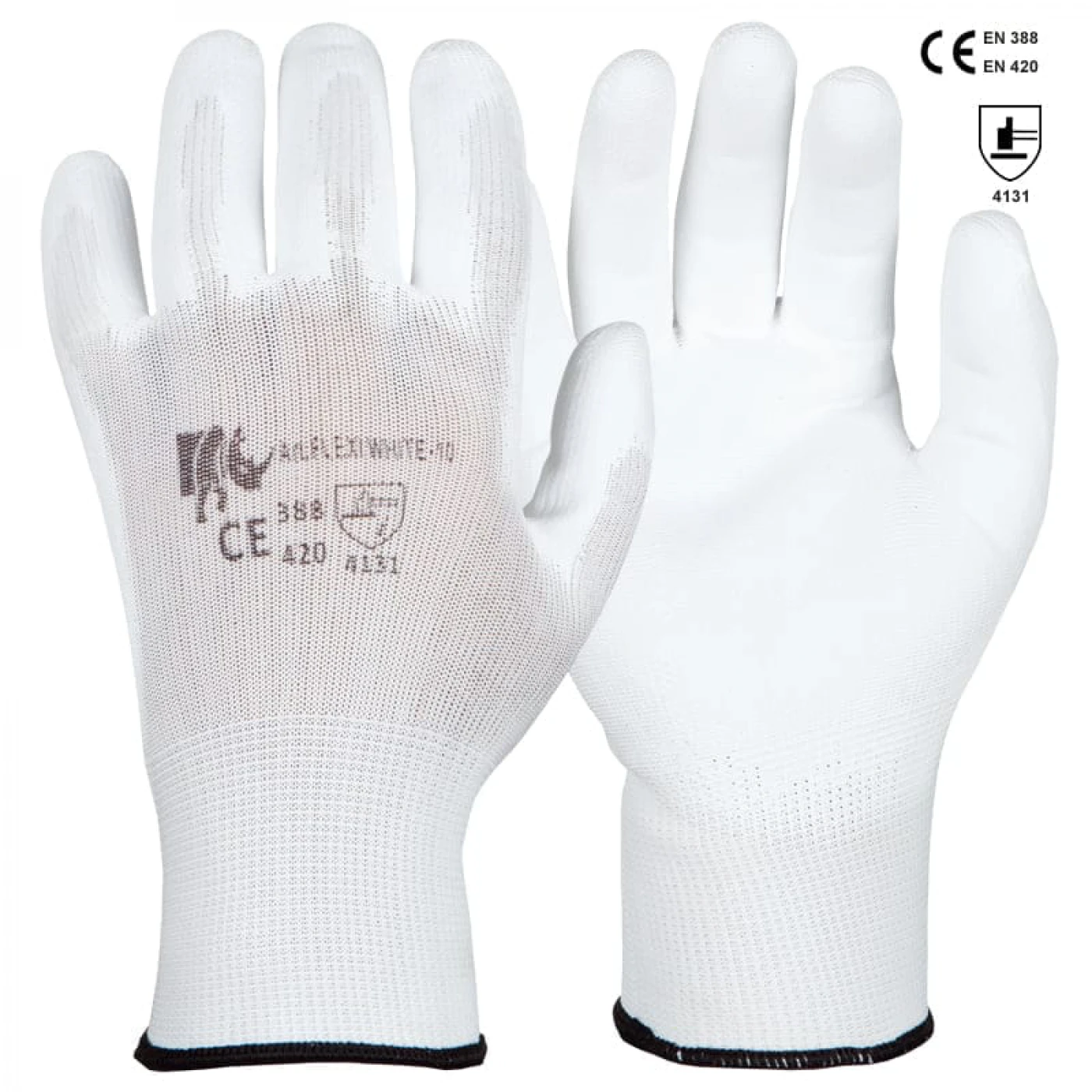 Manusi din poliester imersate in poliuretan alb, cu manseta elastica. Asigura o rezistenta de baza la abraziune si rupere dar si la uleiuri si grasimi.